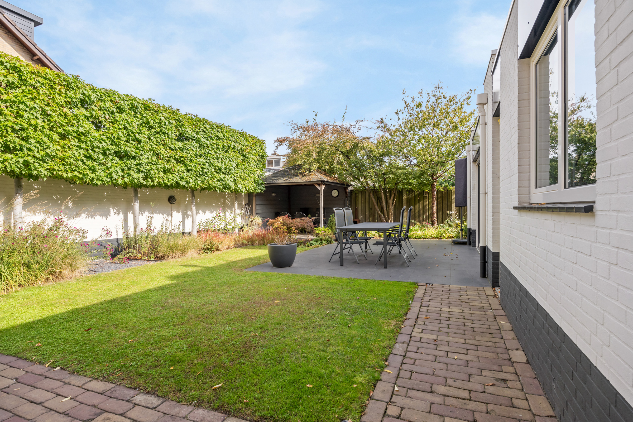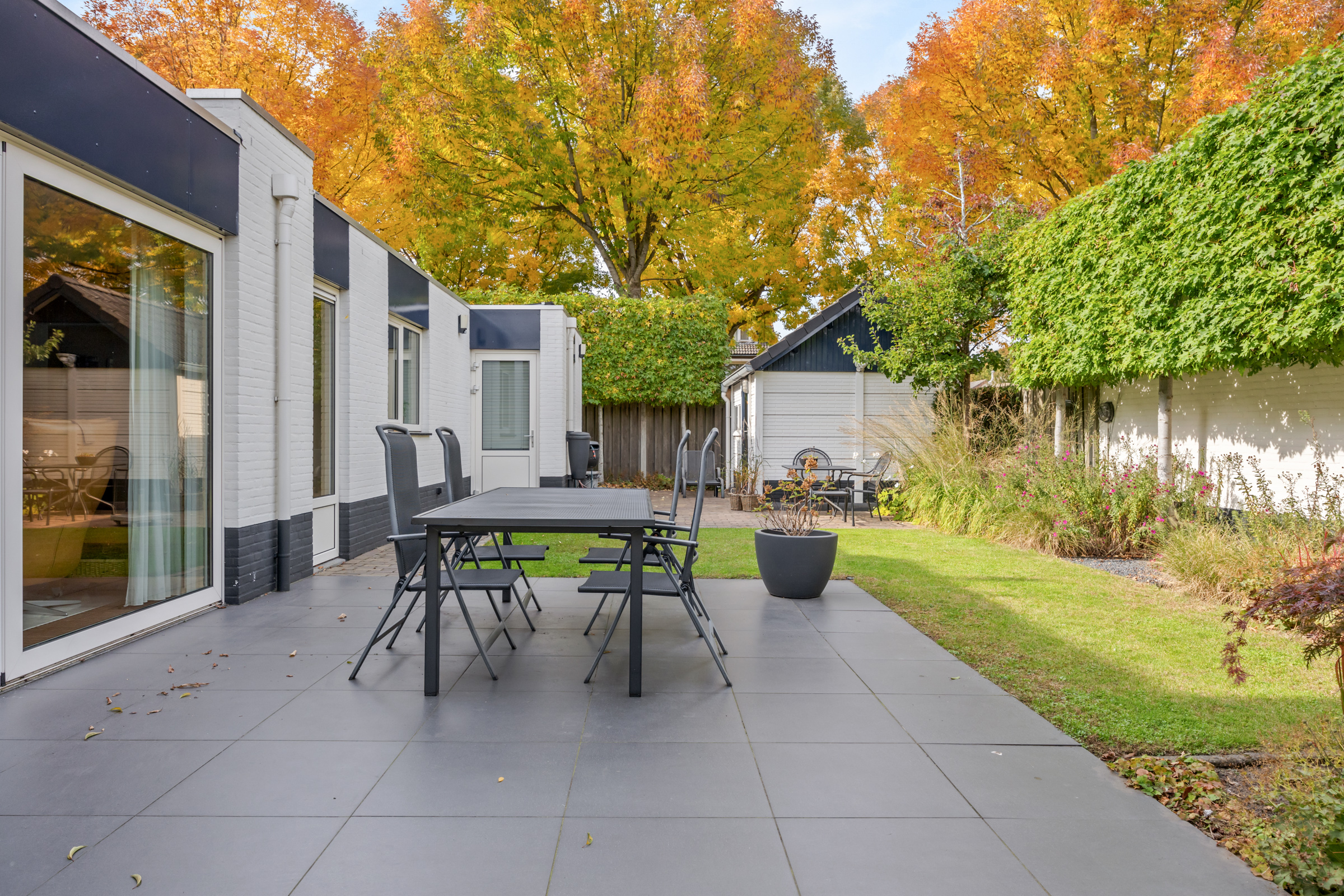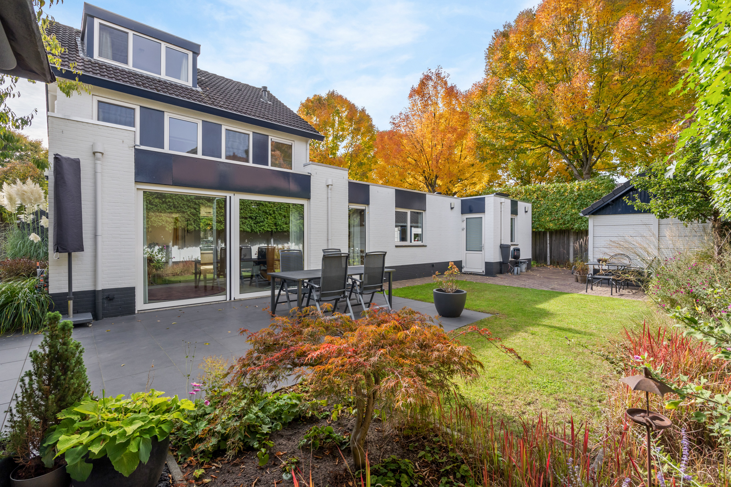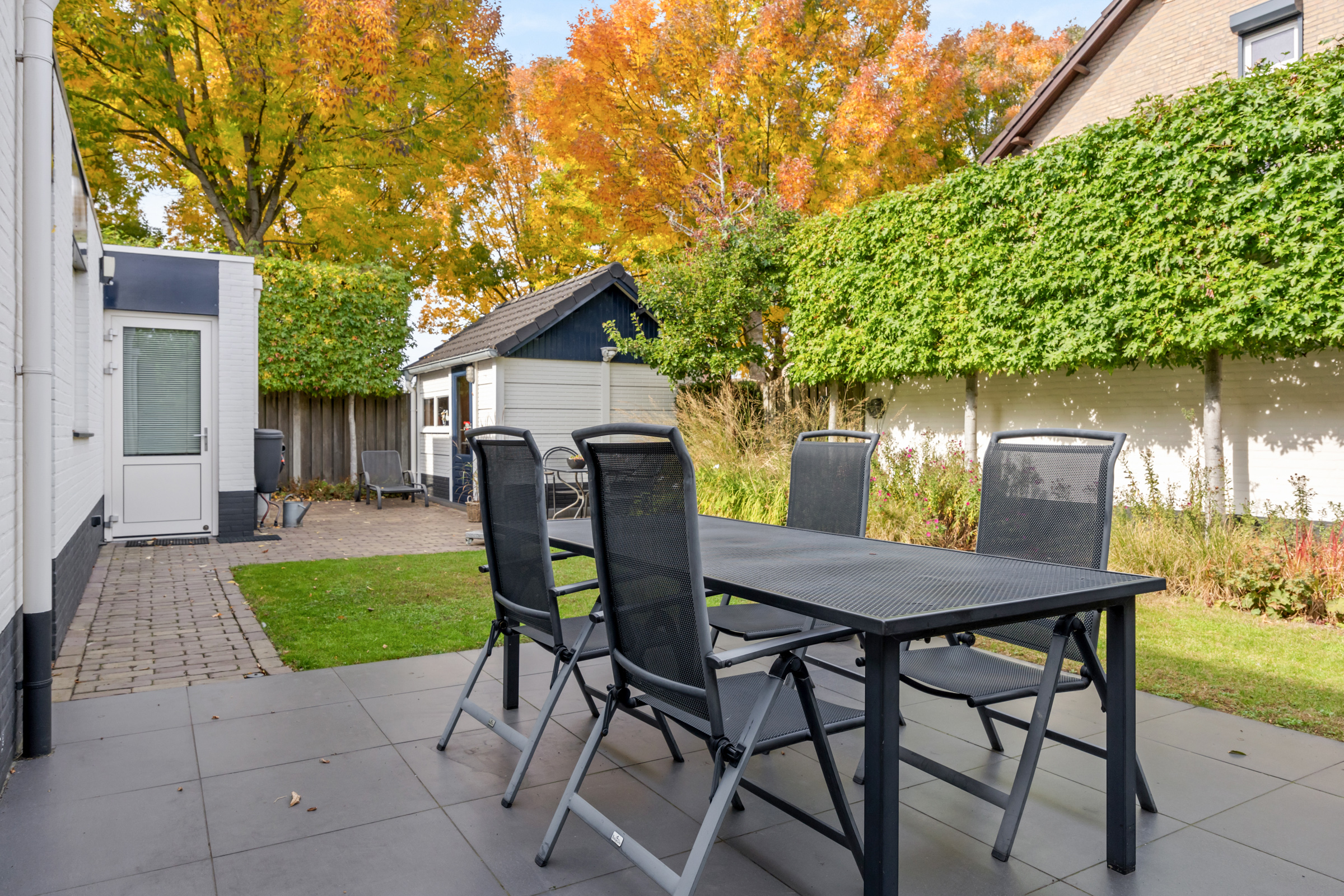 De woning beschikt over een fraai aangelegde tuin met meerdere terrassen, overkapping en een gazon. De tuin is ook voorzien van diverse beplanting en biedt veel privacy. Daarnaast is er een handige berging voor het opbergen van bijvoorbeeld tuingereedschap.