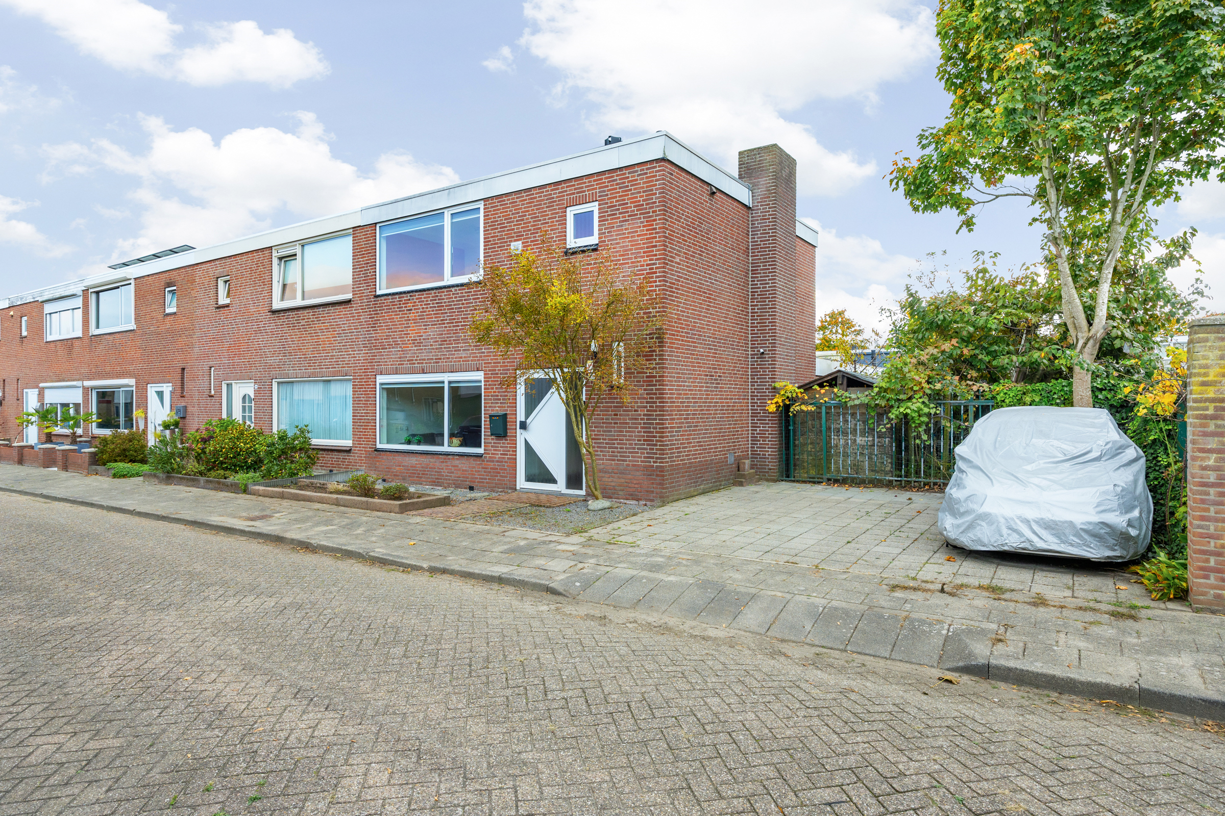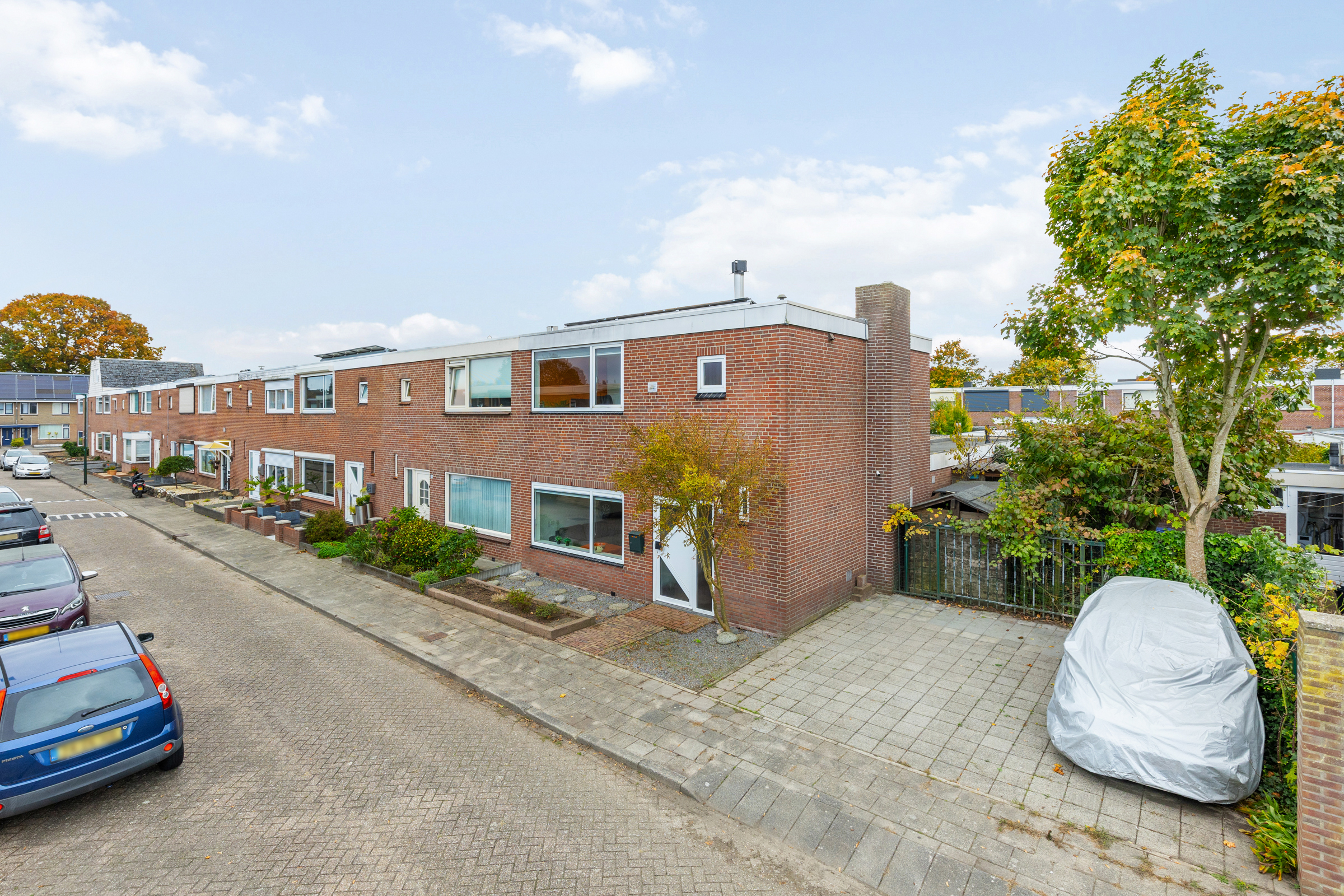Uitgebouwde hoekwoning met eigen parkeerplaatsen, zonnige tuin op het zuiden en drie ruime slaapkamers