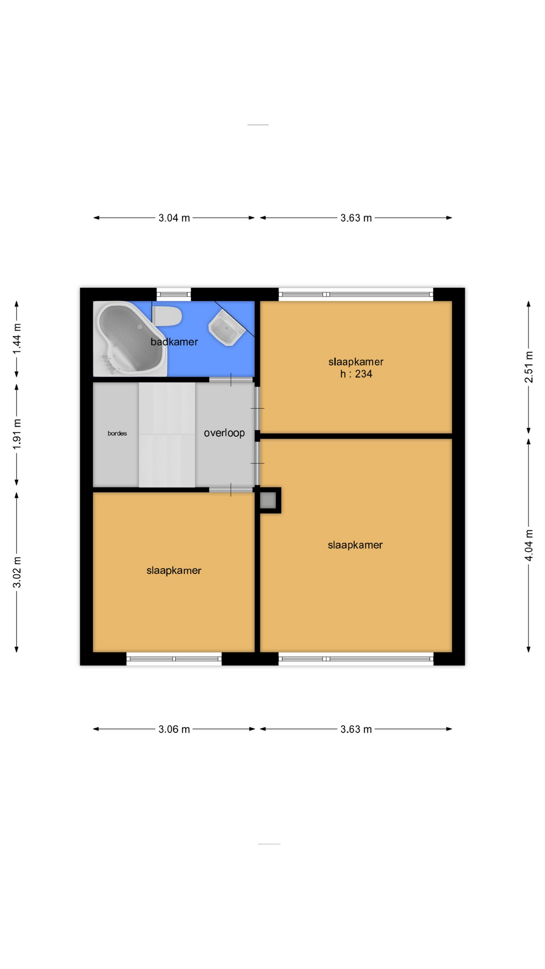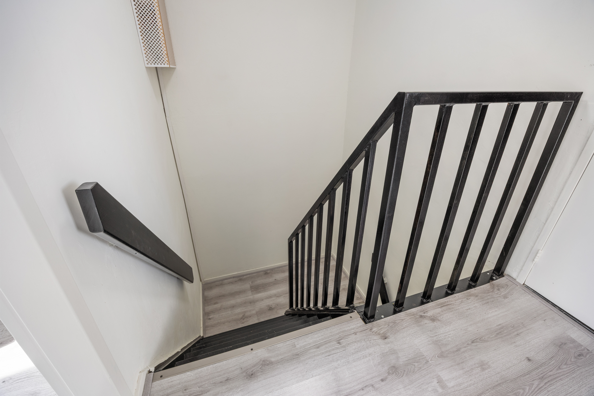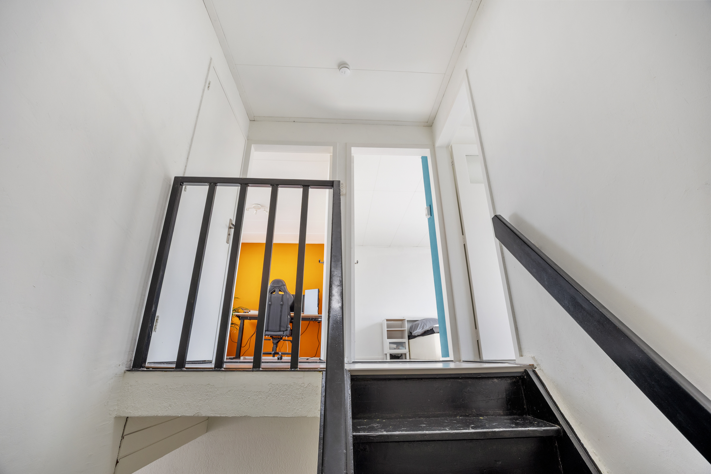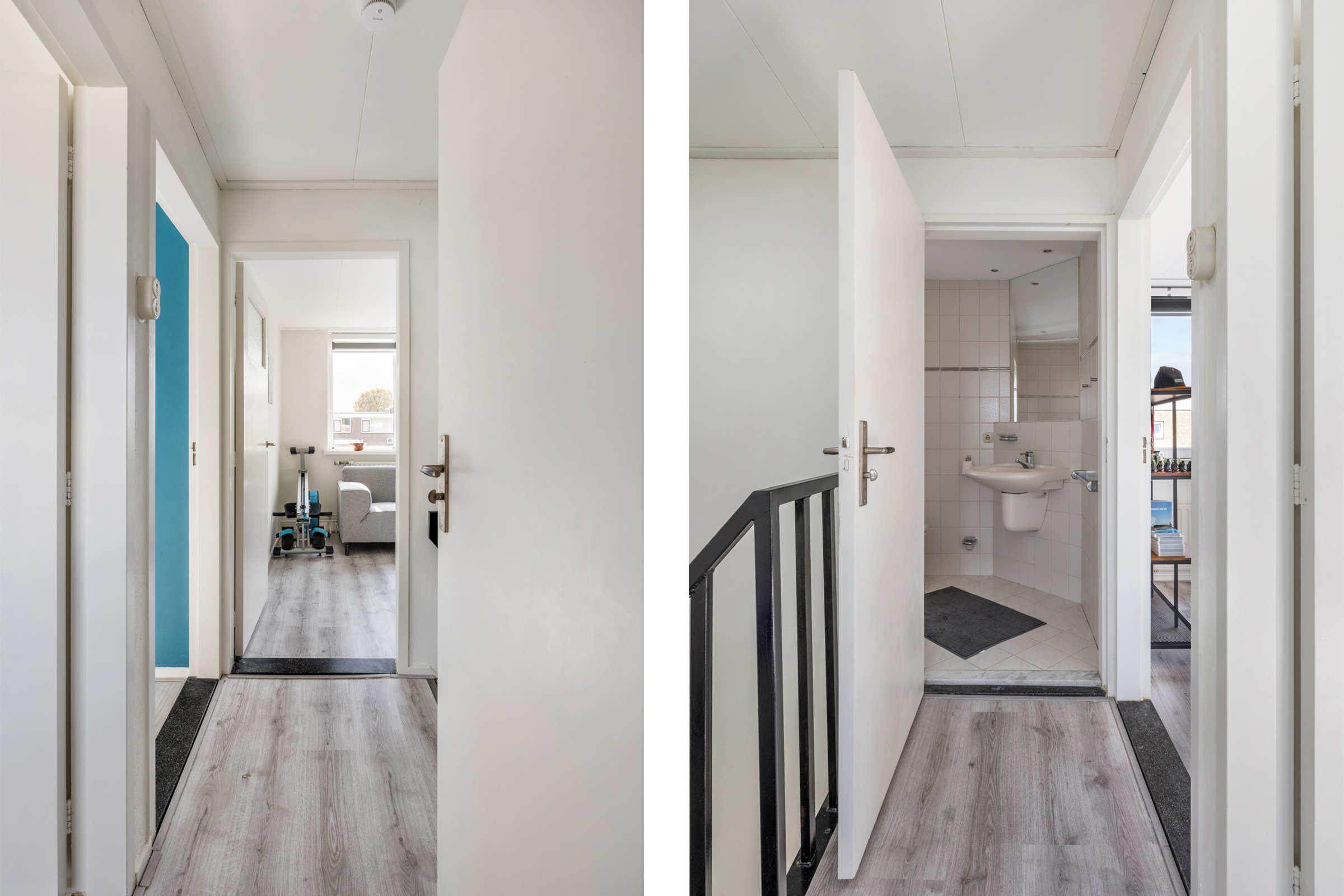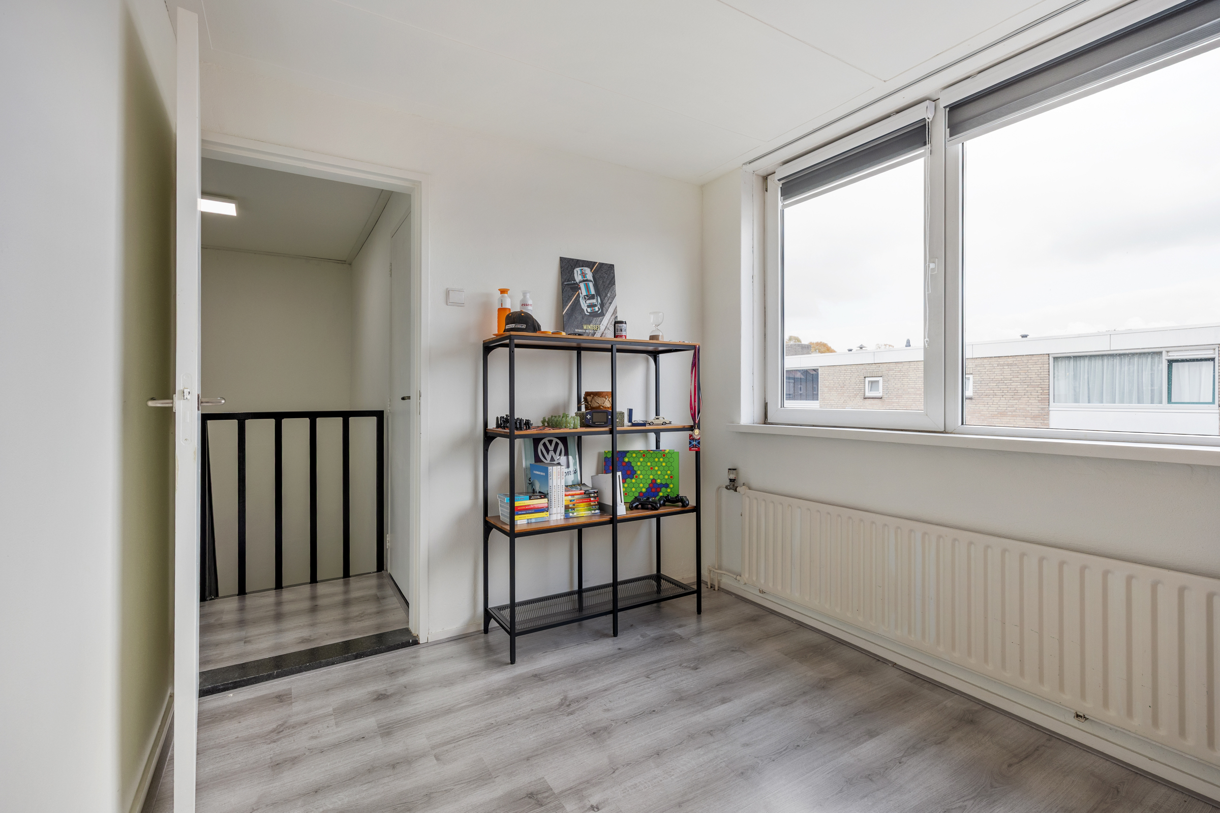Grote overloop die toegang geeft tot drie slaapkamers en de badkamer.