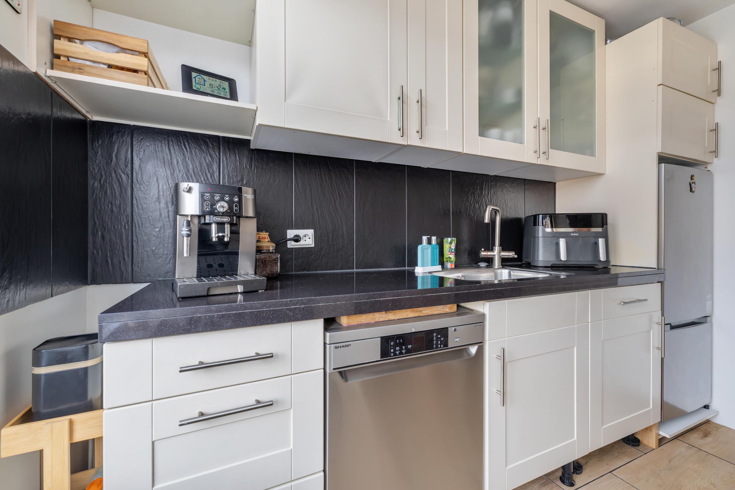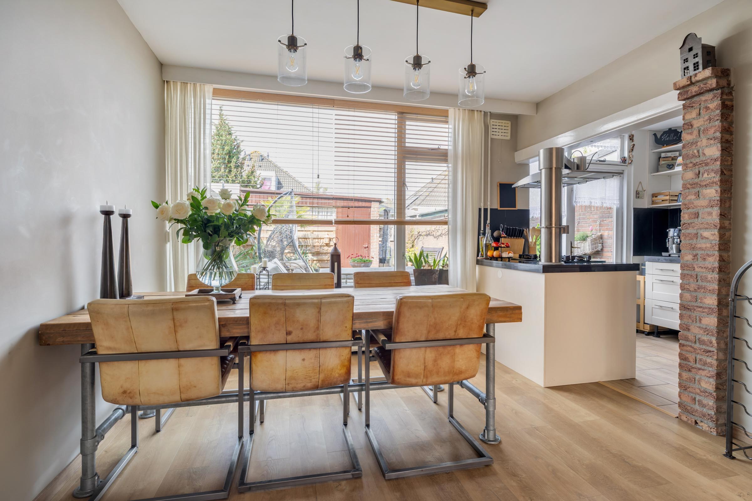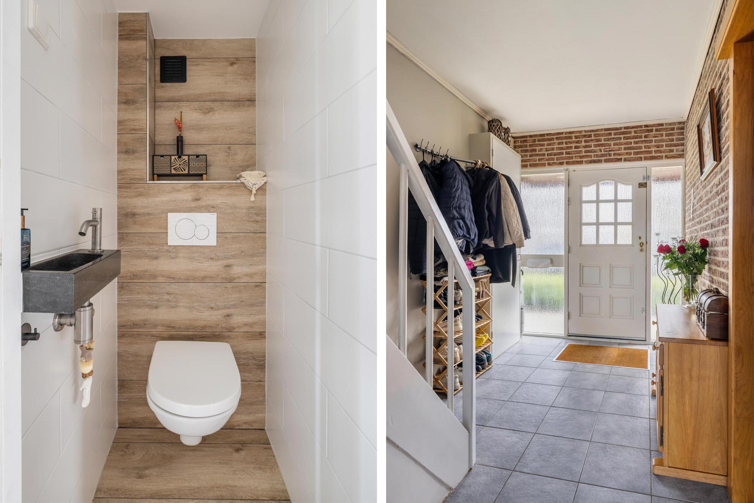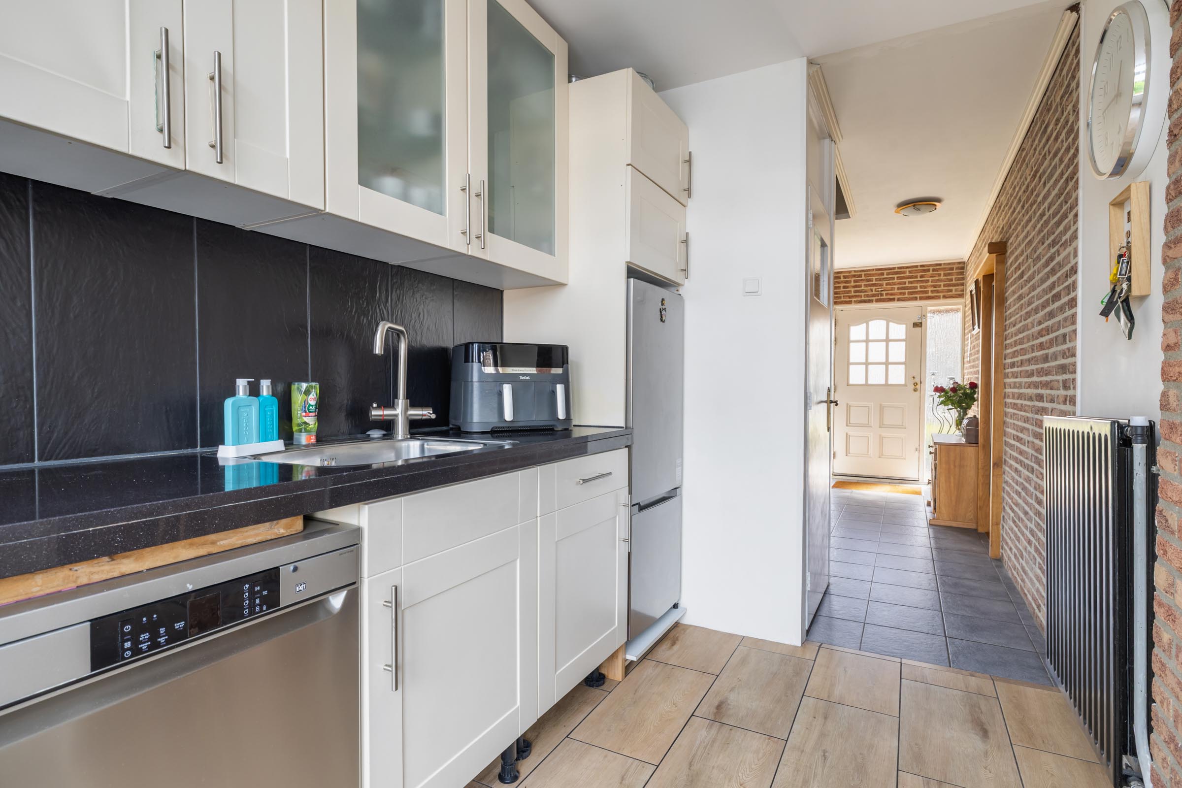 Bij binnenkomst wordt u verwelkomd door een zeer royale hal met trapopgang, een gemoderniseerde toiletruimte en een handige trapkast. De hal biedt toegang tot de keuken, die is o.a. voorzien van een schiereiland met gaskookplaat, een grote afzuigkap, een oven (2023) en een kokend waterkraan.