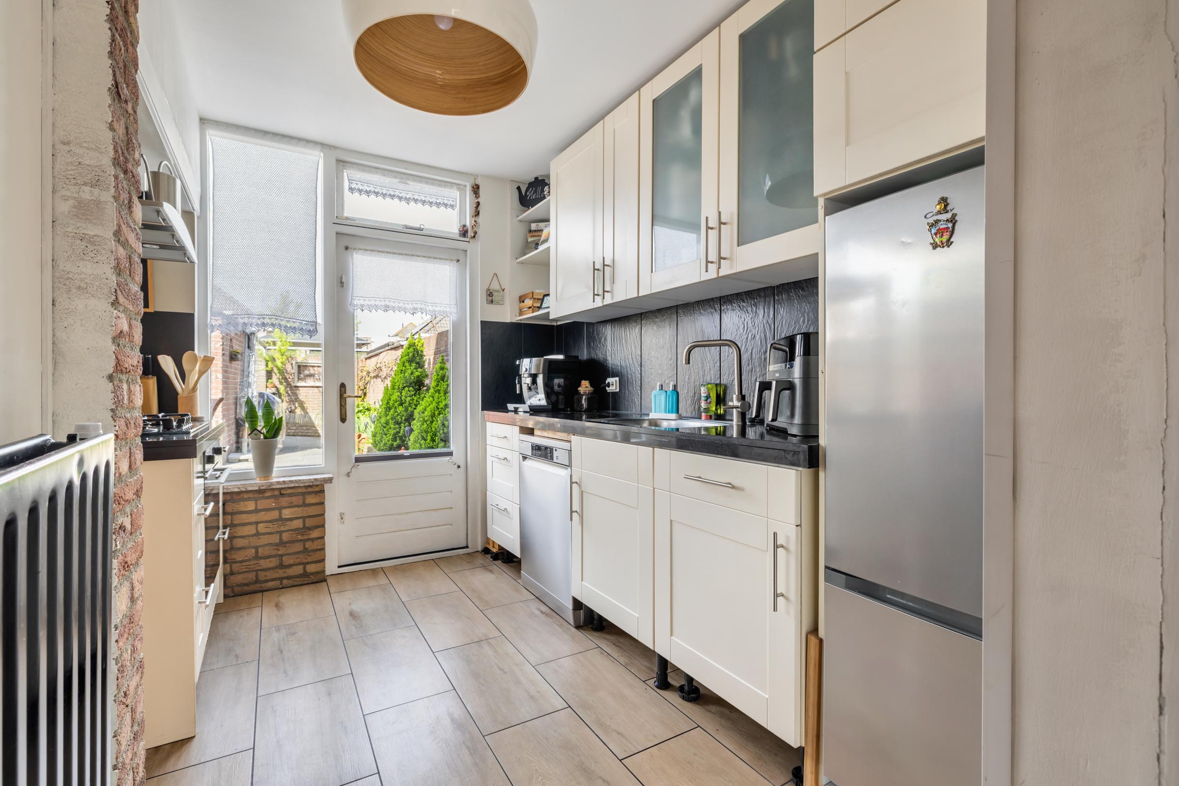 Aansluitend vindt u de ruime woonkamer, die is opgedeeld in een gezellig zitgedeelte aan de voorzijde en een eetgedeelte aan de achterzijde, waar ruimte is voor een grote eettafel. Via de keuken bereikt u de zonnige achtertuin, op het westen gesitueerd en van maar liefst ca. 10 meter diep.