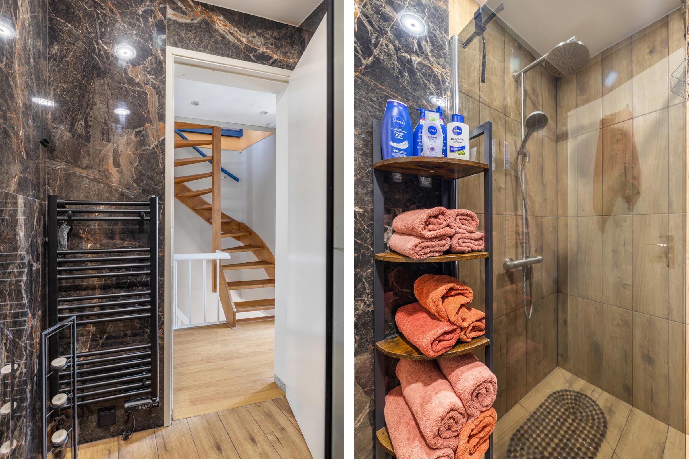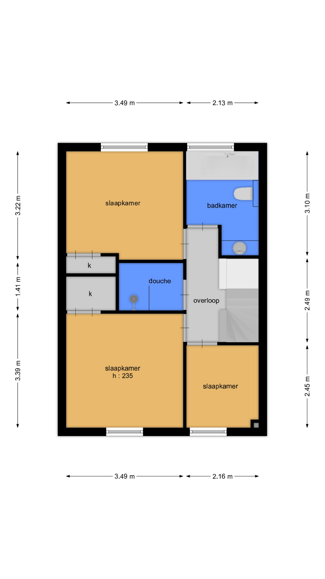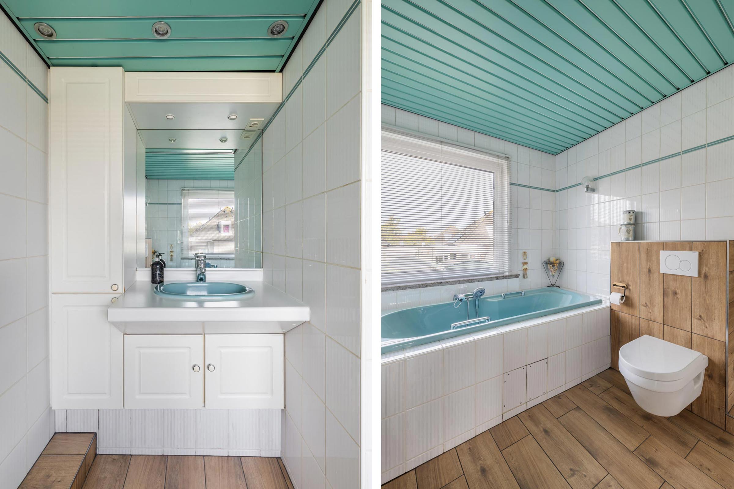 Op de eerste verdieping treft u drie slaapkamers aan, een gemoderniseerde badkamer met ruime inloopdouche en een extra badkamer welke enige modernisering behoeft en wellicht ook uitstekend dienst kan doen als wasruimte. De kozijnen op deze verdieping zijn van kunststof met triple glas, wat zorgt voor optimale isolatie en comfort.