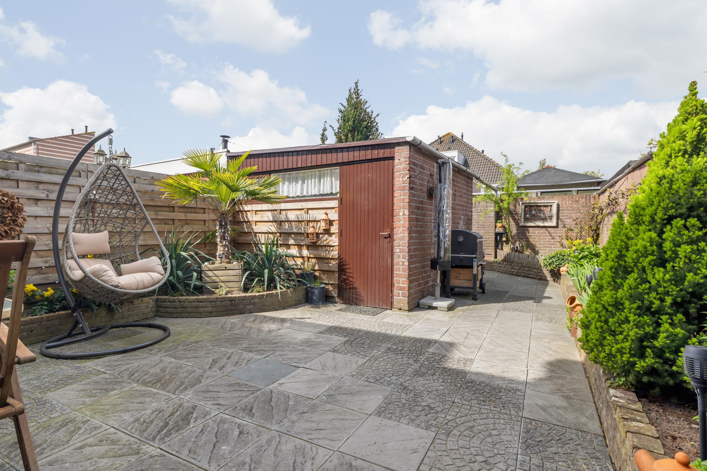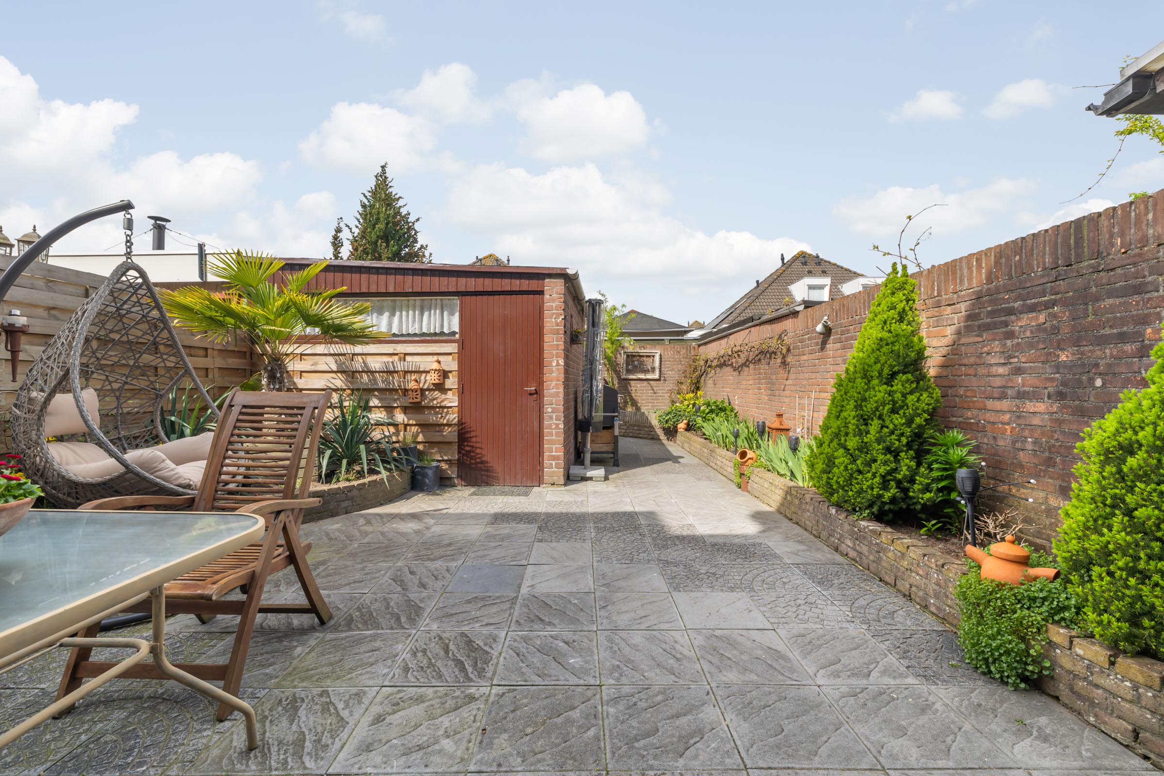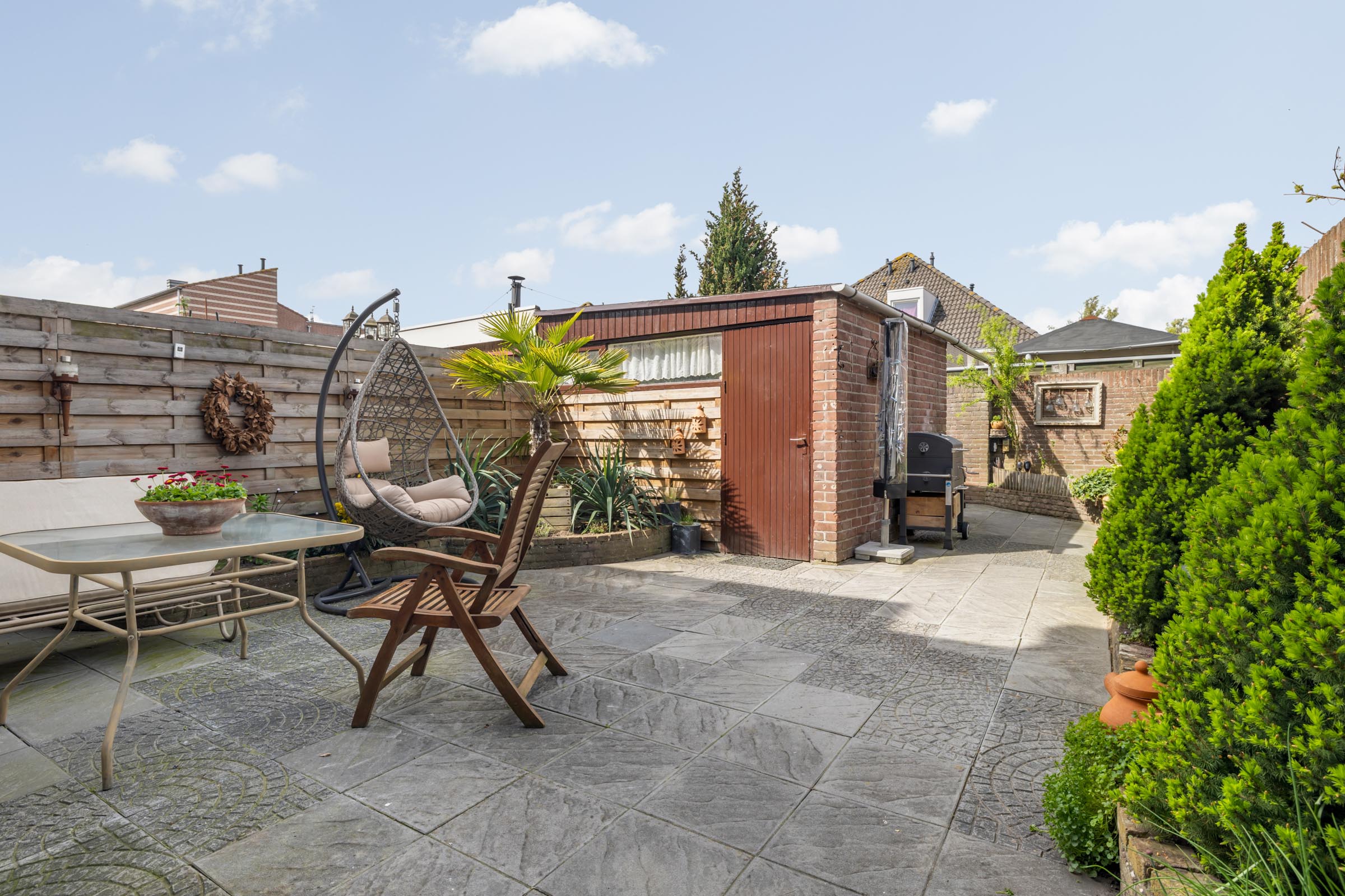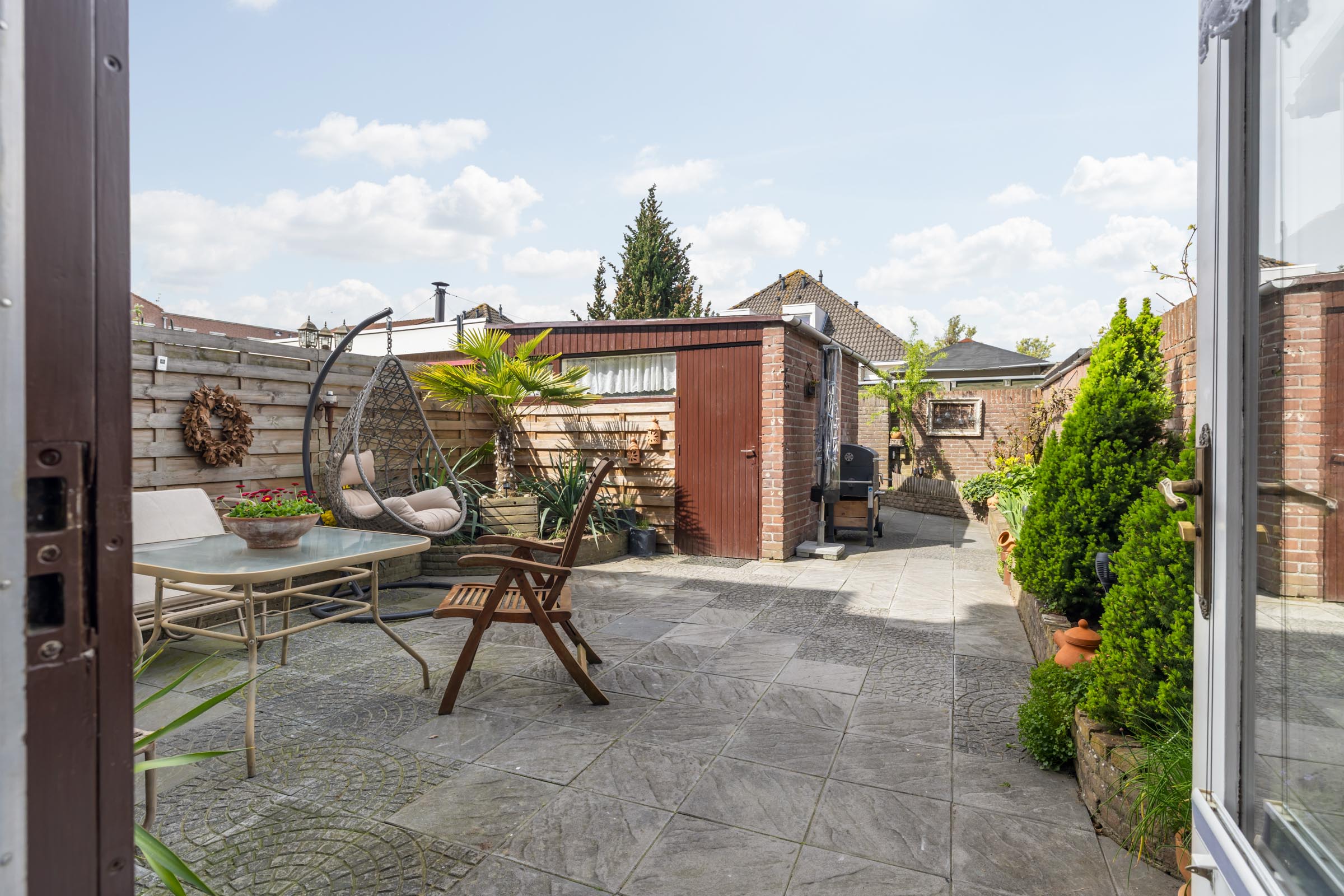 De zonnige achtertuin is grotendeels bestraat en voorzien van plantenborders, een grote stenen berging en een handige achterom. Met een ligging op het westen kunt u hier tot in de late uurtjes genieten van de zon.