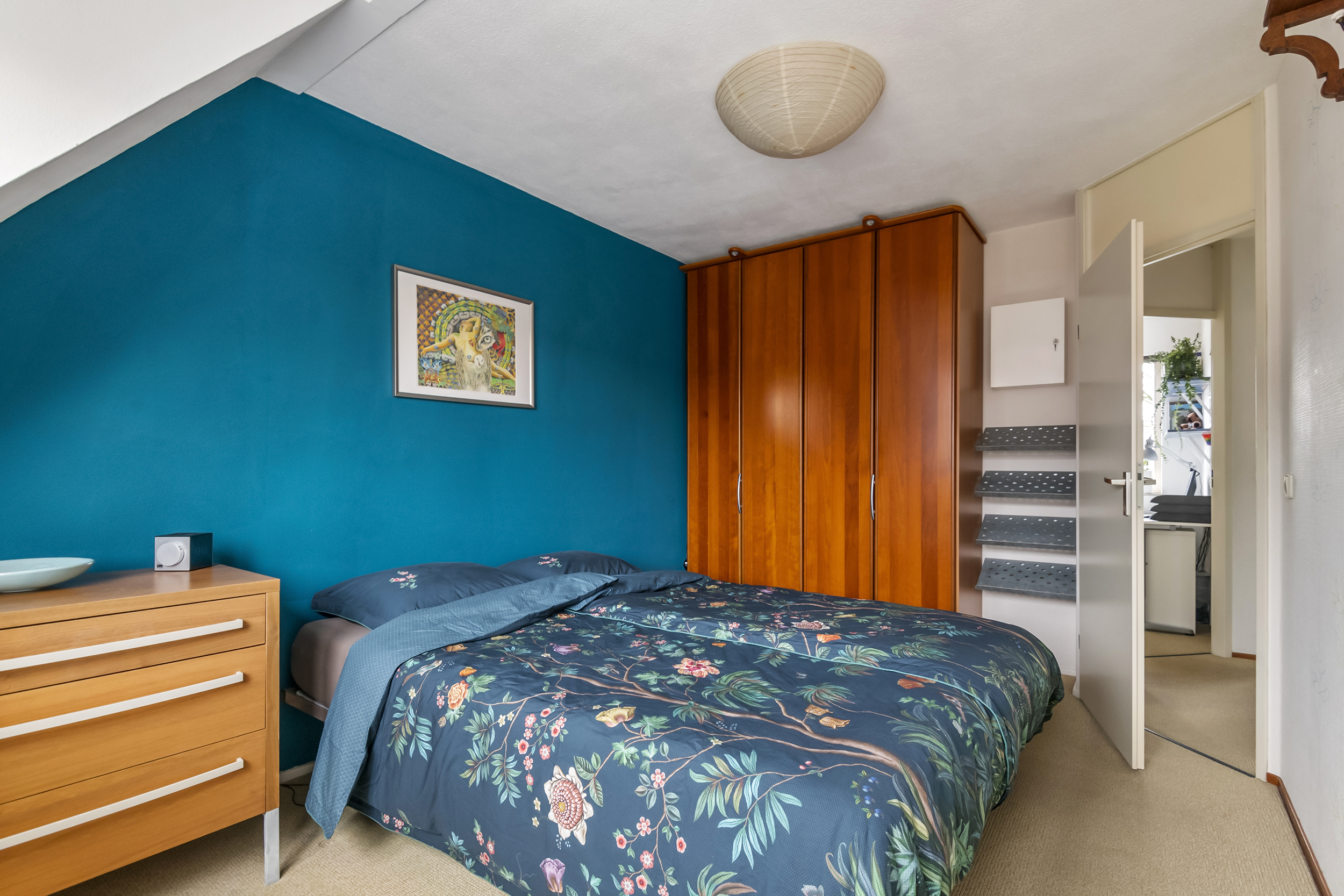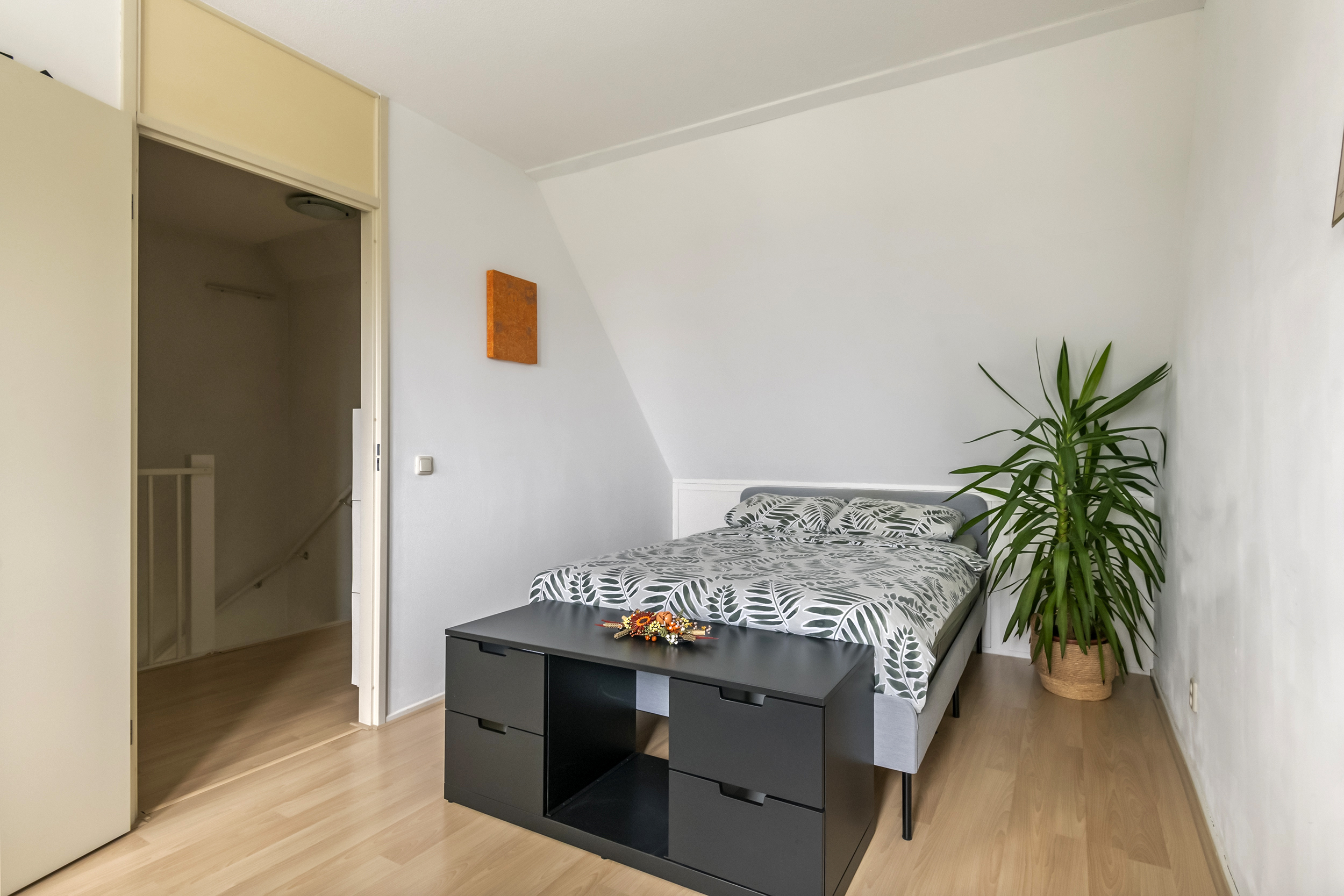 De tweede verdieping biedt een ruime en lichte zolderkamer met veel leefruimte. Deze kamer is uitstekend geschikt als vierde slaapkamer, werk- of hobbyruimte. Daarnaast is hier een aparte ruimte aanwezig voor de technische installaties en de wasmachine en extra bergruimte door middel van een vaste kast gecreëerd. Voor extra comfort is de zolder voorzien van airconditioning.