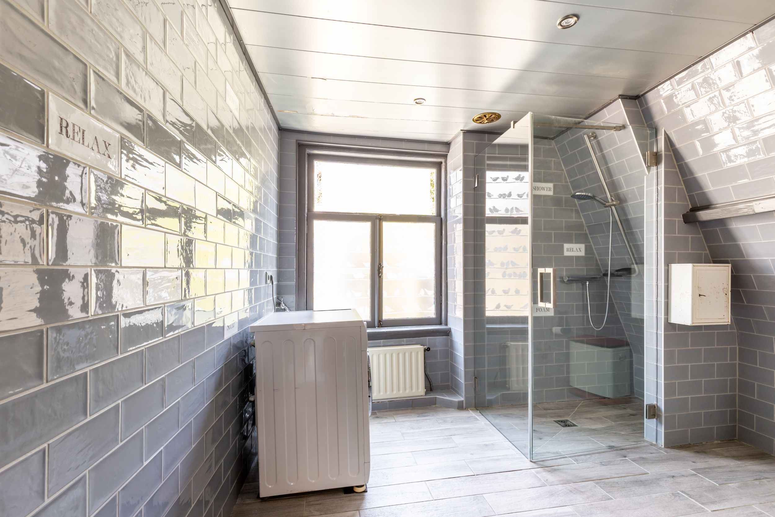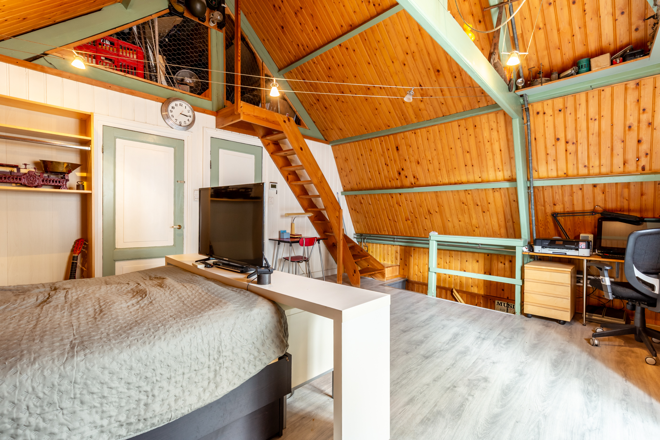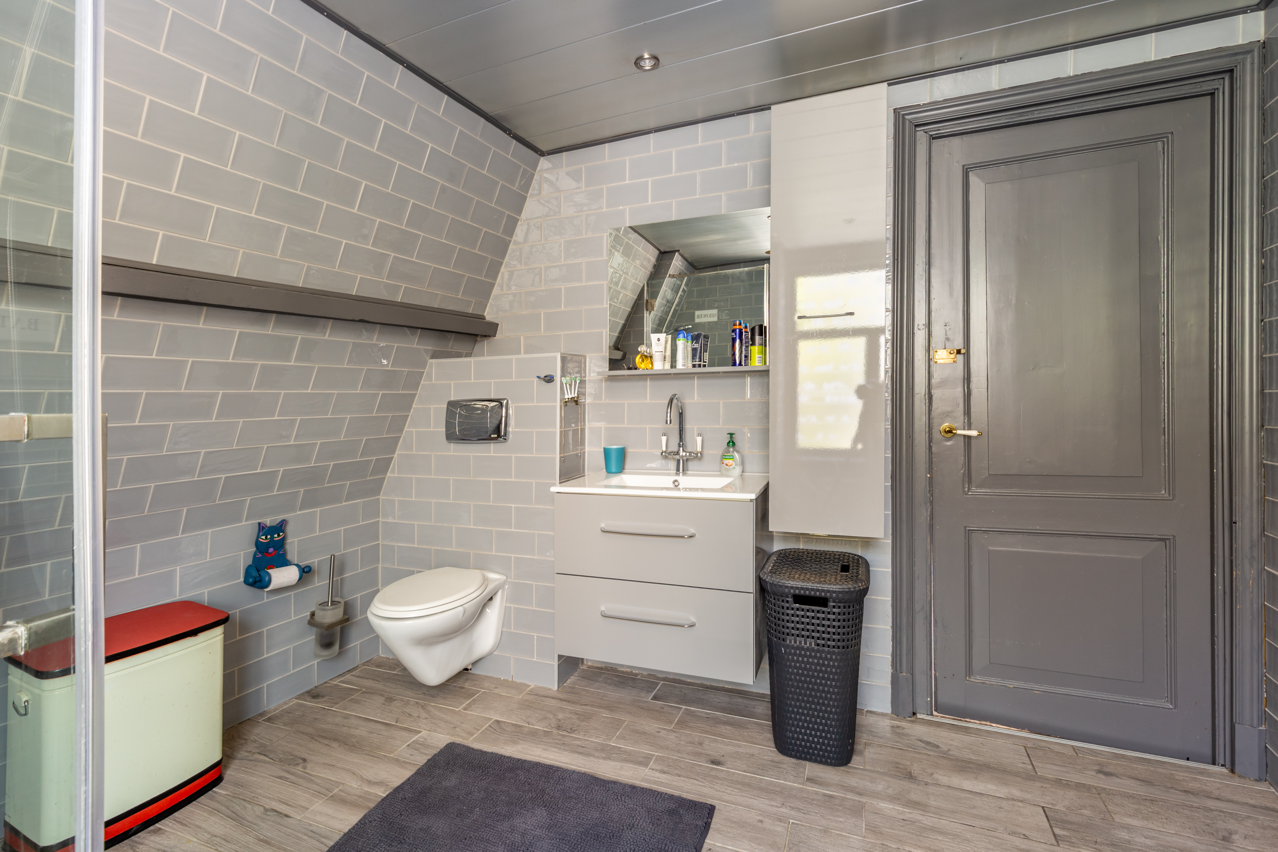 Op de eerste verdieping vind je aan de voorzijde een royale slaapkamer met uitzicht op de prachtige dakspanten. De tweede slaap- of werkkamer aan de achterzijde biedt diverse gebruiksmogelijkheden. De moderne badkamer is uitgerust met een inloopdouche, toilet, wastafelmeubel en wasmachineaansluiting.
