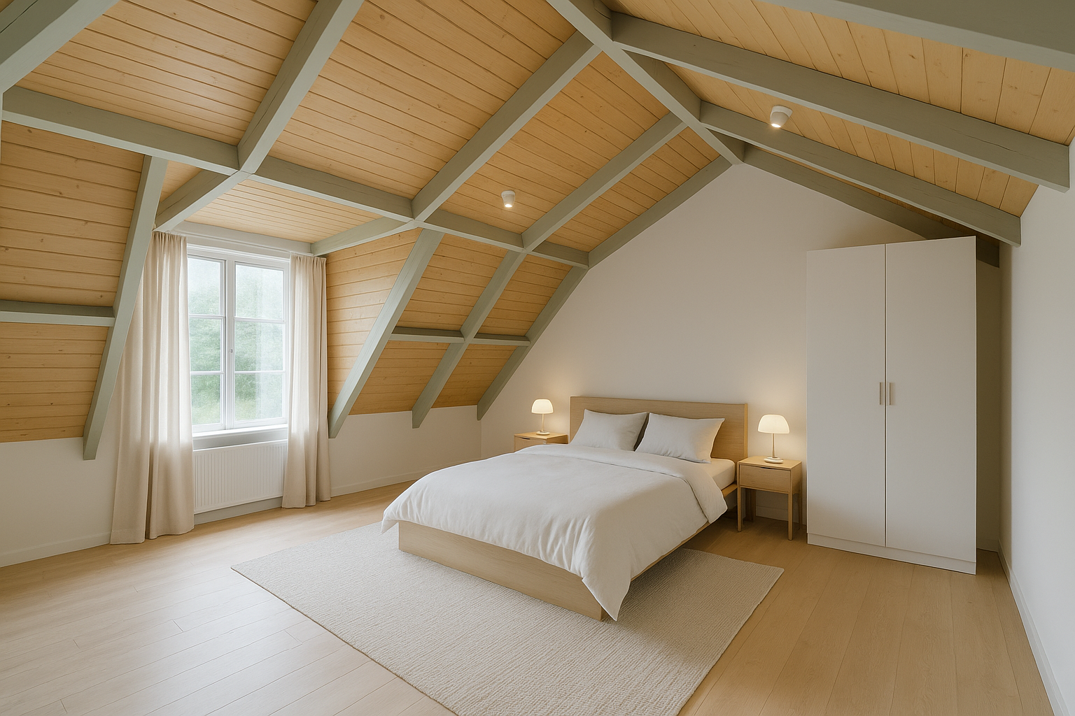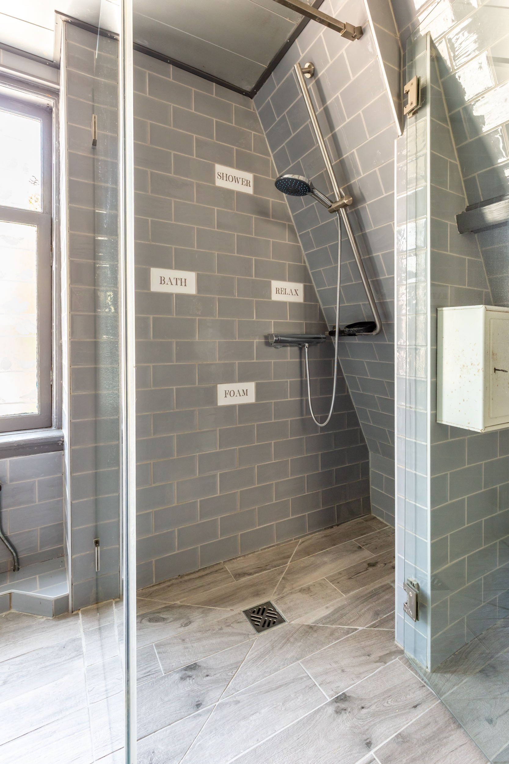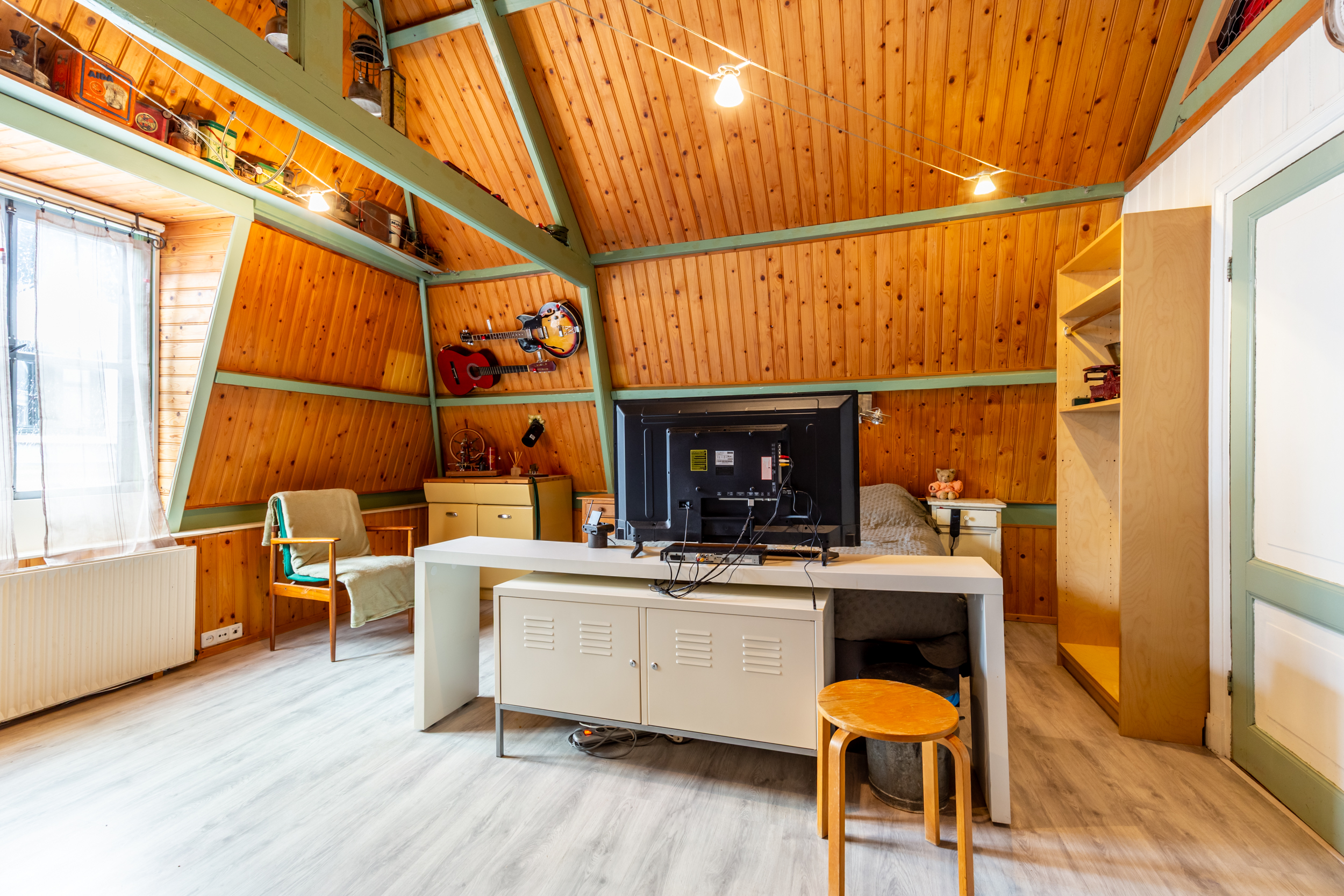 Op de eerste verdieping vind je aan de voorzijde een royale slaapkamer met uitzicht op de prachtige dakspanten. De tweede slaap- of werkkamer aan de achterzijde biedt diverse gebruiksmogelijkheden. De moderne badkamer is uitgerust met een inloopdouche, toilet, wastafelmeubel en wasmachineaansluiting.