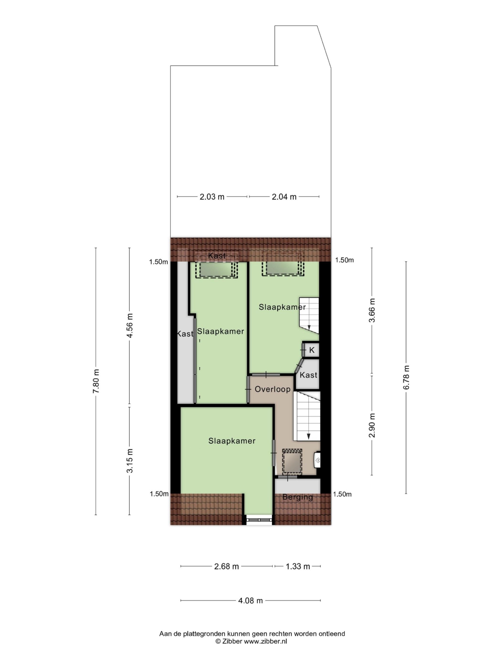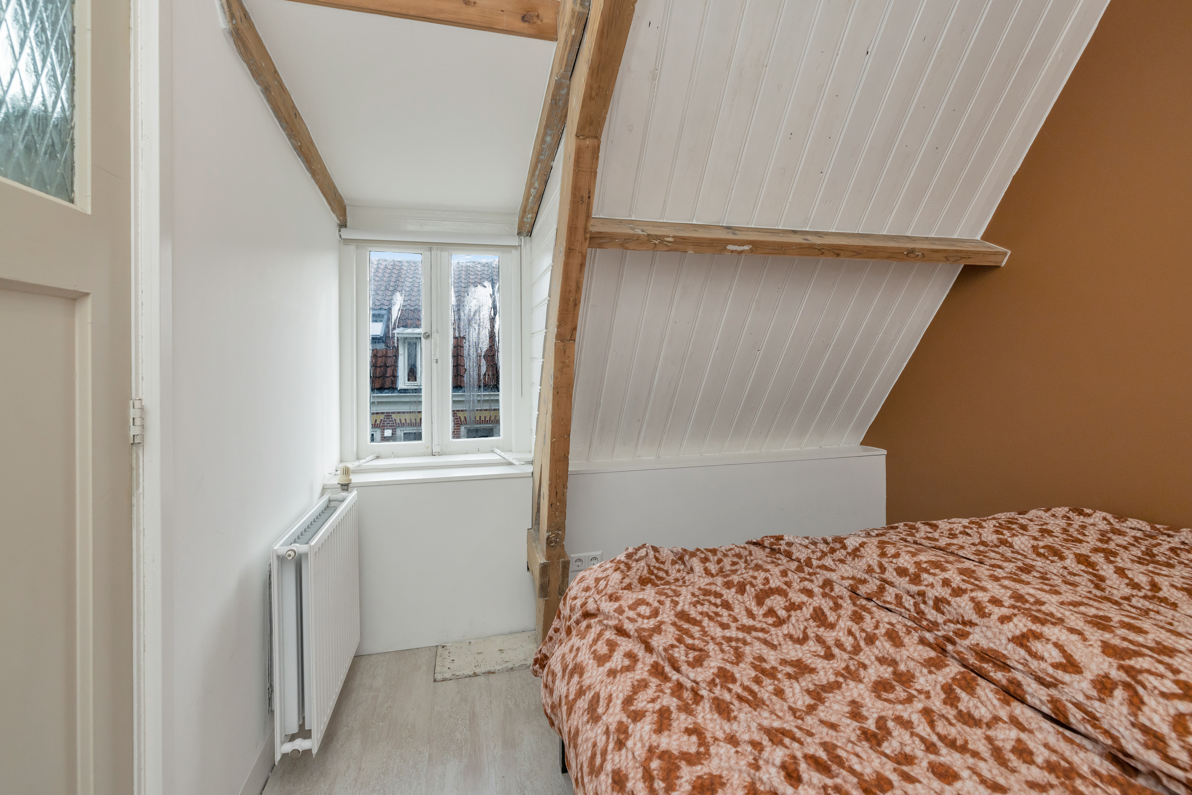 overloop met bergruimte en C.V.-opstelling, voorslaapkamer met dakkapel, achter werk/slaapkamer met dakraam en bergruimte, zij-achterkamer in gebruik als walk-in ruimte met schuifkast en groot dakraam.