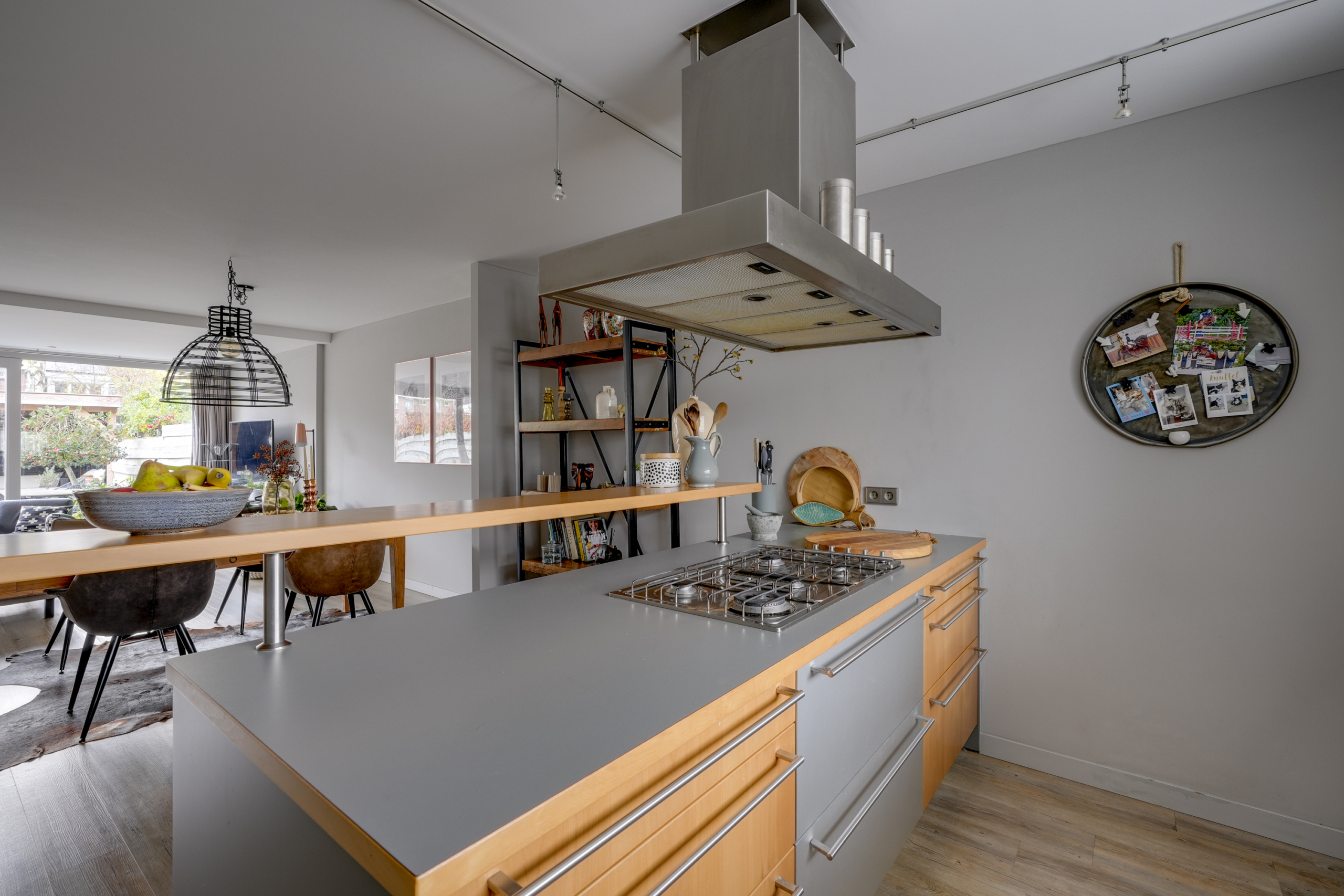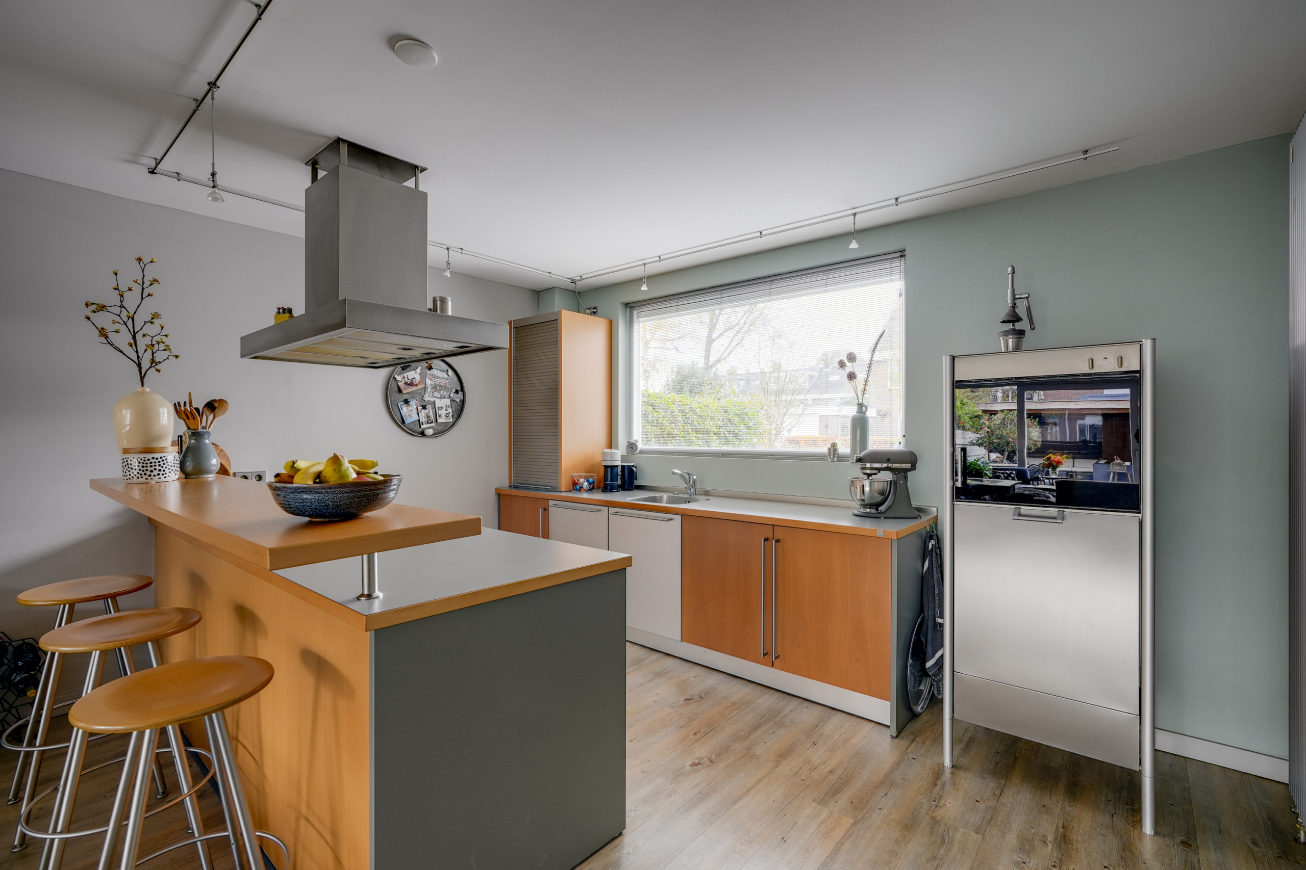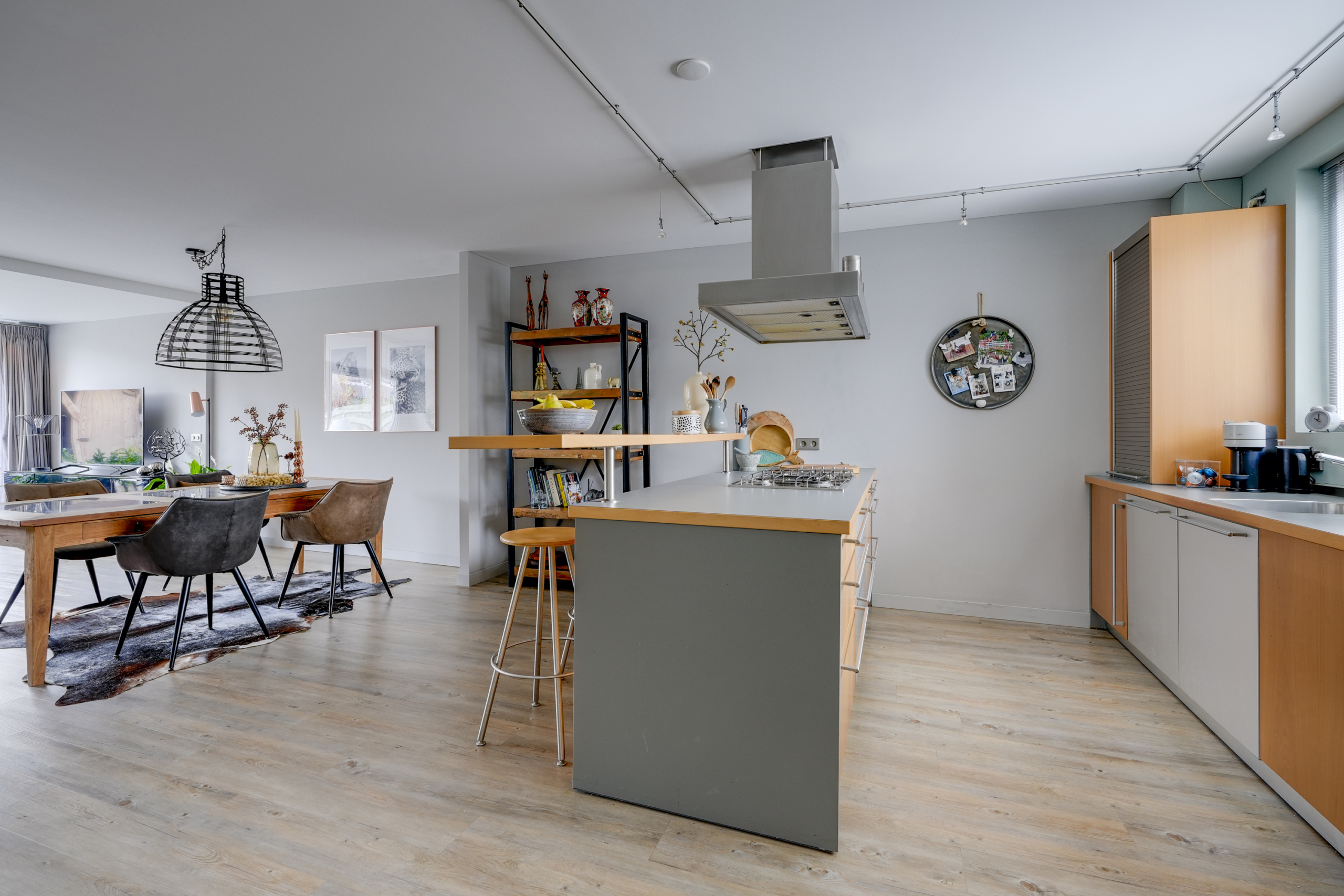 De keuken ligt aan de voorzijde van het huis en biedt alle mogelijkheden om uitgebreid te koken. Dankzij de open verbinding met de woonkamer blijf je altijd betrokken bij het gezinsleven of je gasten. De bar nodigt uit om lekker te genieten van een goede kop koffie en goede gesprekken.