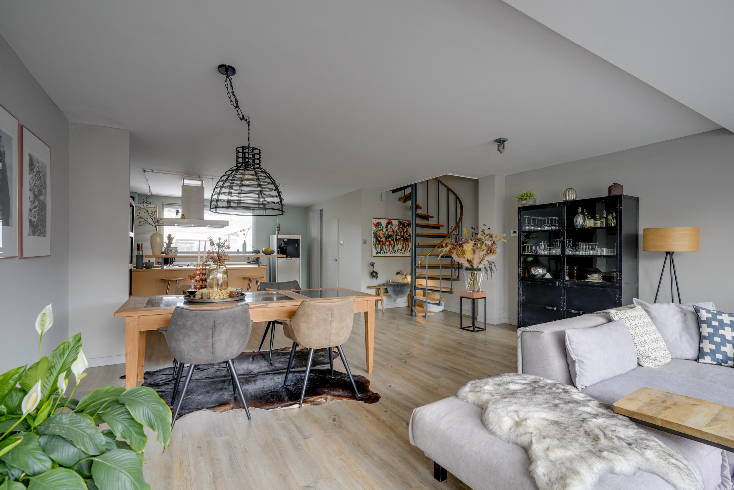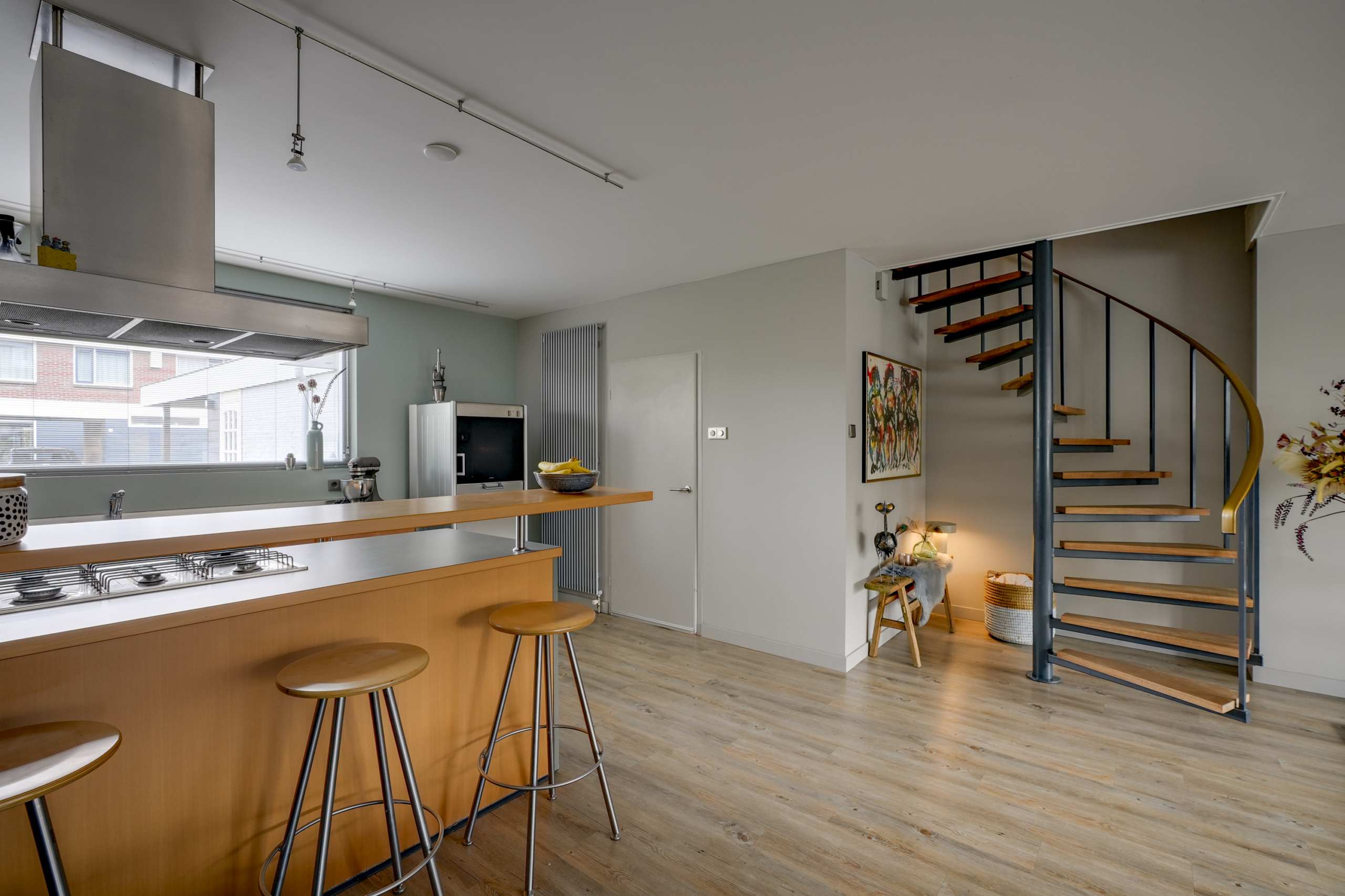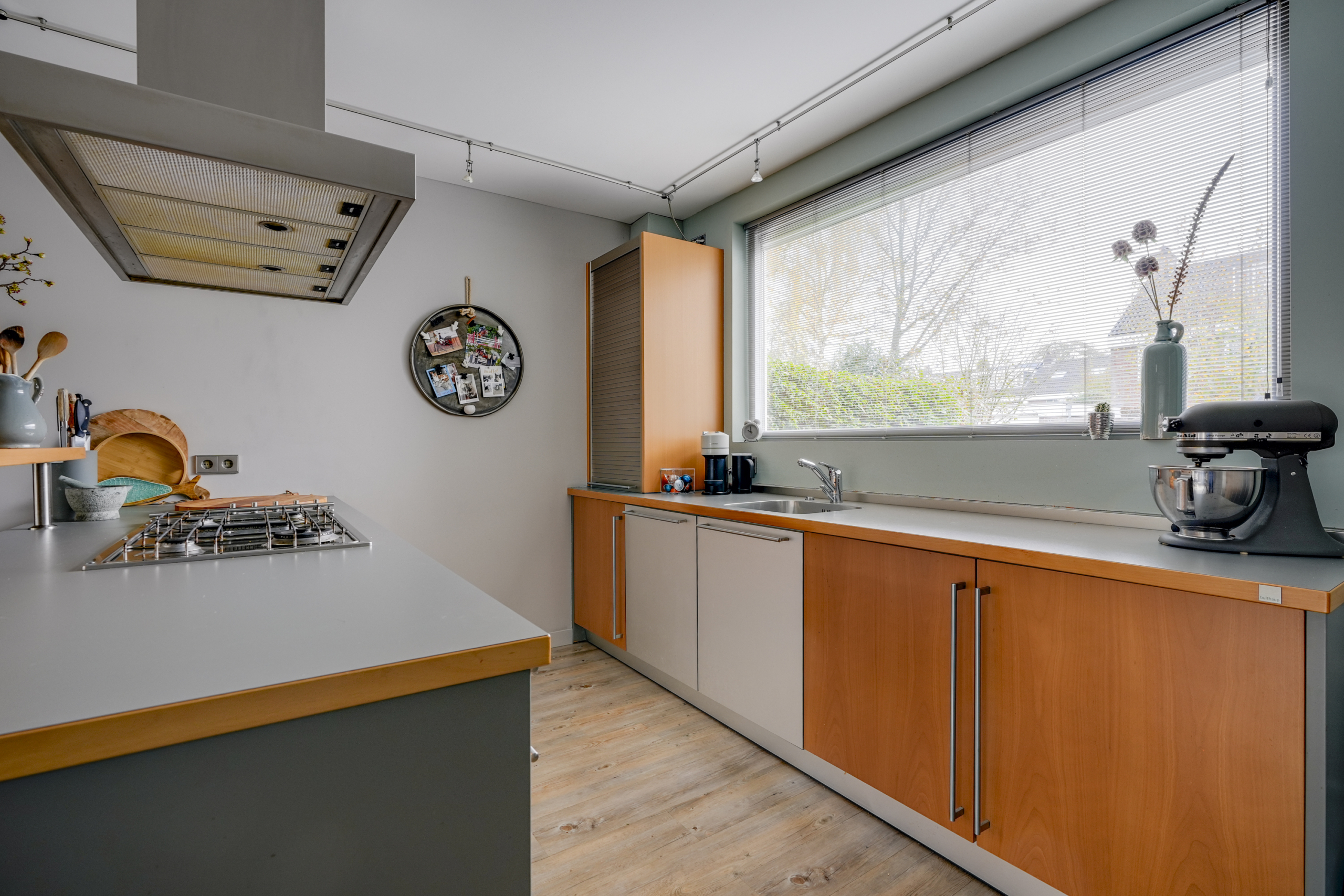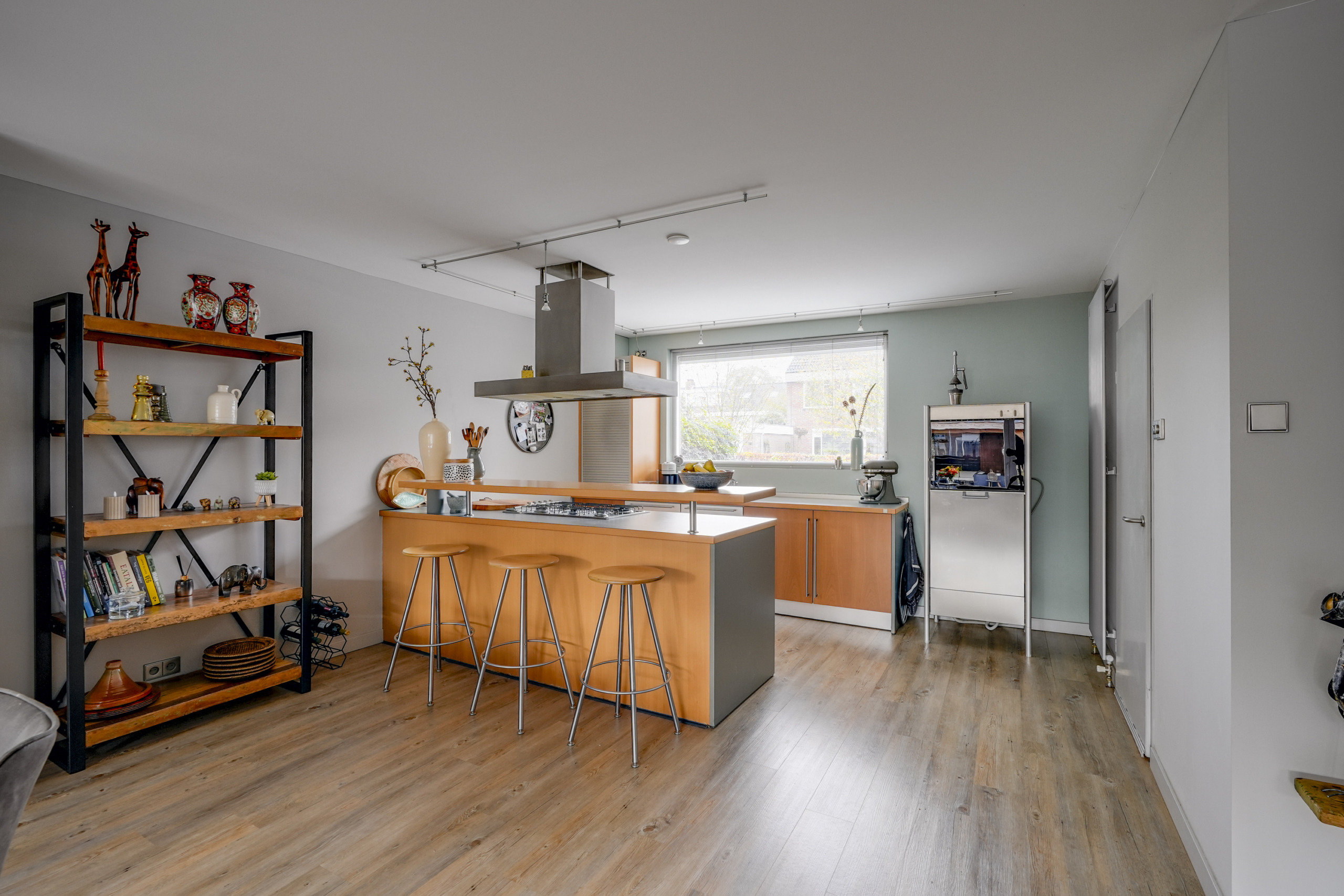 De keuken ligt aan de voorzijde van het huis en biedt alle mogelijkheden om uitgebreid te koken. Dankzij de open verbinding met de woonkamer blijf je altijd betrokken bij het gezinsleven of je gasten. De bar nodigt uit om lekker te genieten van een goede kop koffie en goede gesprekken.