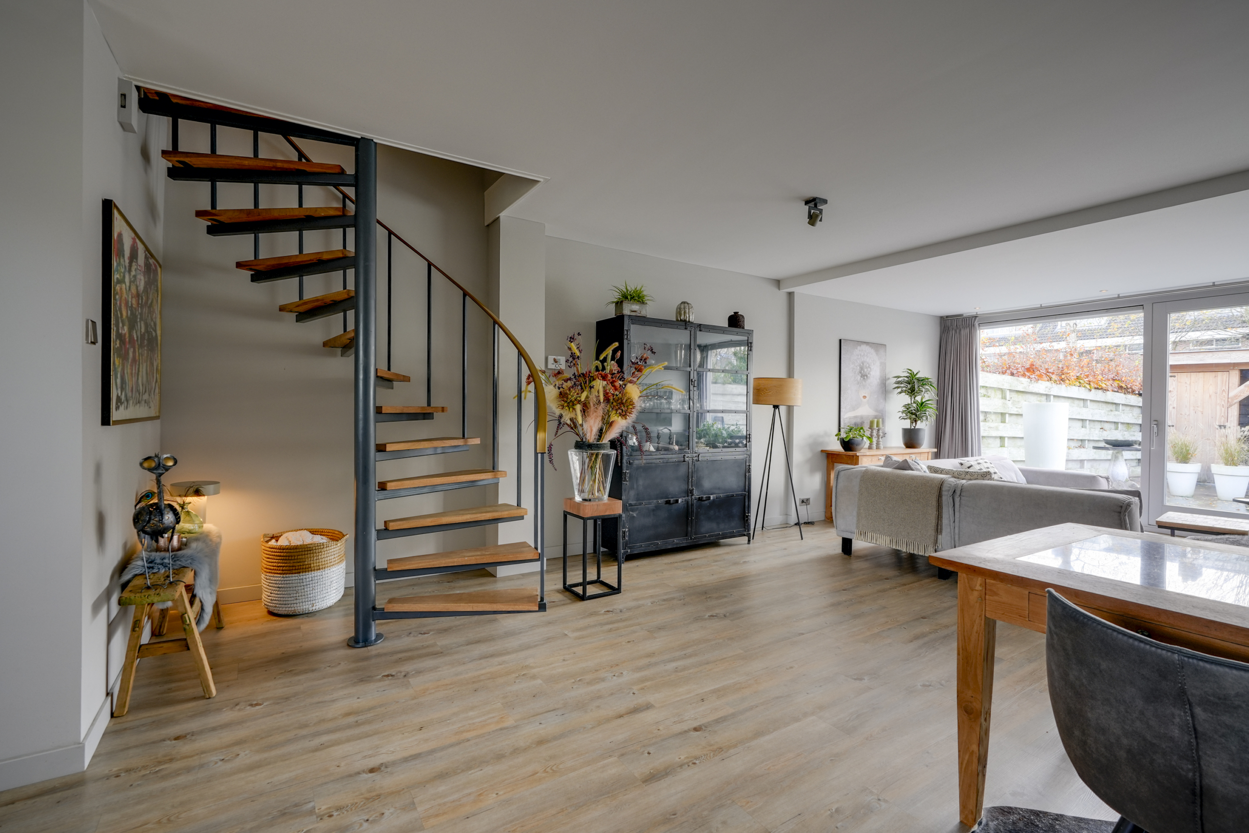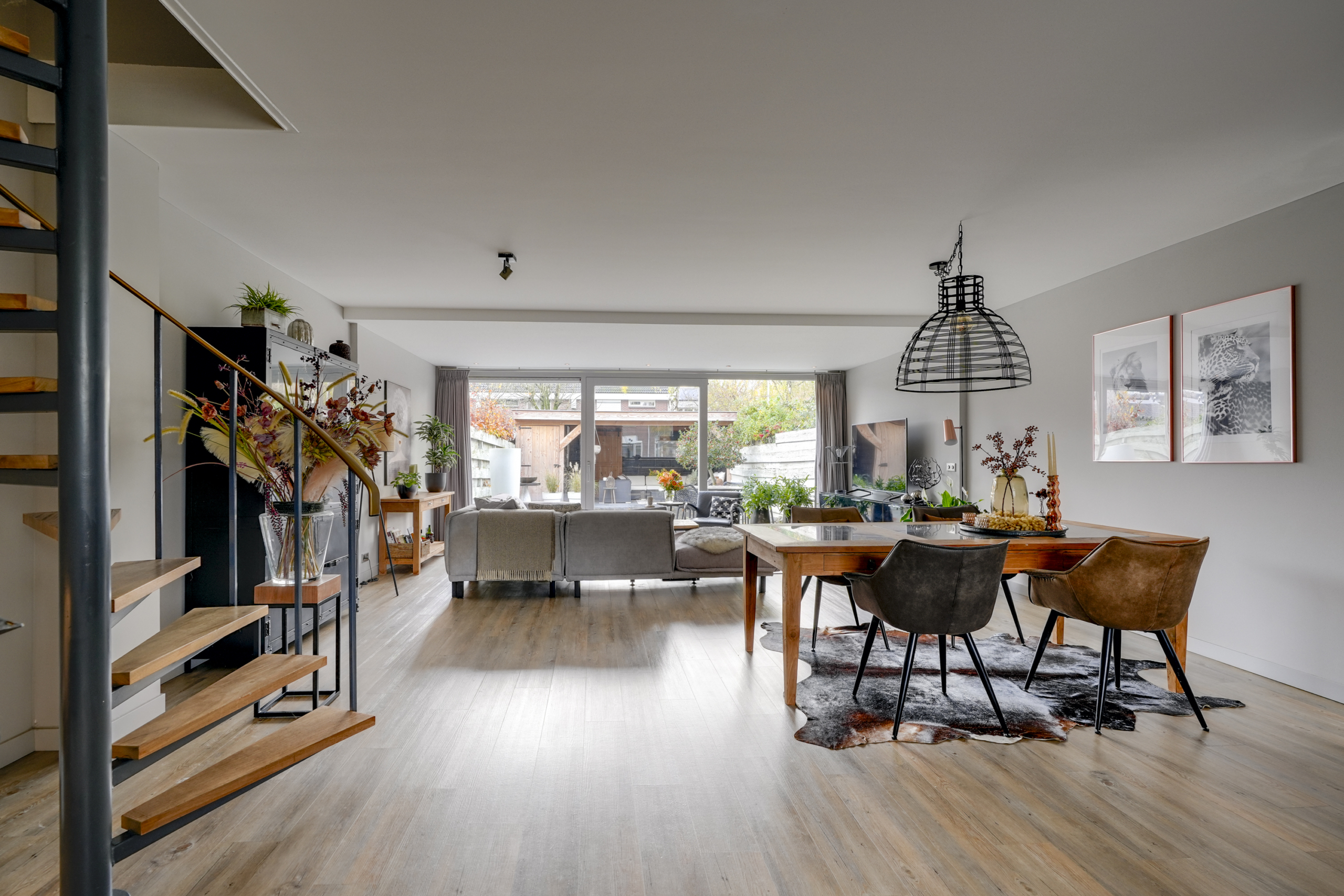 Bij binnenkomst voel je het meteen: dit is een huis waar aandacht en zorg in zit. In de hal vind je direct de praktische toegang tot de stenen berging. Vanuit de hal heb je tevens toegang tot het moderne toilet (2023), de meterkast en de trapopgang. Vanuit hier stap je de ruime uitgebouwde woonkamer binnen. Een royale leefruimte die dankzij de grote ramen en schuifpui lekker licht is. Vanaf de woonkamer kijk je uit op de verzorgde achtertuin op het westen met veranda.