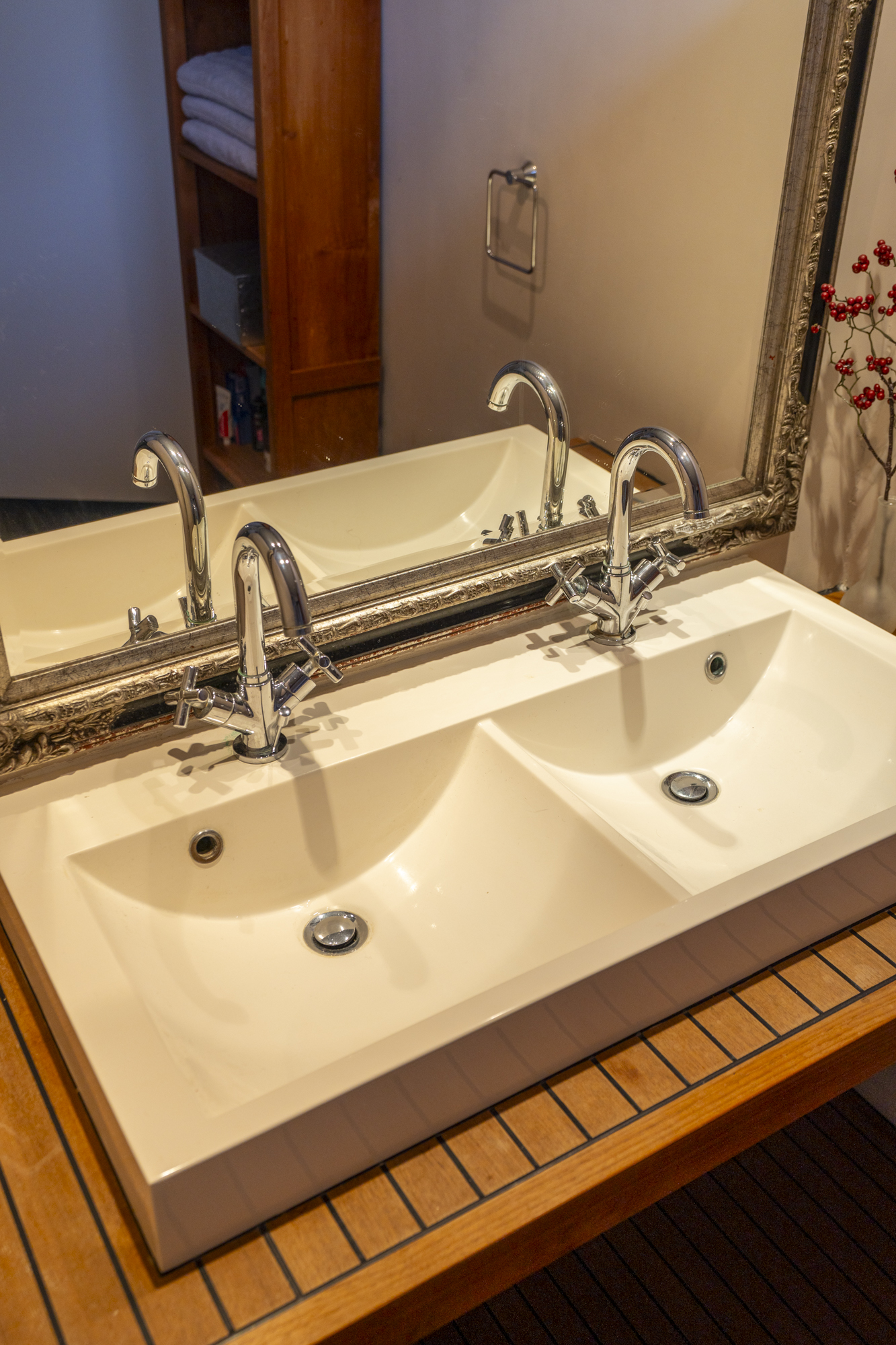 Op de eerste verdieping bevinden zich drie ruime slaapkamers. De moderne badkamer is smaakvol uitgevoerd en voorzien van een dubbele wastafel en een royale inloopdouche. Het separate toilet op de overloop maakt deze verdieping compleet en zorgt voor extra comfort tijdens de ochtendspits.