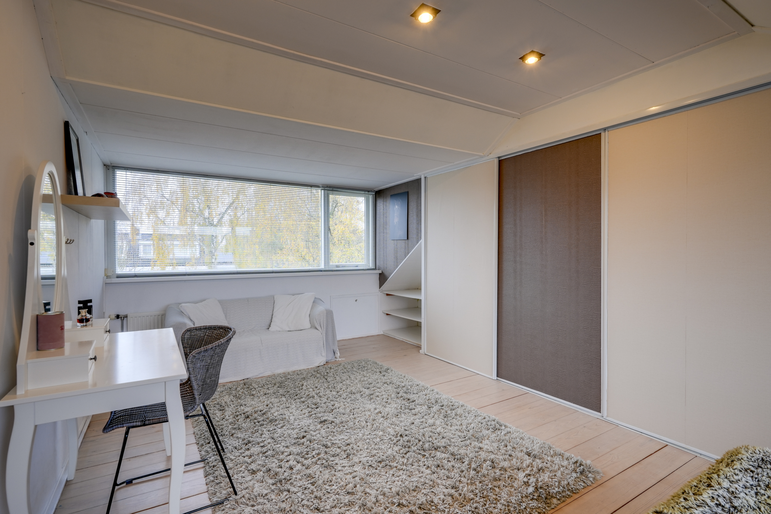 De tweede verdieping biedt nog meer ruimte en mogelijkheden. Hier vind je een nette voorzolder met de opstelplaats voor de wasmachine, droger en Cv-installatie. De vierde slaapkamer is een absolute plus. Dankzij de twee dakkapellen is deze kamer lekker ruim en licht. De vaste kastenwand biedt veel opbergruimte en maakt de kamer zeer geschikt als masterbedroom, werkkamer, hobbyruimte of logeerkamer. Tevens zou je hier ook eenvoudig 2 slaapkamers kunnen creëren zodat je in totaal 5 slaapkamers hebt.