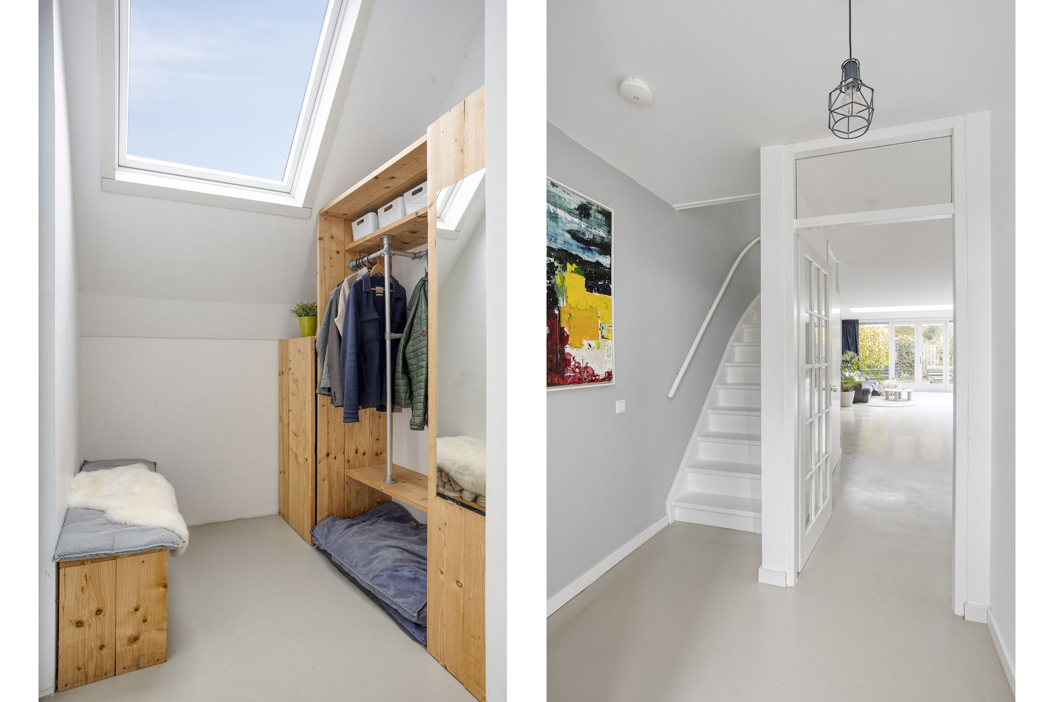 An exceptionally well-maintained and spacious family home featuring four bedrooms, a modern bathroom (2025), energy label A with 12 solar panels (450 WP), and two private parking spaces with an electric charging station. Thanks to a 4-meter-deep rear extension and two large dormer windows, this property is among the most spacious in the neighborhood. With a living area of approximately 134 m² and a sunny west-northwest-facing garden with a back entrance, this house offers the perfect home for families seeking comfort, space, and sustainability.