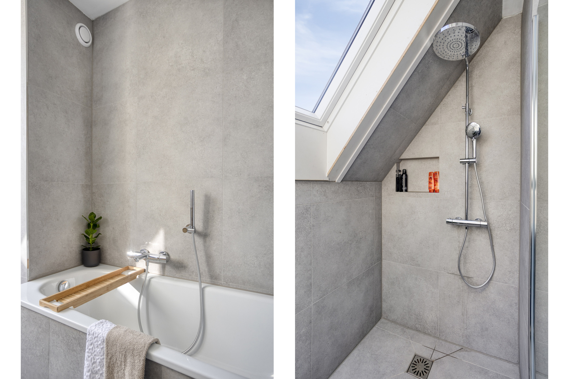 Landing with access to three well-proportioned bedrooms. The luxurious new bathroom (2025) is finished to a high standard and includes a walk-in shower, bathtub, second toilet, and washbasin cabinet — sleek, modern, and ready to enjoy.