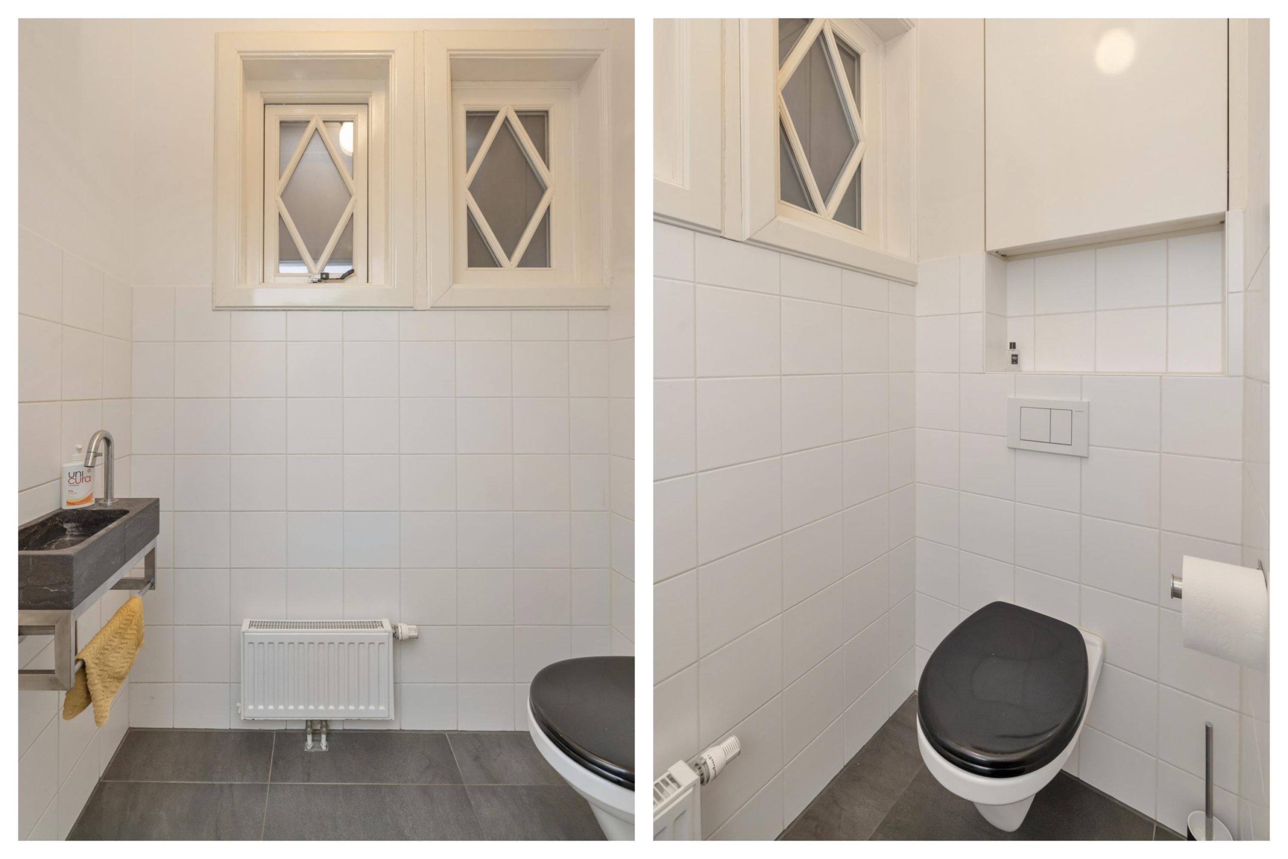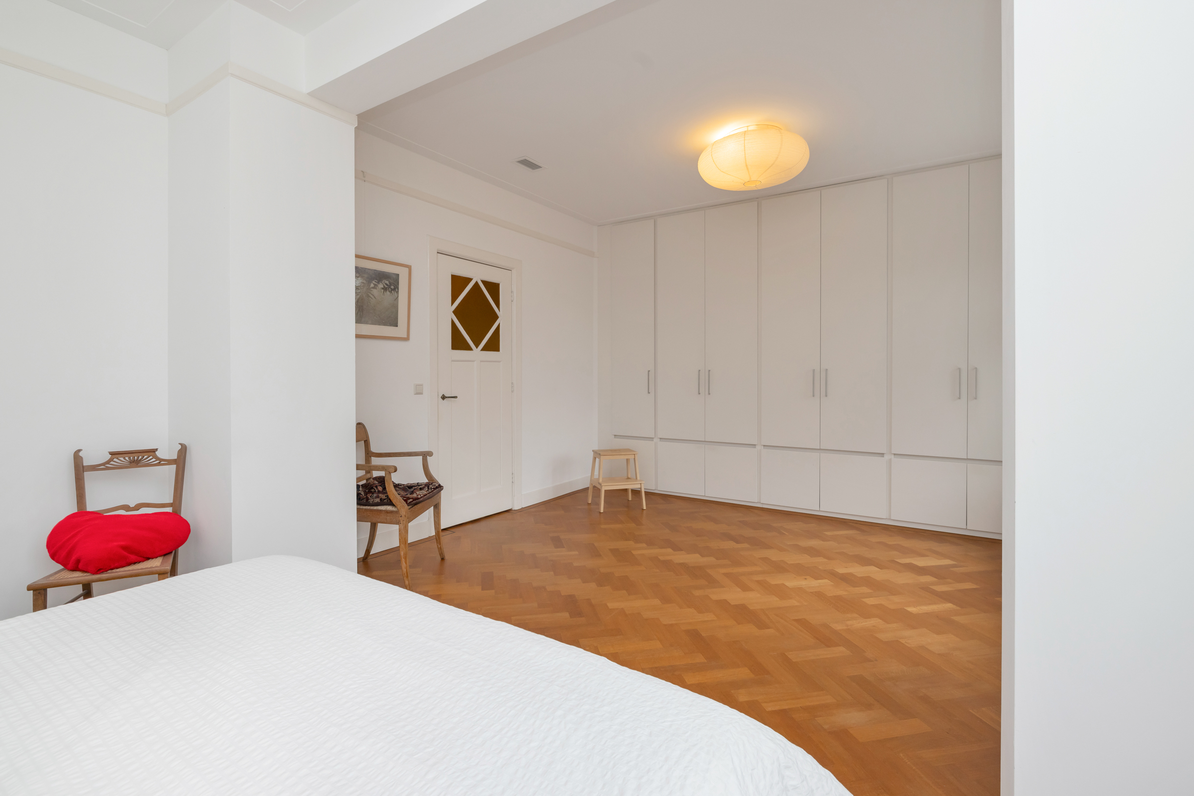 Inbouwkast met wastafel en openslaande deuren naar balkon (O), ruime achterslaapkamer met schouw en groot balkon (ZW), tussenliggende 2e pantry met opslagruimte, aparte 3e toilet en fontein, 2e ruime inbouwbergkast;