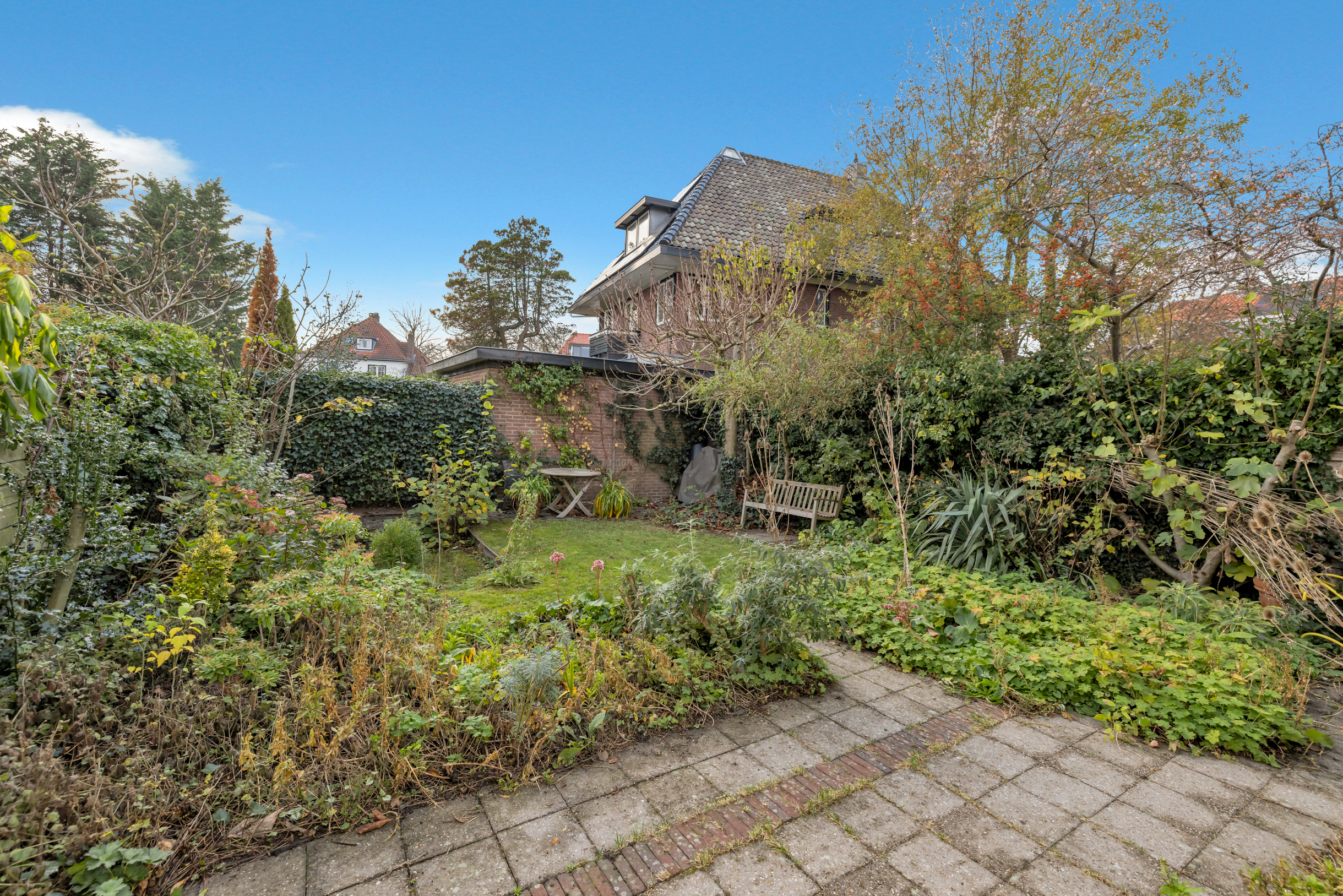 De Villa heeft een zonnige brede achtertuin met terras (ca. 12 x 8,50 mtr.) op het Zuid-Westen en een mooi vrij zicht naar achteren met veel privacy, naast het huis een houten aangebouwde berging- opslagruimte- fietsenstalling op stenen voeting met fundering. De tuin heeft ook een achterom. Tevens aanwezig een ruime brede voor- en zijtuin en openbaar parkeren voor de deur.