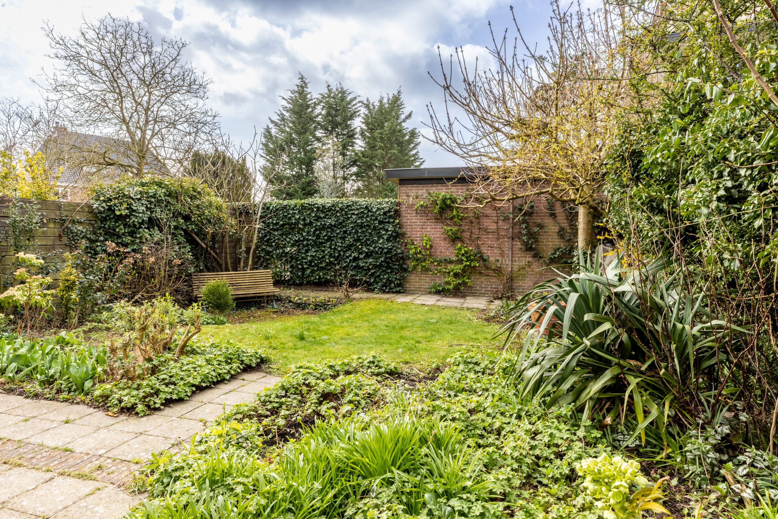 Het huis heeft een zonnige brede achtertuin met terras (ca. 12 x 8,50 mtr.) op het Zuid-Westen en een mooi vrij zicht naar achteren met veel privacy, naast het huis een houten aangebouwde berging/opslagruimte/fietsenstalling op stenen voeting met fundering. De tuin heeft ook een achterom. Tevens aanwezig een ruime brede voor- en zijtuin en openbaar parkeren voor de deur. Eigen parkeerplek op eigen terrein via inrit mogelijk te realiseren.