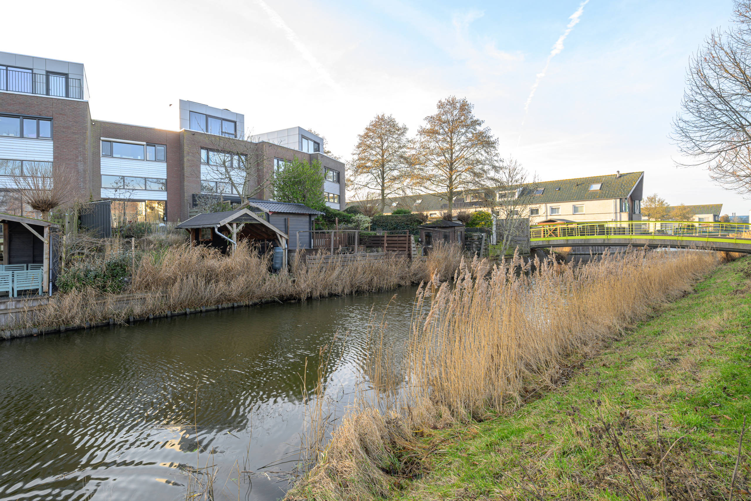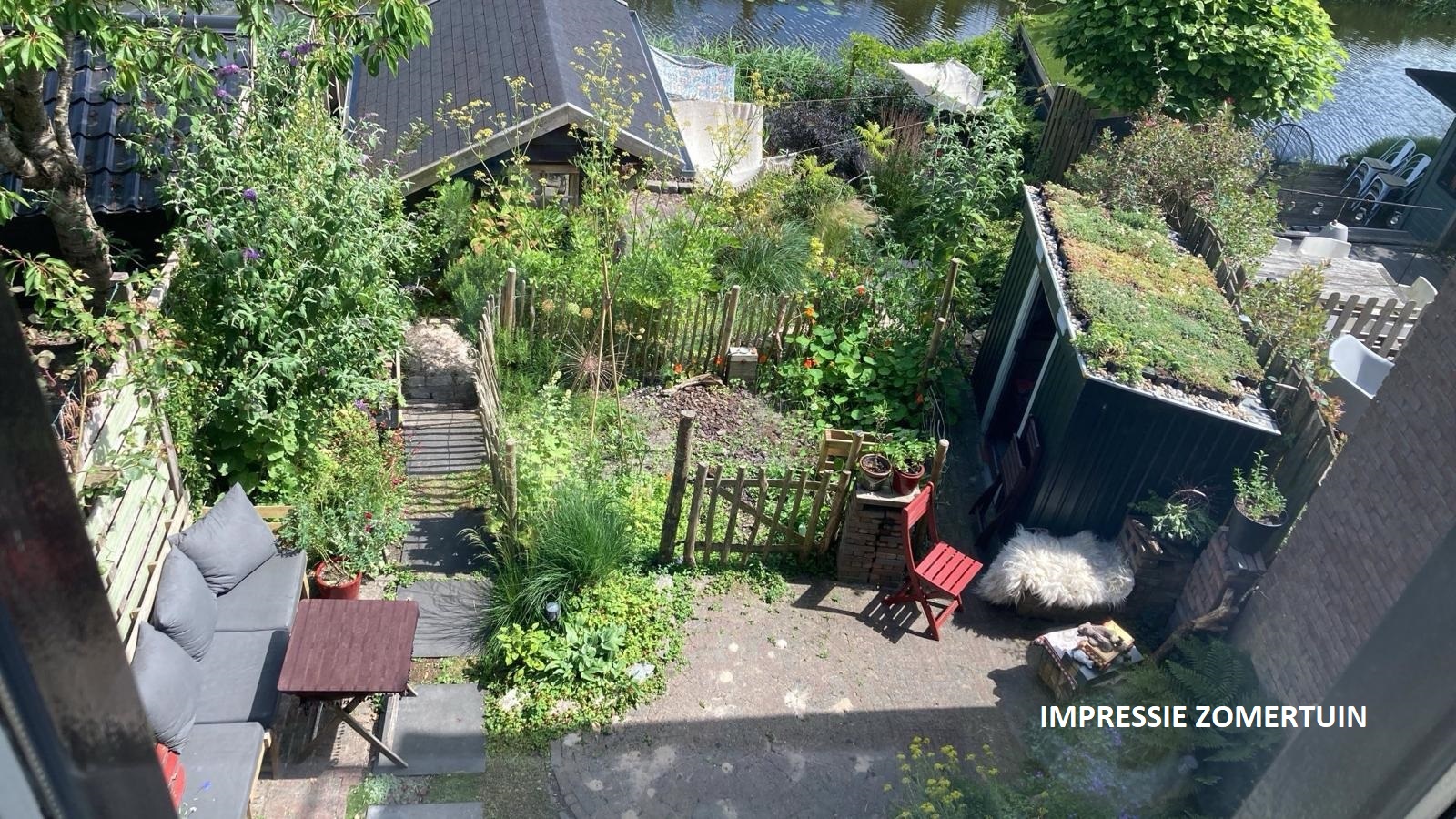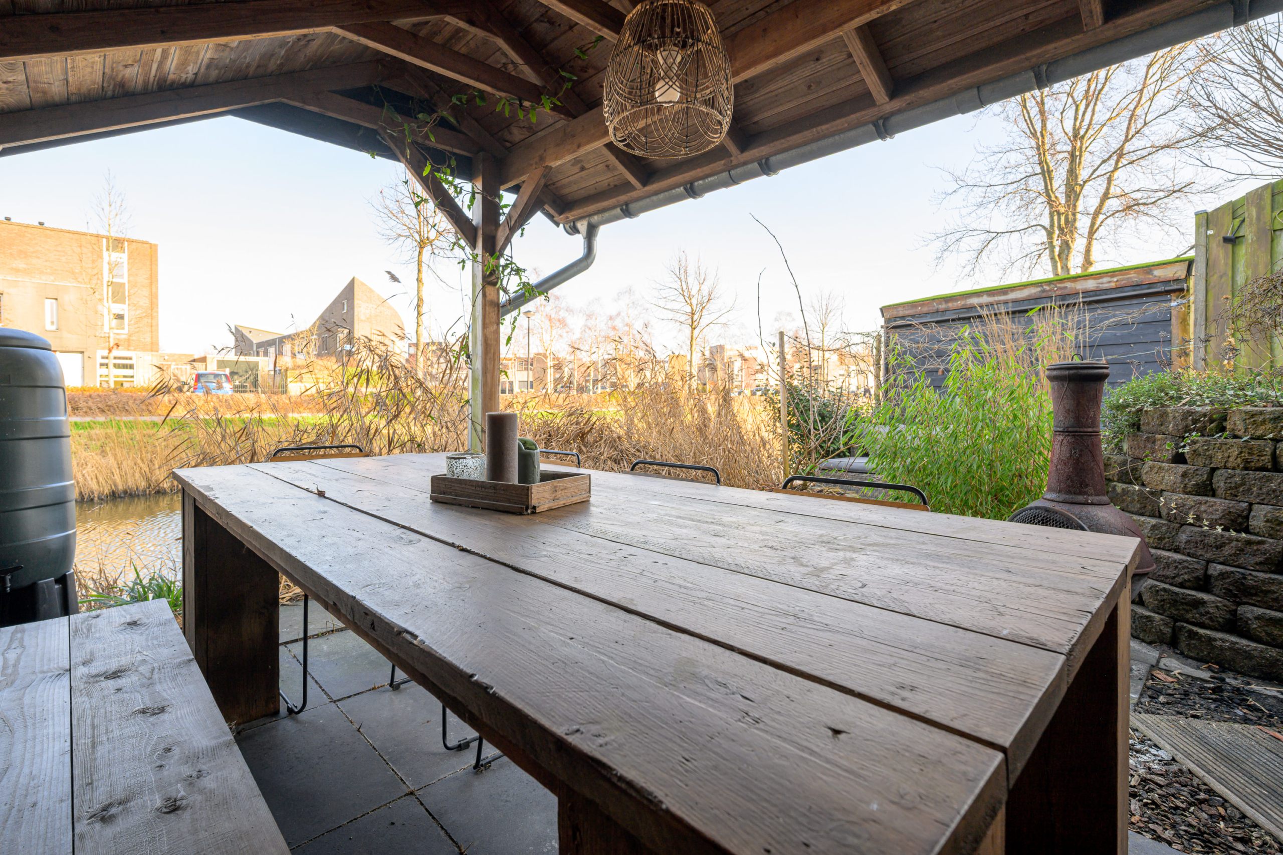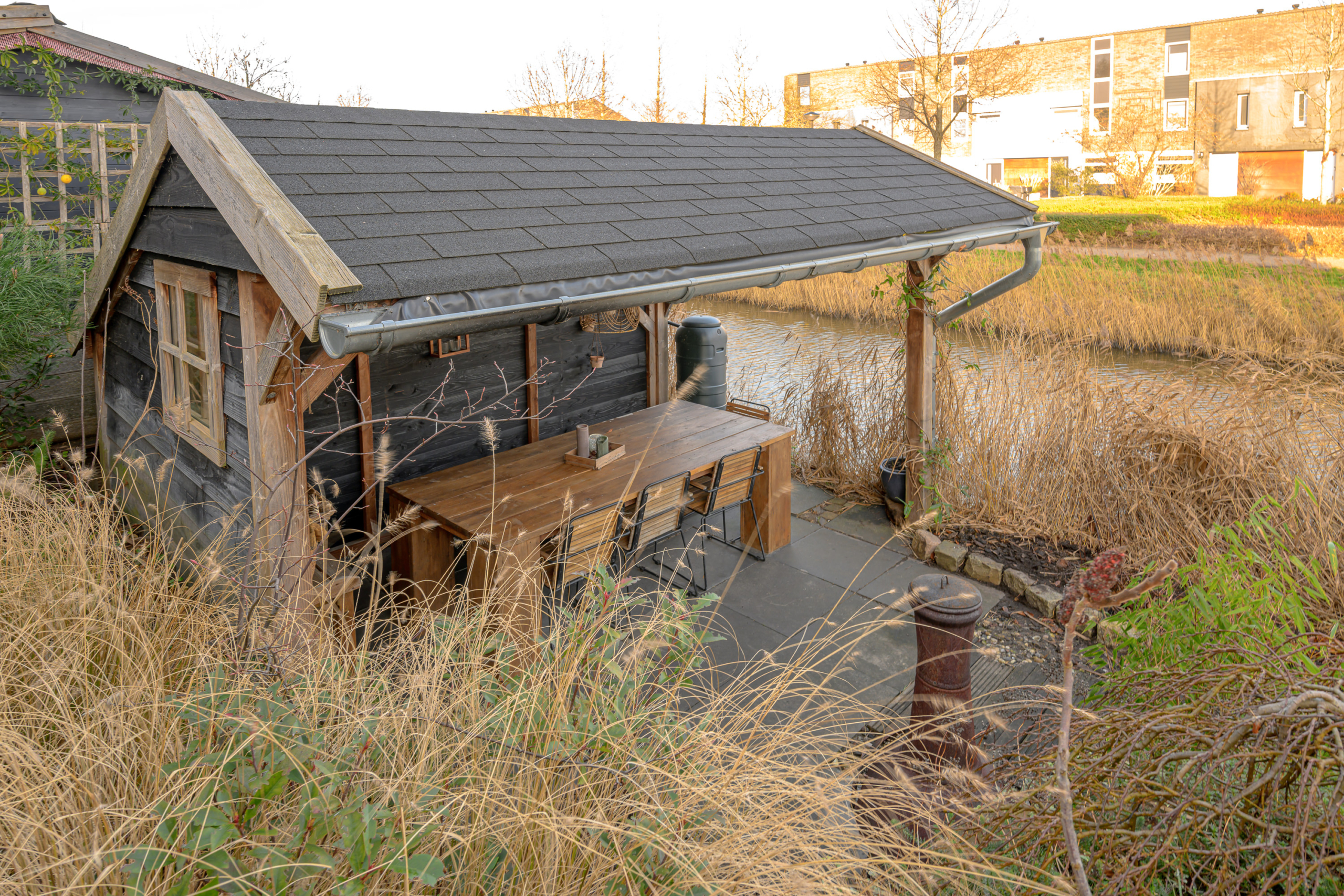 De diepe achtertuin aan het (vaar)water is een absolute plus. De tuin is in meerdere niveaus aangelegd met veel gevarieerde beplanting. Op het terras aan de waterzijde is een sfeervolle veranda aanwezig waar je heerlijk beschut zit en tot laat in de avond buiten kunt genieten.