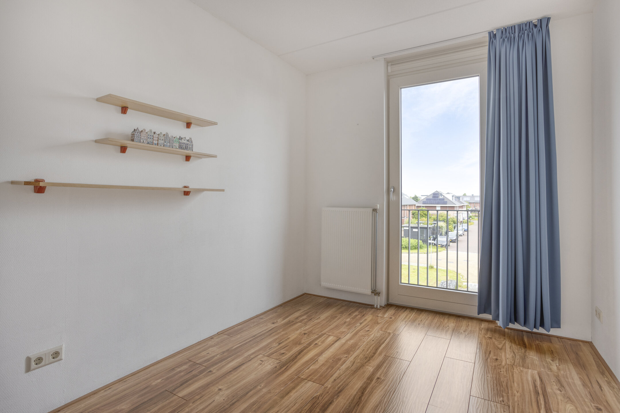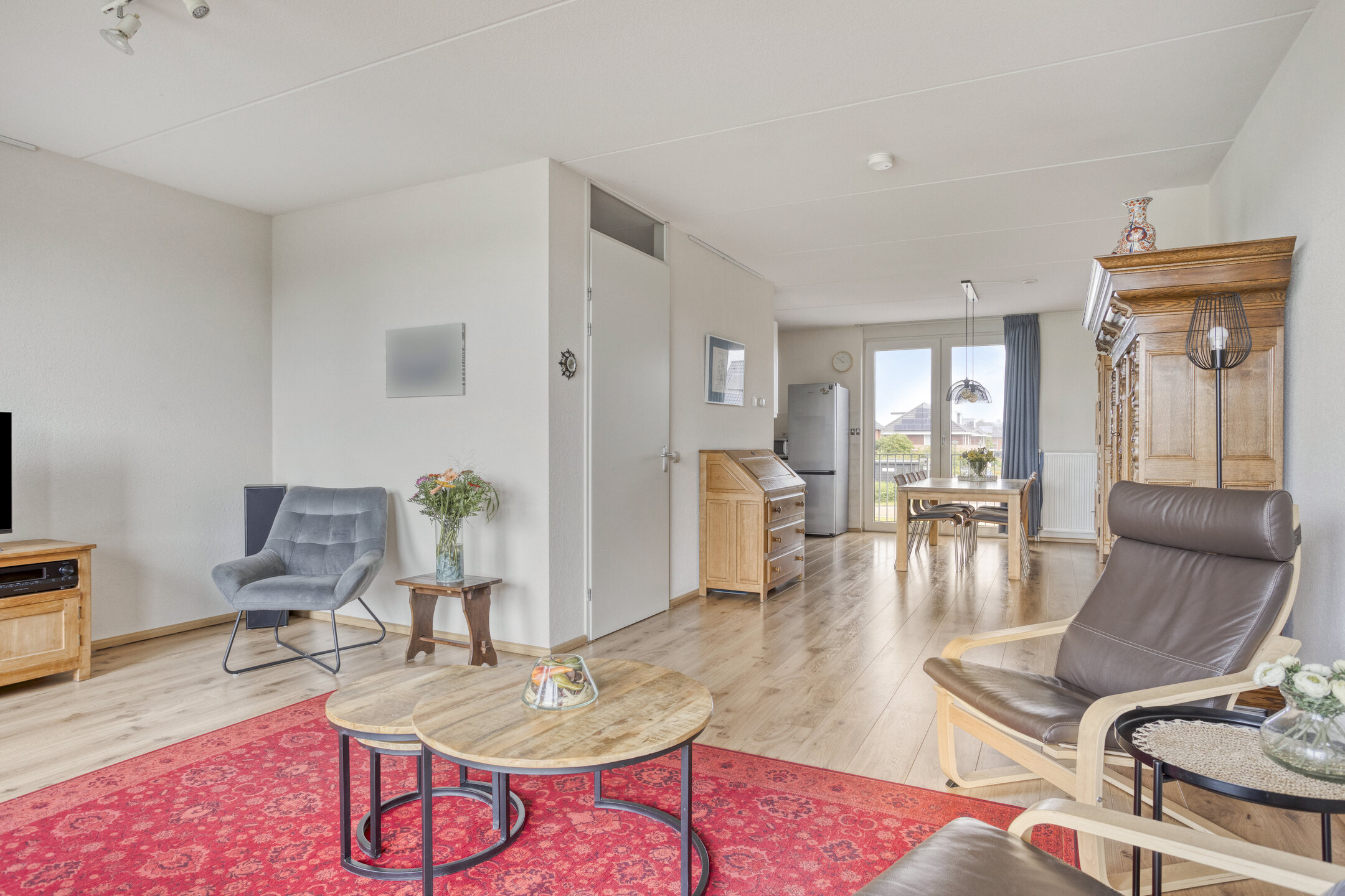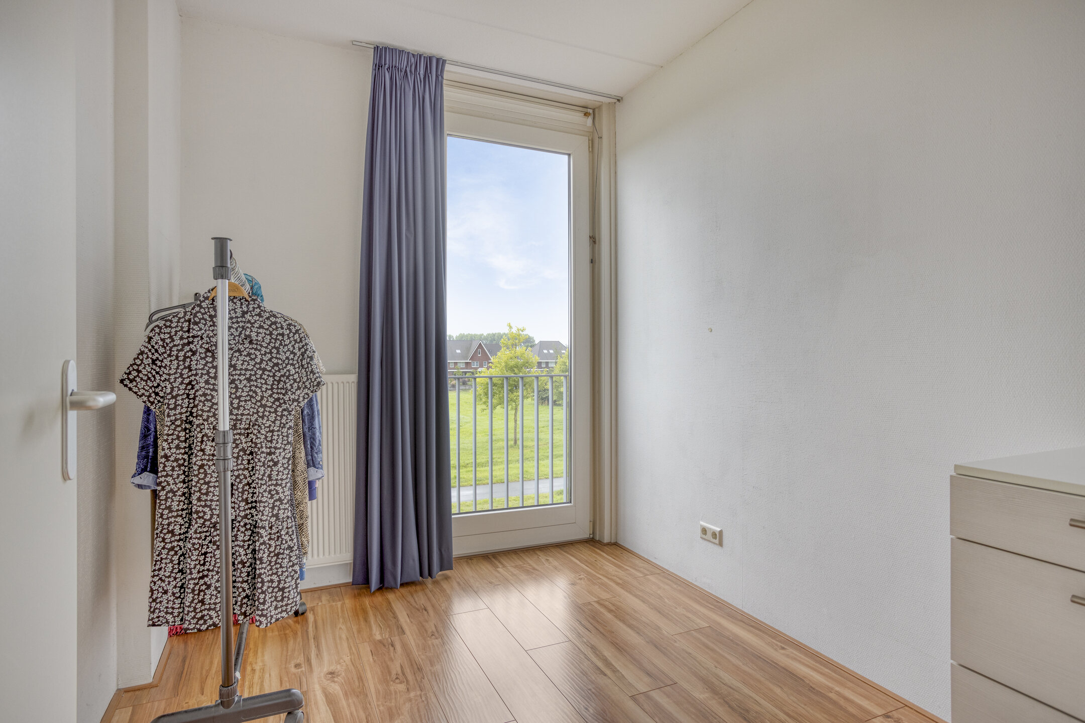 De eerste verdieping is het hart van het huis. Hier vind je een ruime woonkamer met grote raampartijen aan beide zijden, wat zorgt voor veel lichtinval en een gevoel van ruimte. De afwerking is keurig en neutraal, met lichte wanden en een nette laminaatvloer als tijdloze basis voor je eigen inrichting. De open keuken bevindt zich aan de voorzijde en is uitgerust met diverse inbouwapparatuur. Door de ruime opzet is er voldoende plek voor een eettafel. De dubbele openslaande deuren geven toegang tot een Frans balkon, perfect om even een raam open te zetten of te genieten van het vrije uitzicht.