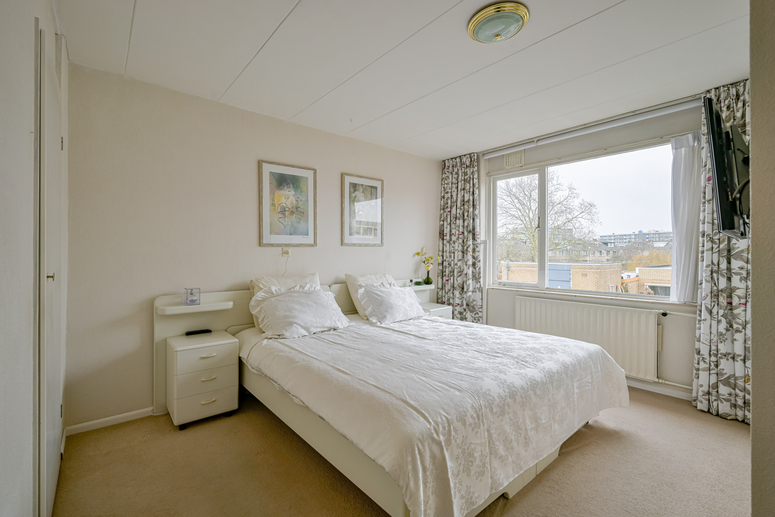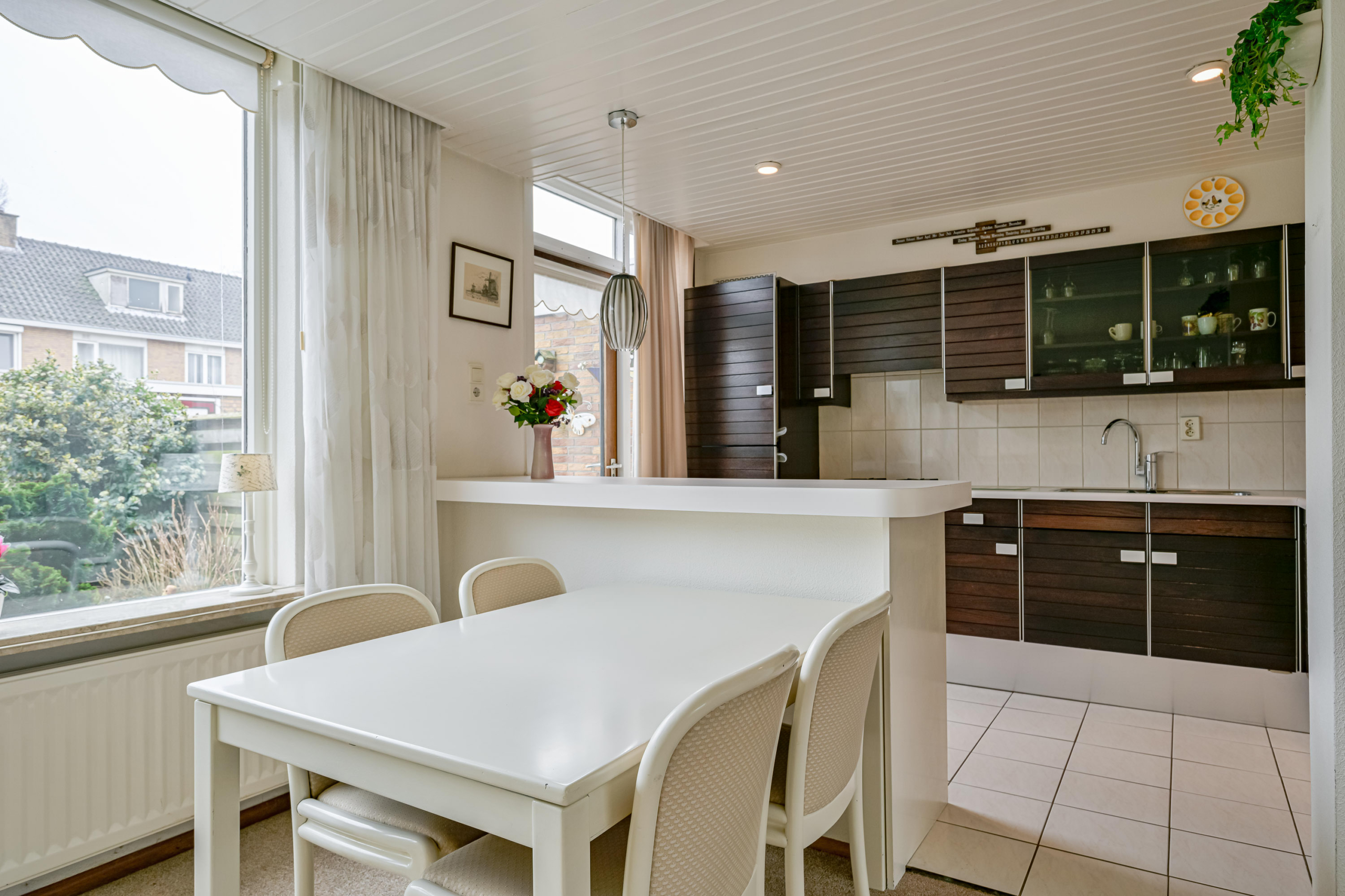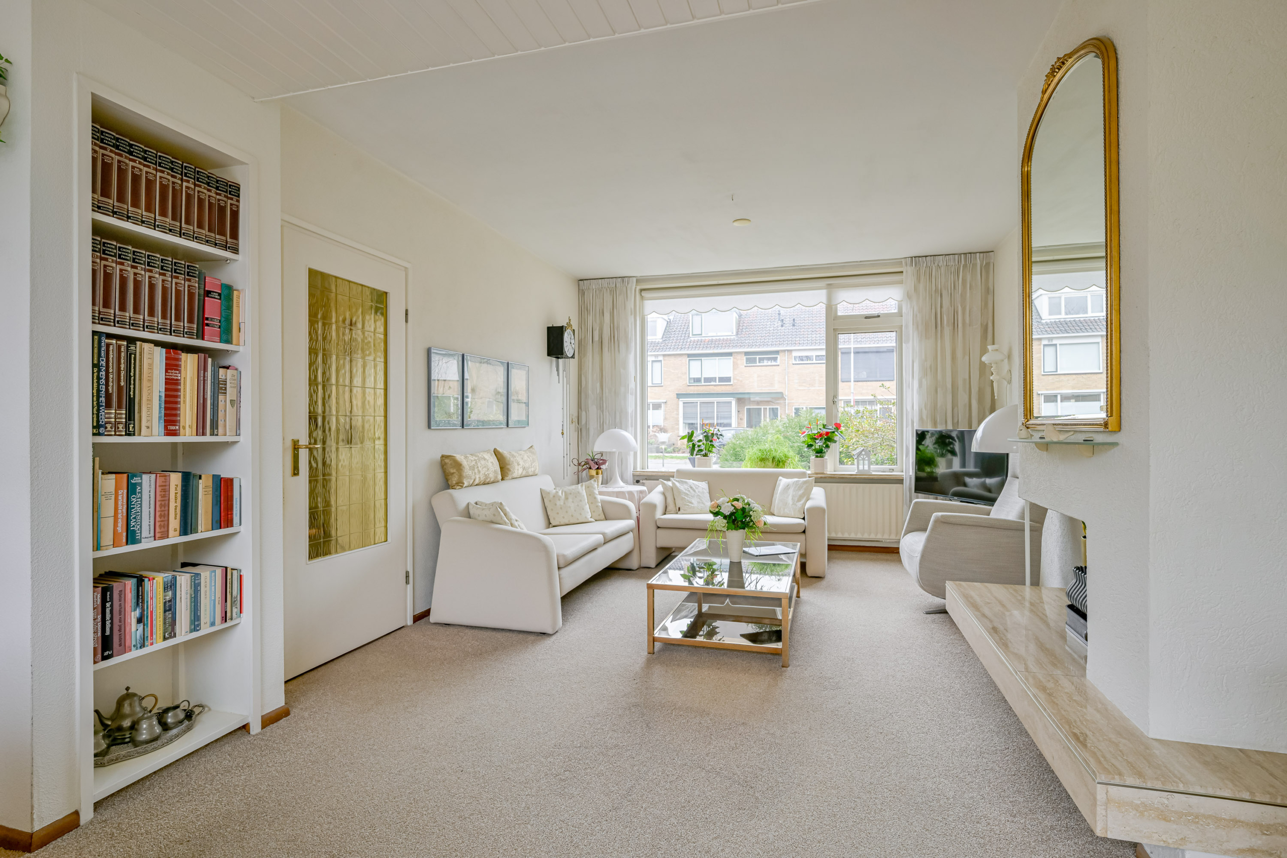 De verrassend ruime en lichte woonkamer met open keuken heeft een totale oppervlakte van circa 34,5 m² en is praktisch ingedeeld. Het zitgedeelte met haardpartij bevindt zich aan de voorzijde, terwijl de eethoek aan de tuinzijde ligt. De keukenruimte is middels een bargedeelte afgescheiden van de woonkamer. De keukeninrichting is op leeftijd maar deze Poggenpohl hoekkeuken is dan ook van een onverwoestbare kwaliteit. De keuken is voorzien van een wit gelamineerd werkblad met dubbele spoelbak, een inbouw koel-/vriescombinatie, 4-pits gaskookplaat, oven en wasemkap.