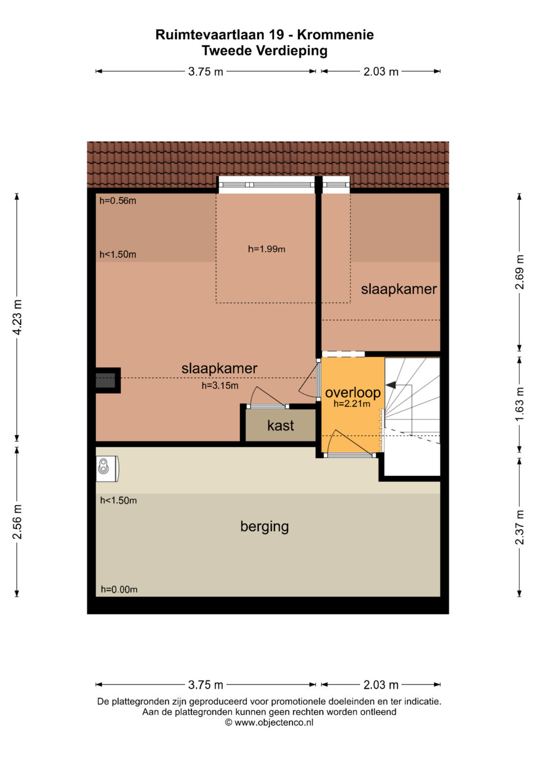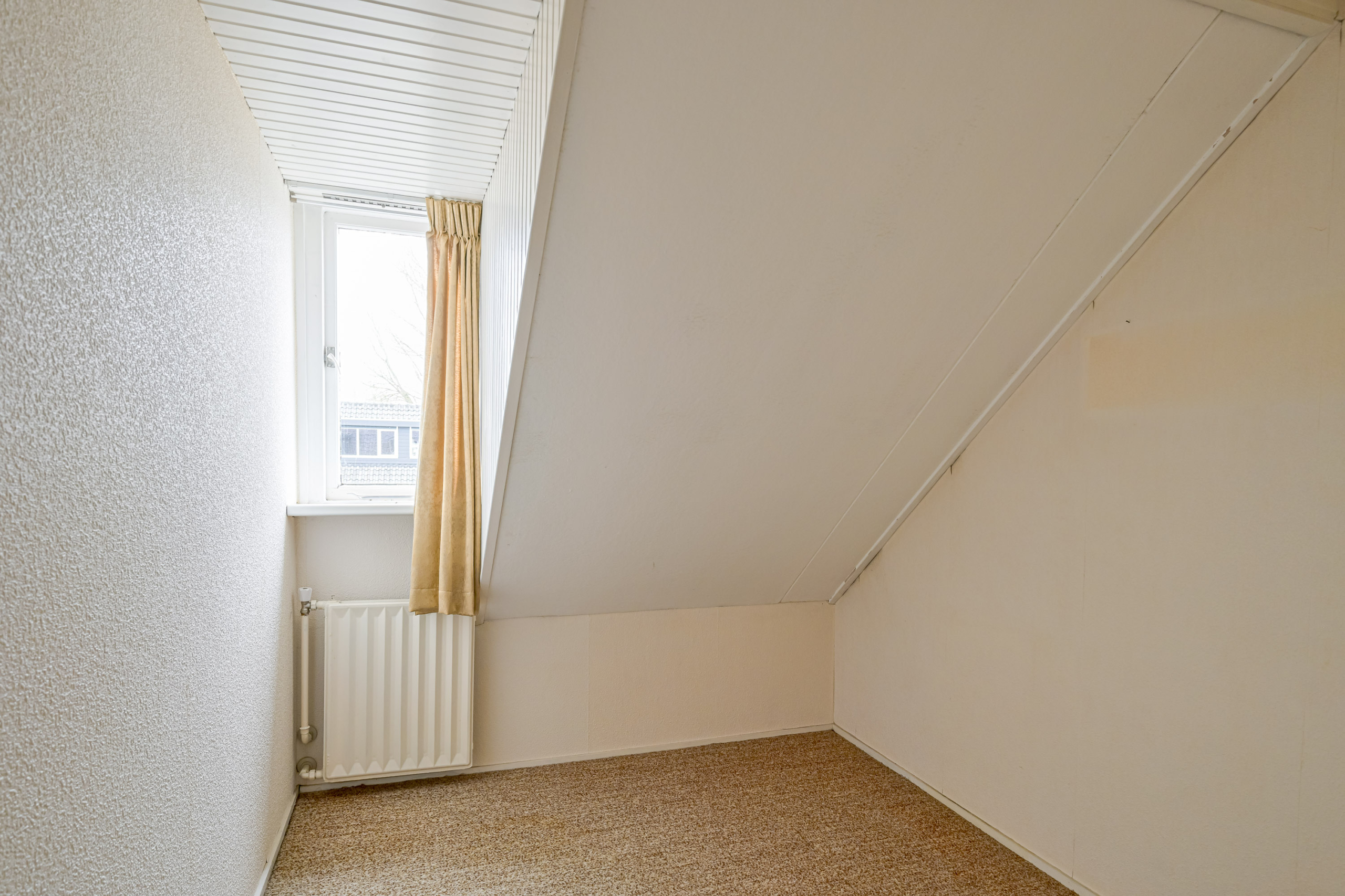 De tweede verdieping, bereikbaar via een vaste trap, biedt ruimte aan nog een grote vierde slaapkamer (2-persoons) met dakkapel, een kleinere werkkamer/kleedruimte alsmede een flinke bergruimte waar tevens de cv-ketel (Nefit Proline HRC24, 2009) geplaatst is.
