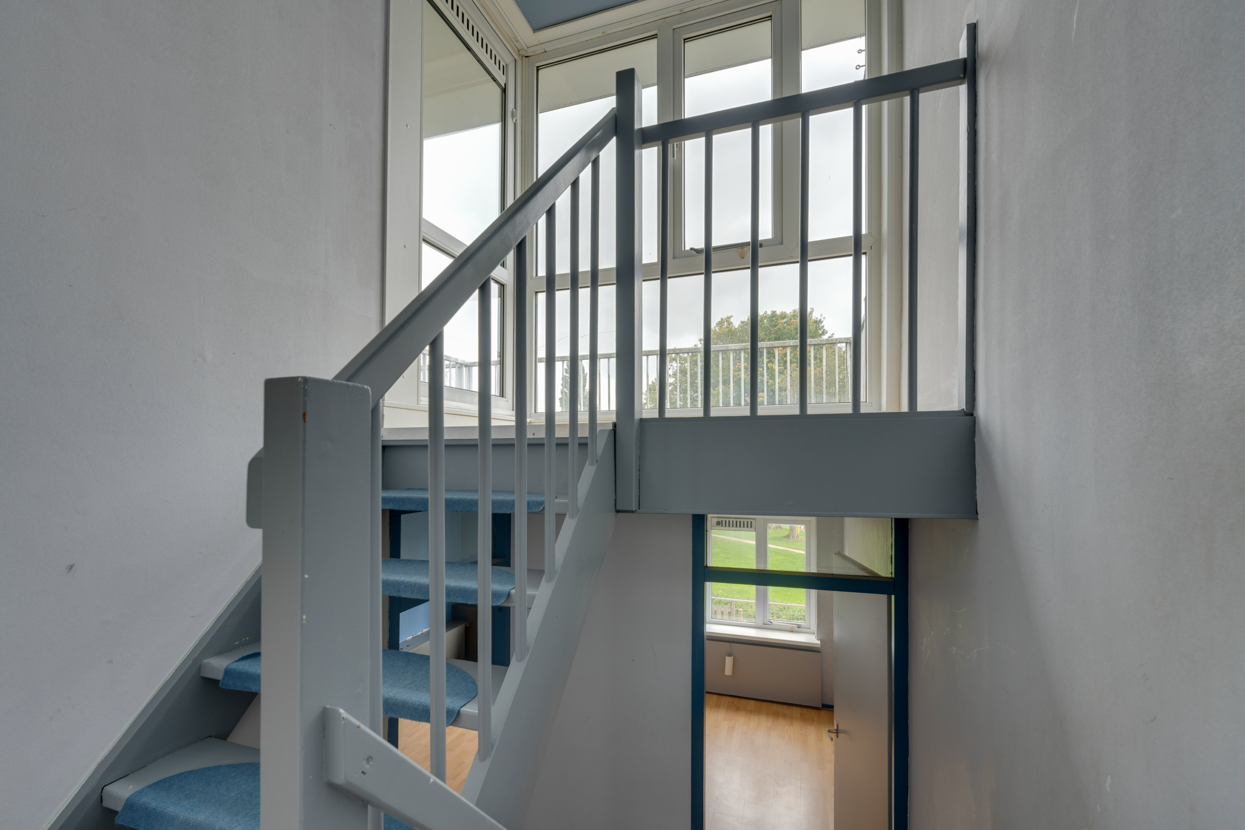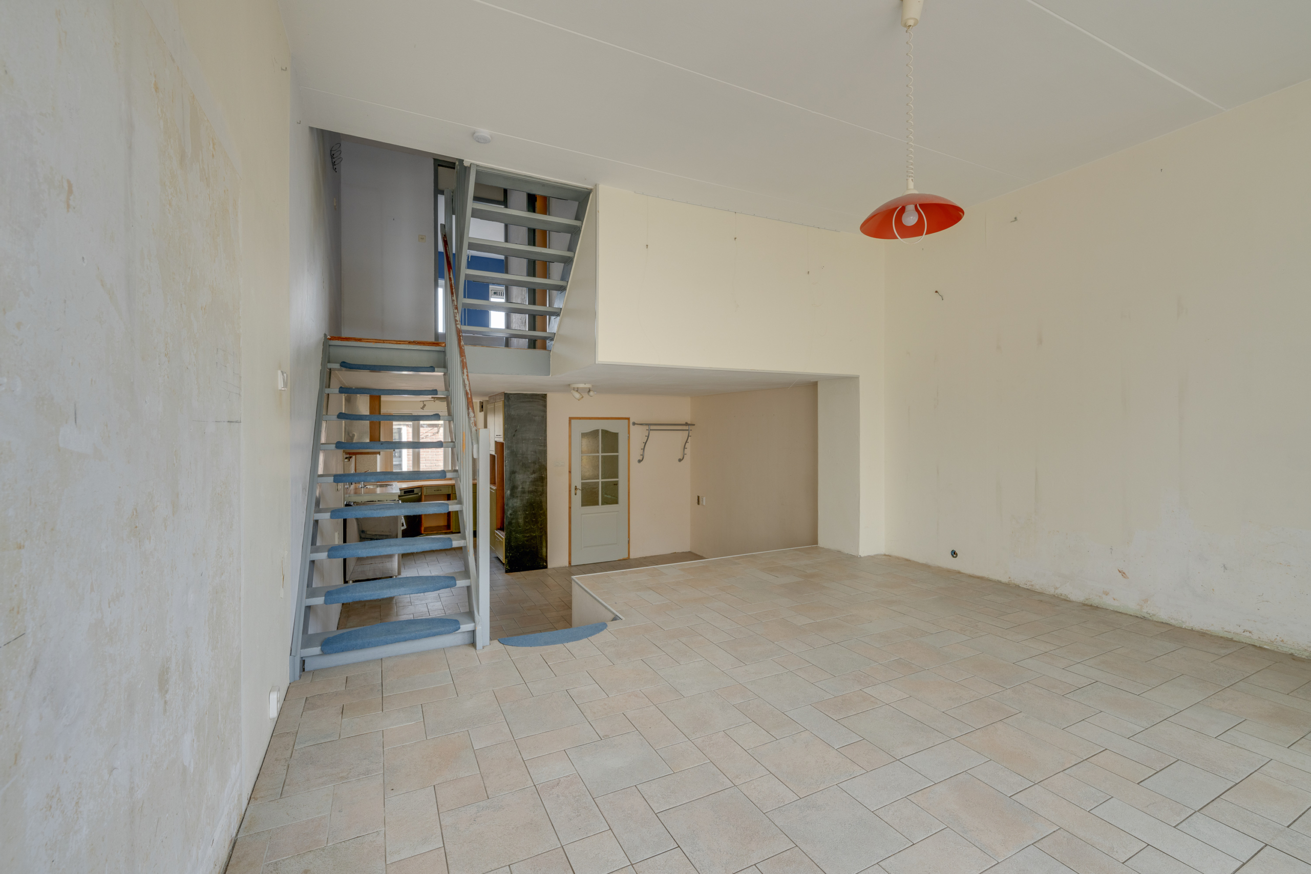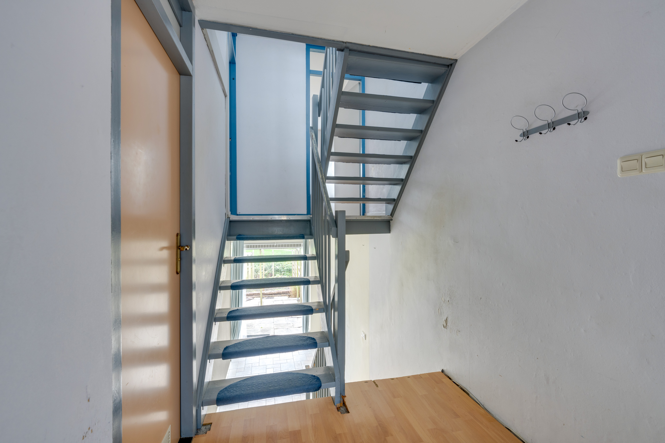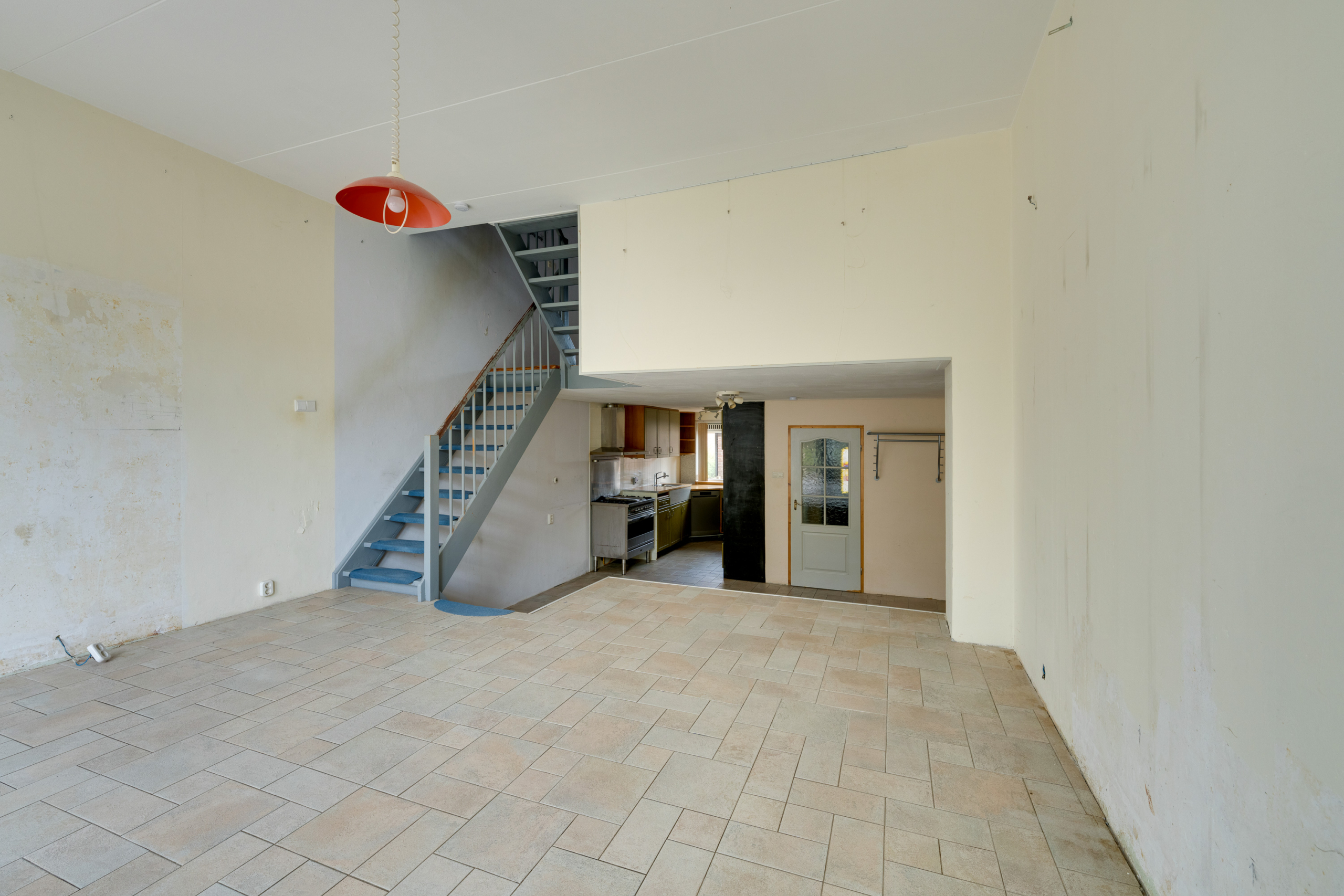 Bij binnenkomst valt meteen het vrije uitzicht op aan de achterzijde, dat je nóg meer ervaart door op de begane grondvloer enkele treden omhoog te gaan naar de verhoogde woonkamervloer. Deze ruime en lichte woonkamer, grenzend aan de zonnige achtertuin, vormt het kloppend hart van de woning en heeft een extra hoog plafond. Aan de voorzijde van de woning, enkele treden terug/lager, bevindt zich de keukenopstelling en in de entreehal bevinden zich de meterkast, het toilet en ook een inpandige berging/voorraadkast.