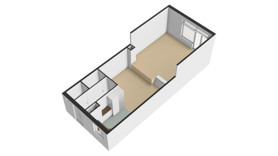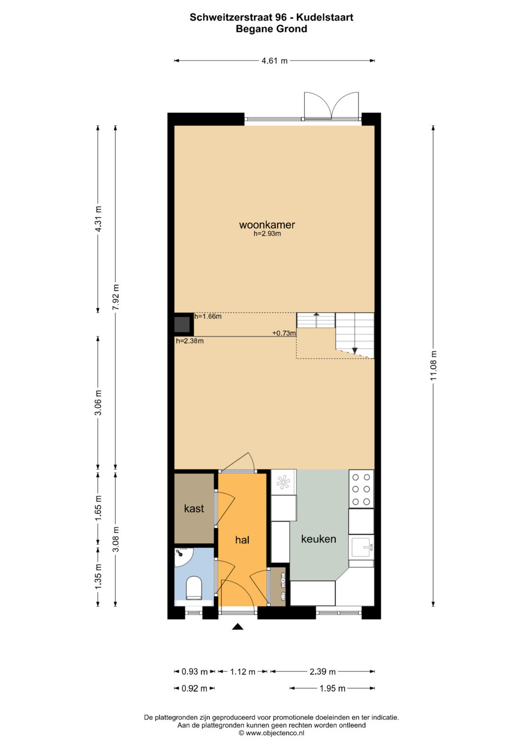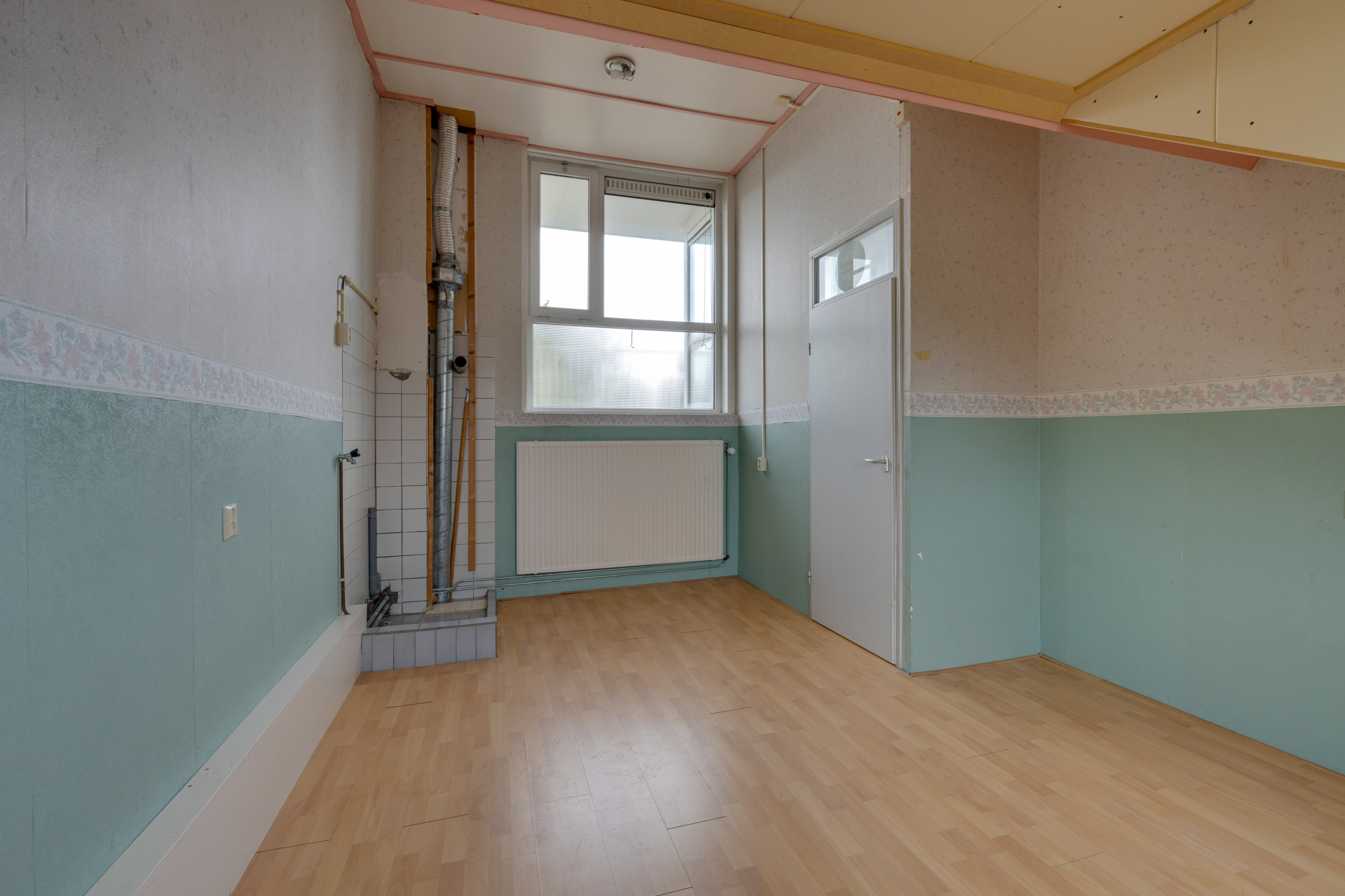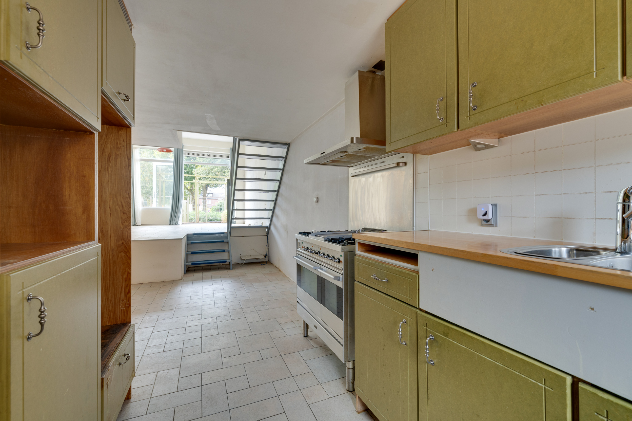 Bij binnenkomst valt meteen het vrije uitzicht op aan de achterzijde, dat je nóg meer ervaart door op de begane grondvloer enkele treden omhoog te gaan naar de verhoogde woonkamervloer. Deze ruime en lichte woonkamer, grenzend aan de zonnige achtertuin, vormt het kloppend hart van de woning en heeft een extra hoog plafond. Aan de voorzijde van de woning, enkele treden terug/lager, bevindt zich de keukenopstelling en in de entreehal bevinden zich de meterkast, het toilet en ook een inpandige berging/voorraadkast.