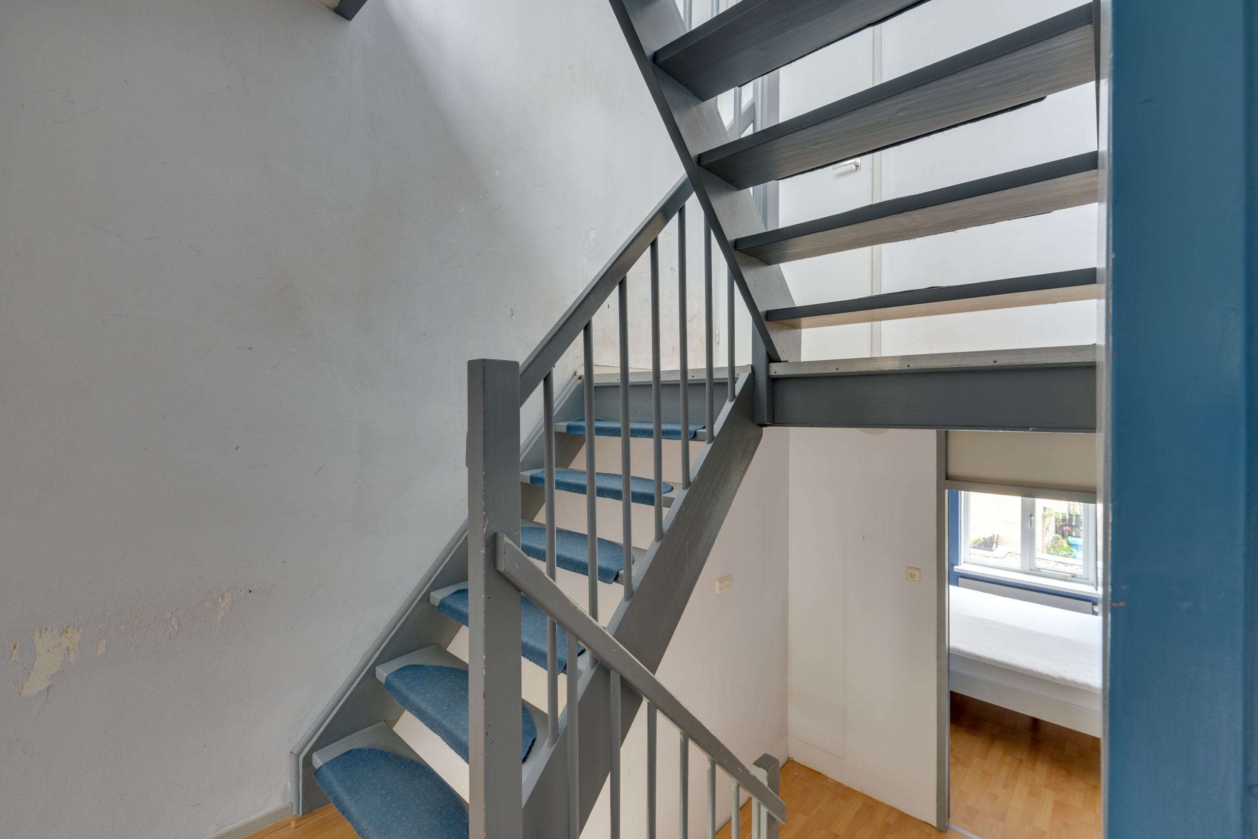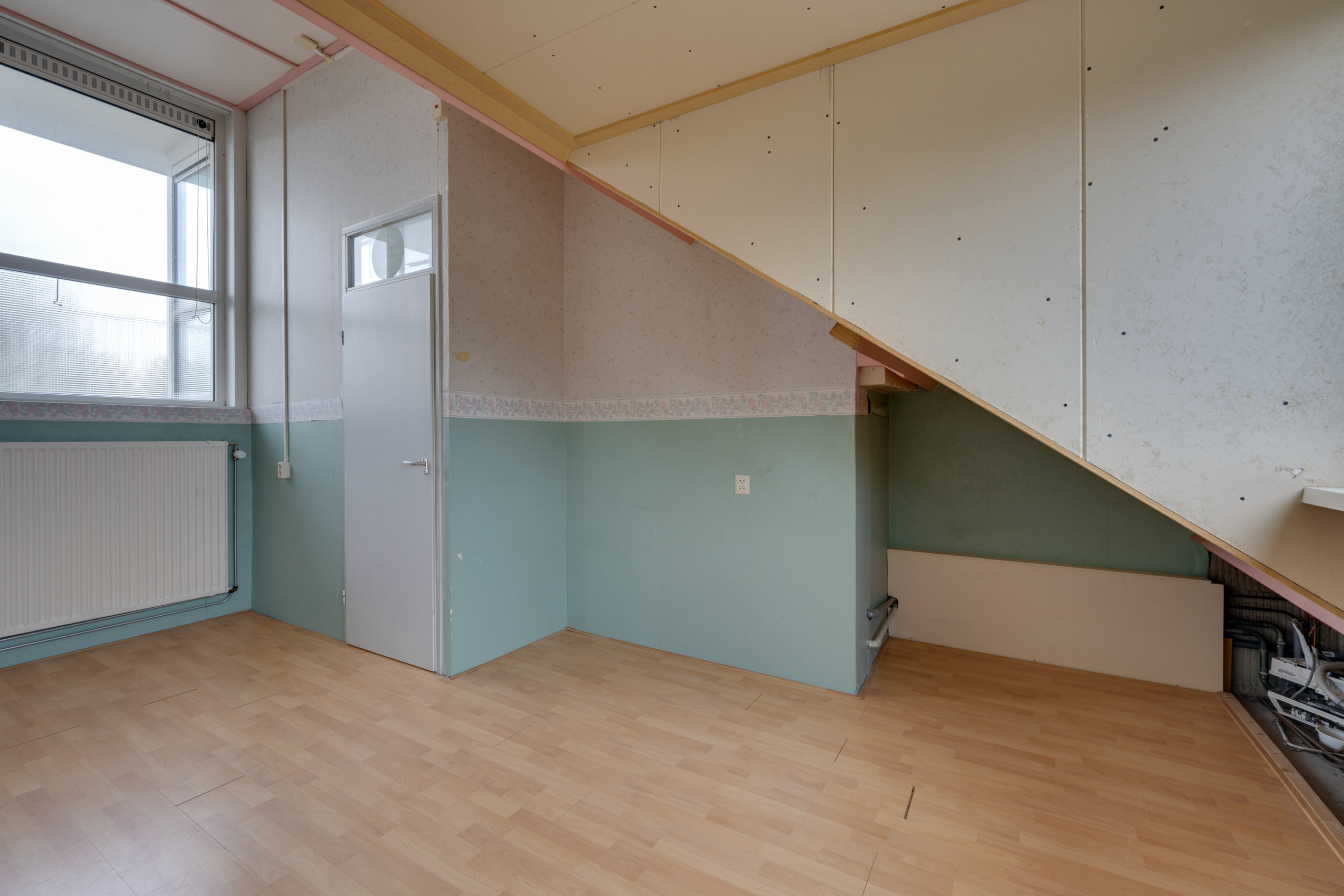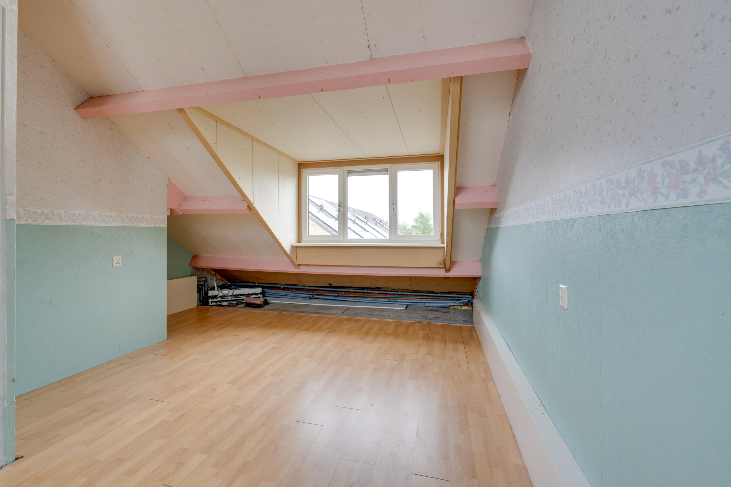 Enkele treden hoger bevinden zich de tweede en derde slaapkamer aan de achterzijde…en weer enkele treden hoger is dan de extra grote zolder-slaapkamer, voorzien van een brede dakkapel aan de voorzijde en een opvallend hoog plafond met de nok in het zicht. In deze zeer ruime slaapkamer is tevens de wasmachine- en drogeraansluiting te vinden.