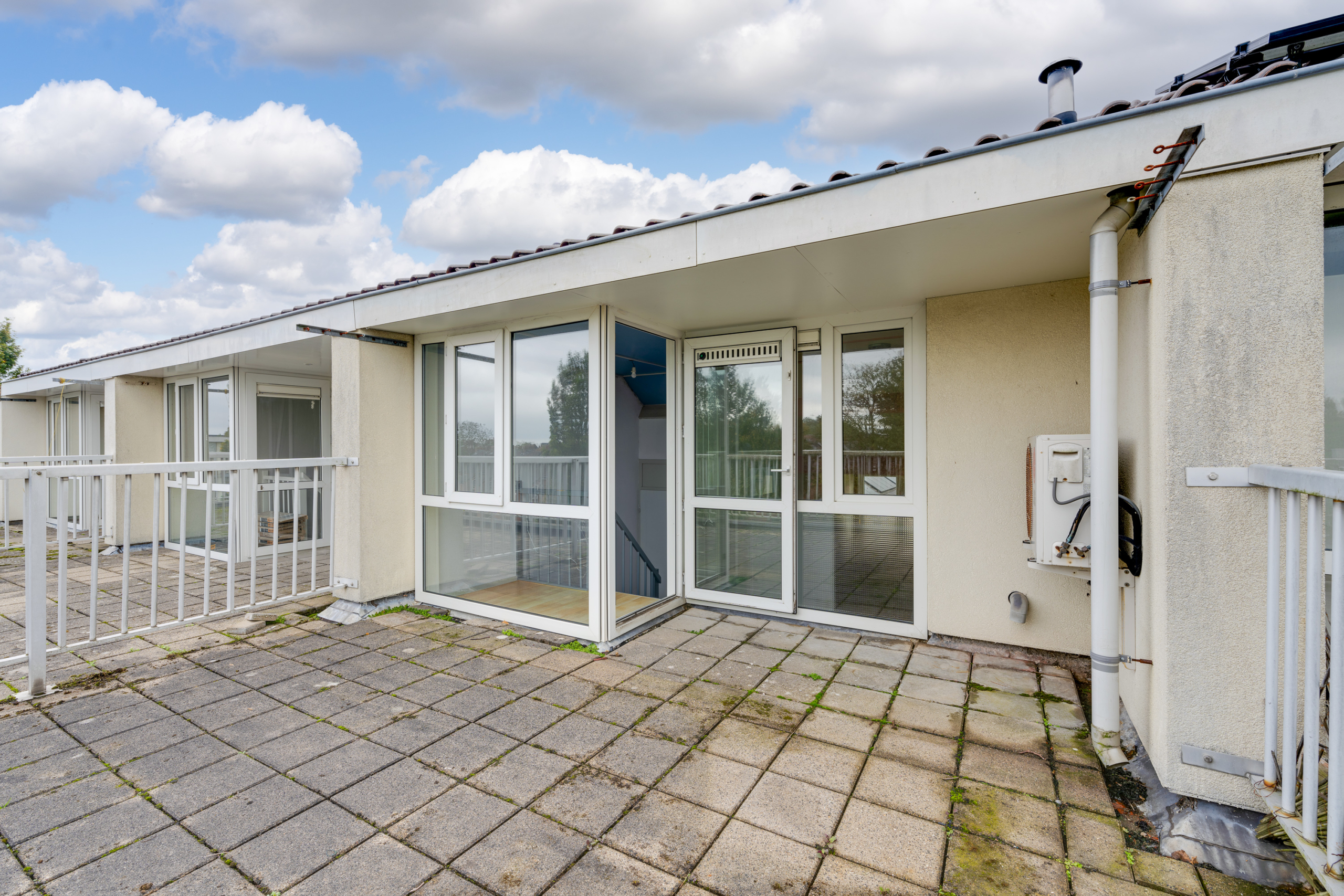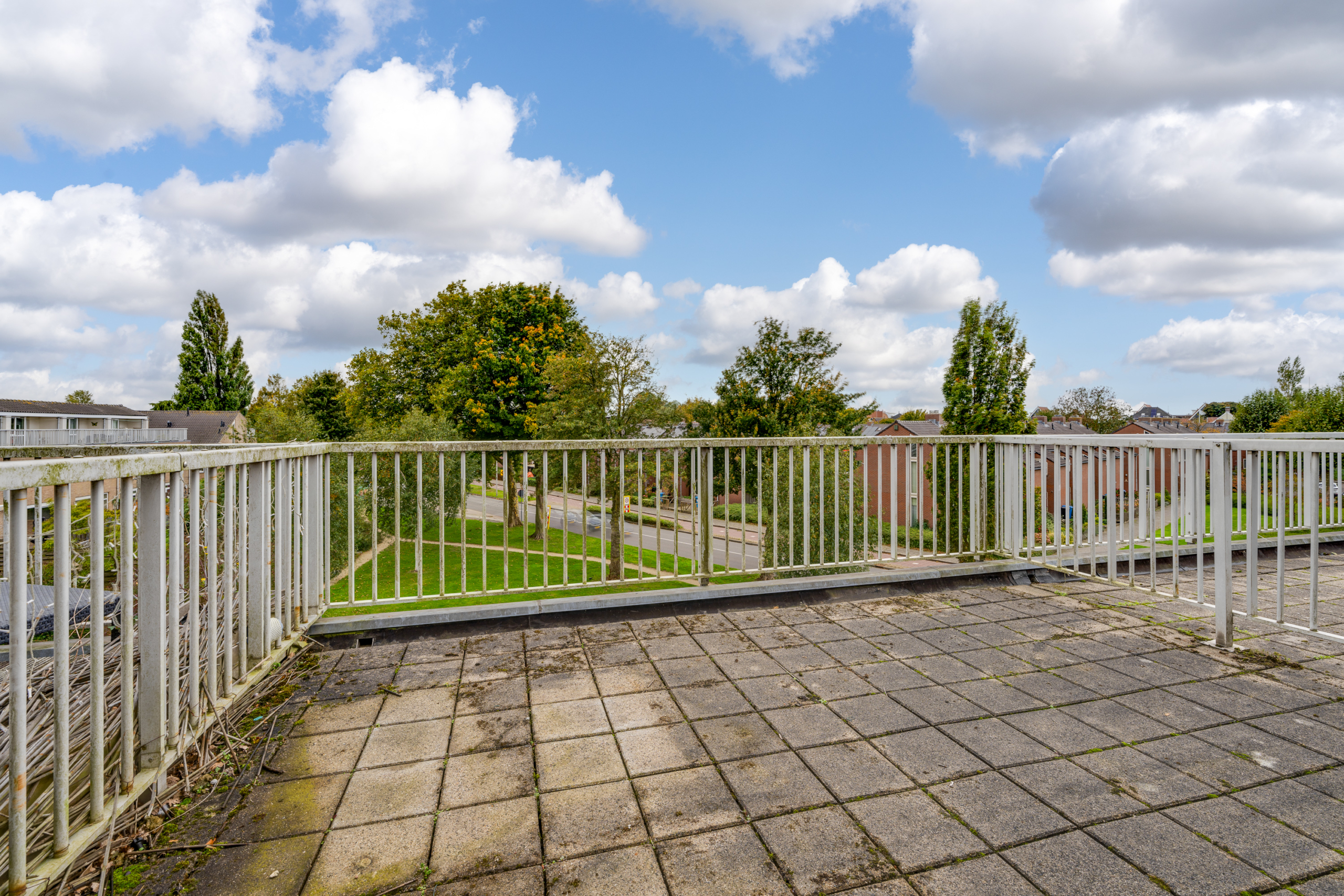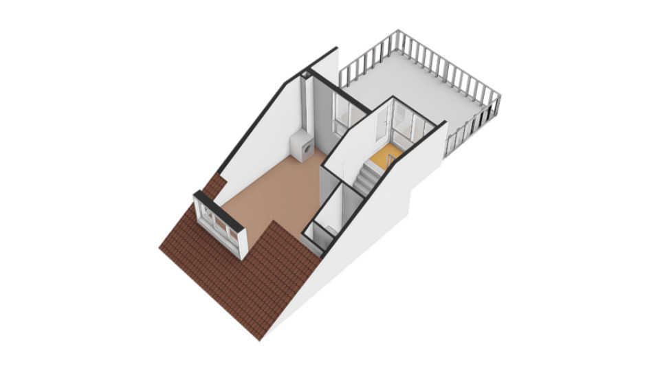 Tot slot brengen enkele treden je tot het ruime dakterras; door de ligging op het zuidwesten, belooft dit een fijne plek te zijn voor zomerse dagen en avonden met mooie zonsondergangen.