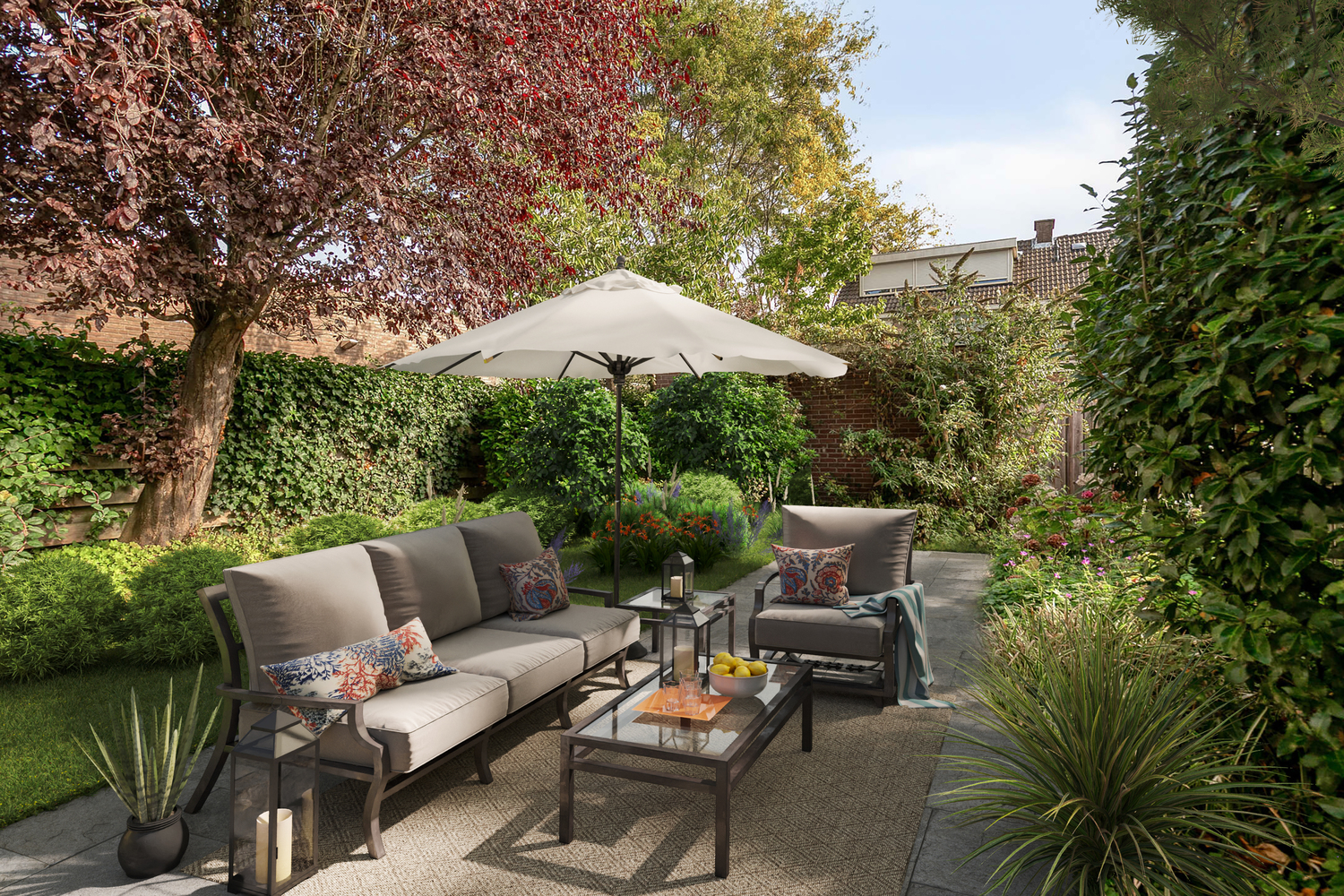 De woning beschikt zowel aan de voor- als achterzijde over een groene tuin. Deze behoeft onderhoud en kan geheel naar eigen smaak worden ingericht en gemoderniseerd. Achter in de tuin bevindt zich een grote stenen berging van circa 10 m².