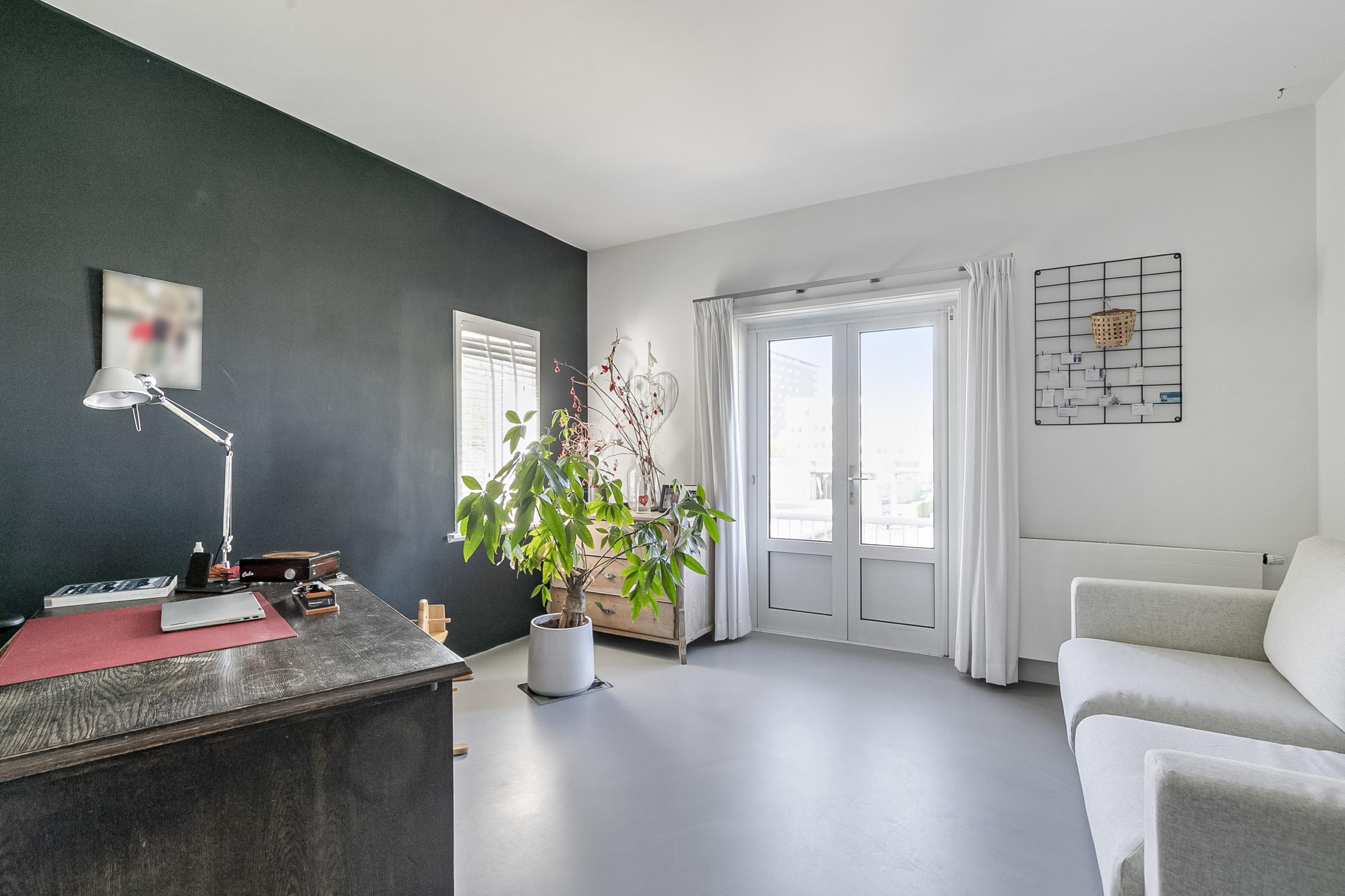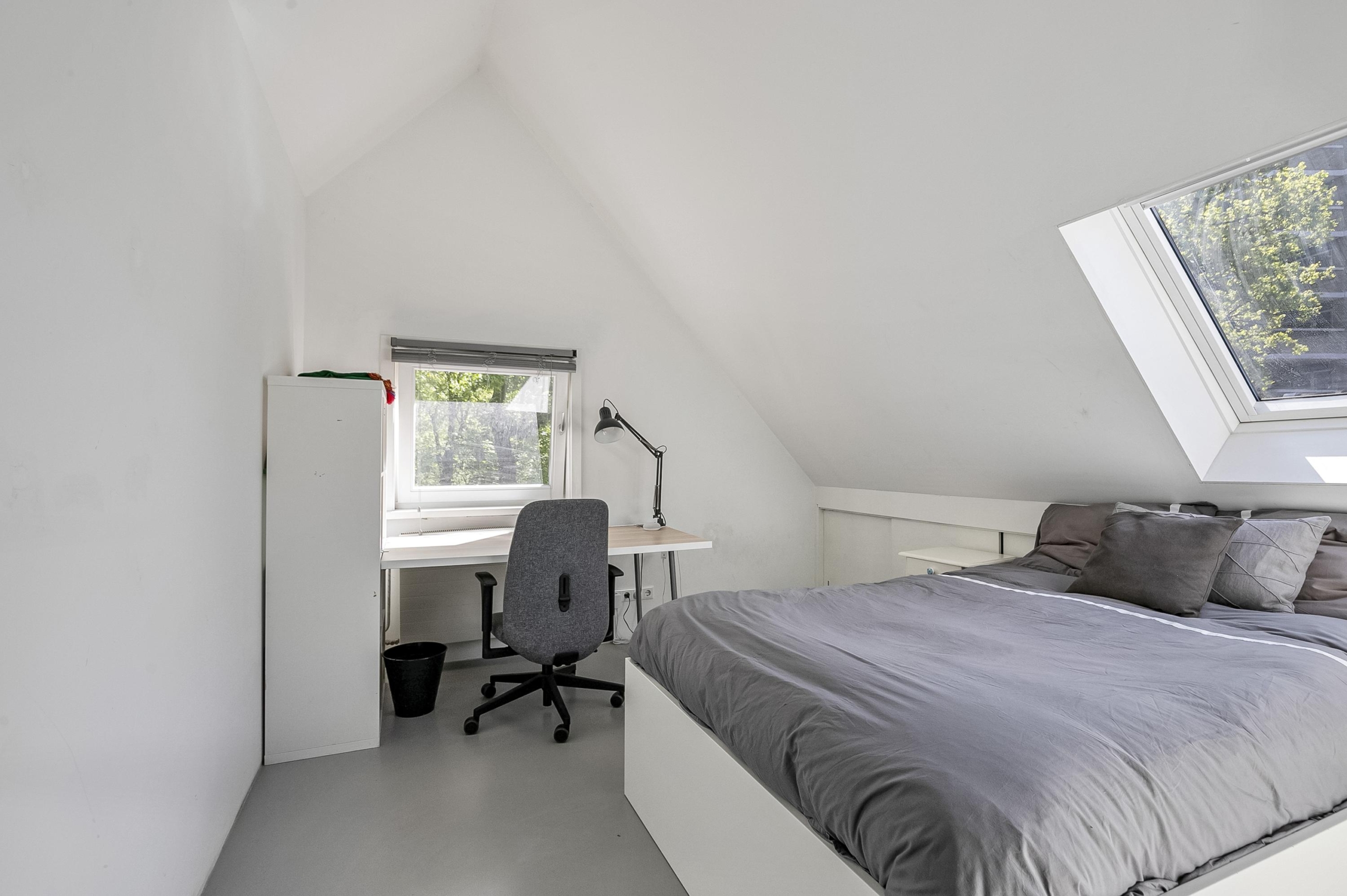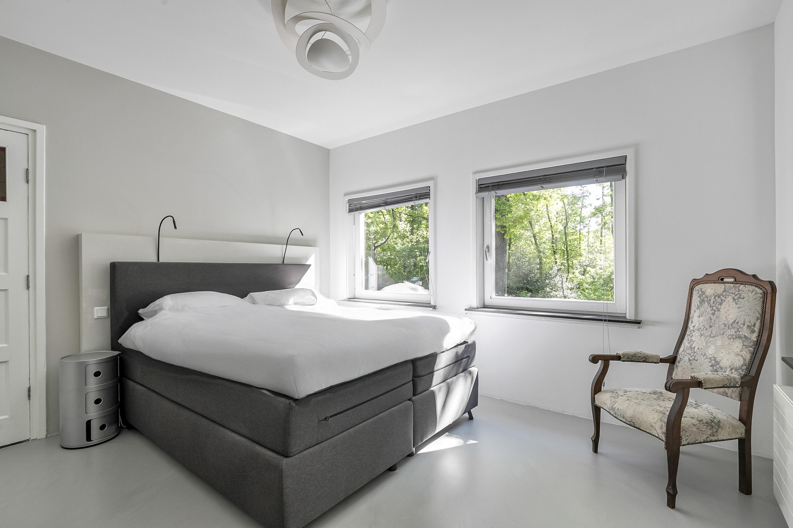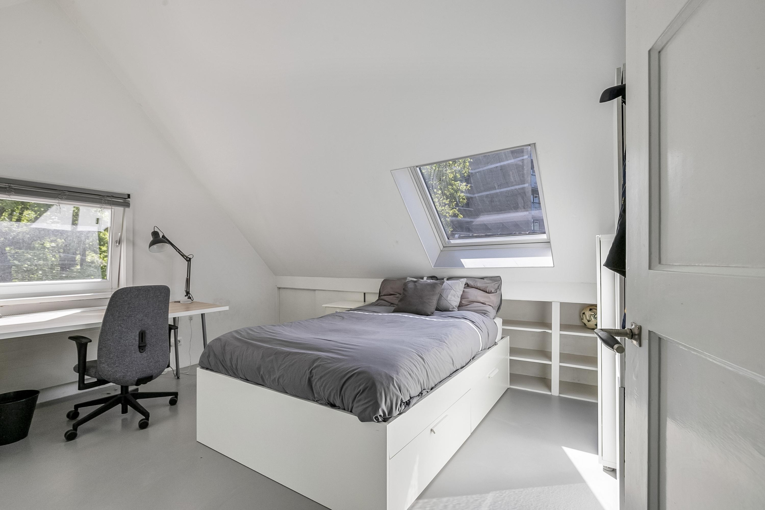 Bij binnenkomst kom je in een verzorgde hal met meterkast, modern toilet met fonteintje, en toegang tot de kelder. De keuken is in 2020 volledig vernieuwd en voorzien van moderne inbouwapparatuur. Aan de voorzijde van de woning bevindt zich de sfeervolle woonkamer met karakteristieke erker, die zorgt voor veel lichtinval en een prettig uitzicht op het groen. Aan de achterzijde geven openslaande deuren toegang tot de zonnige tuin op het westen – ideaal om binnen en buiten met elkaar te verbinden tijdens warme dagen.