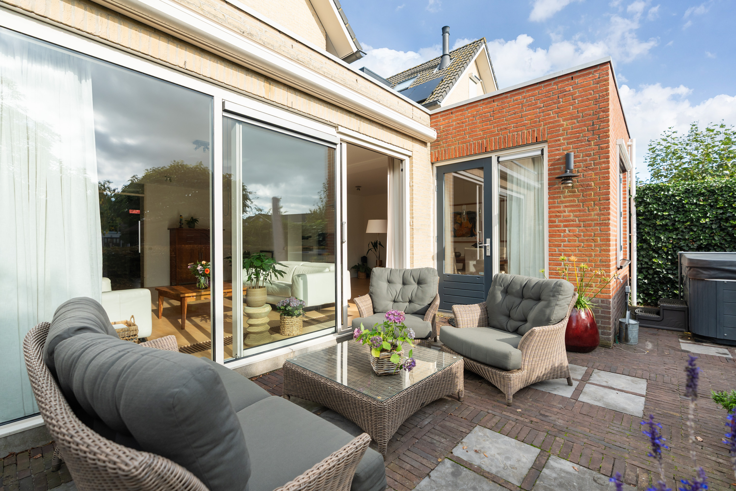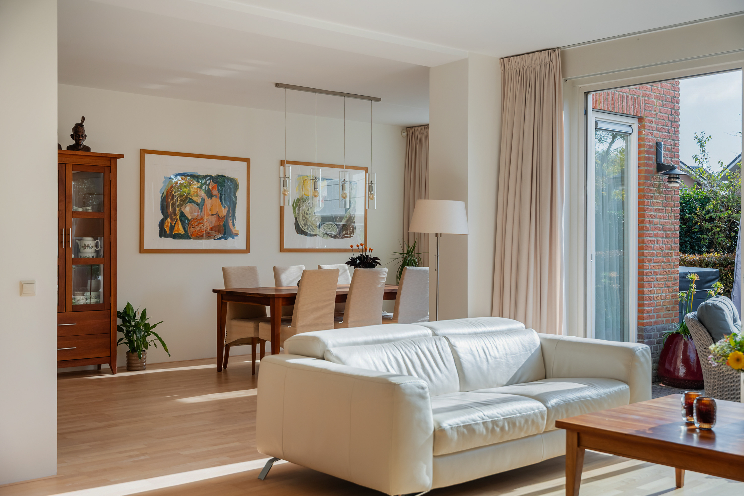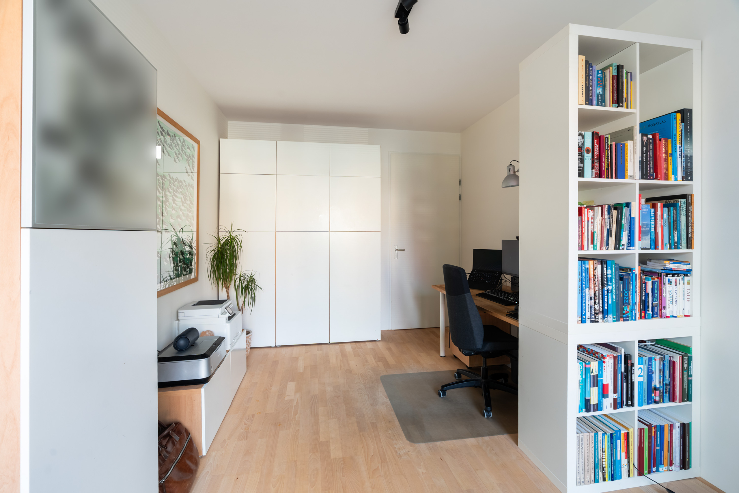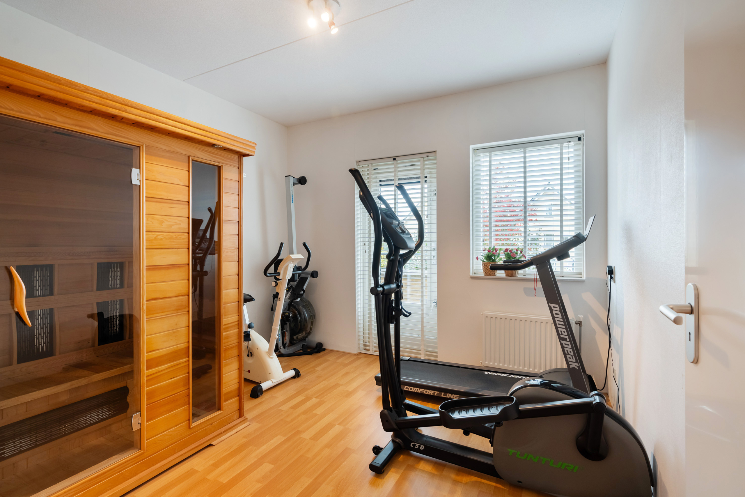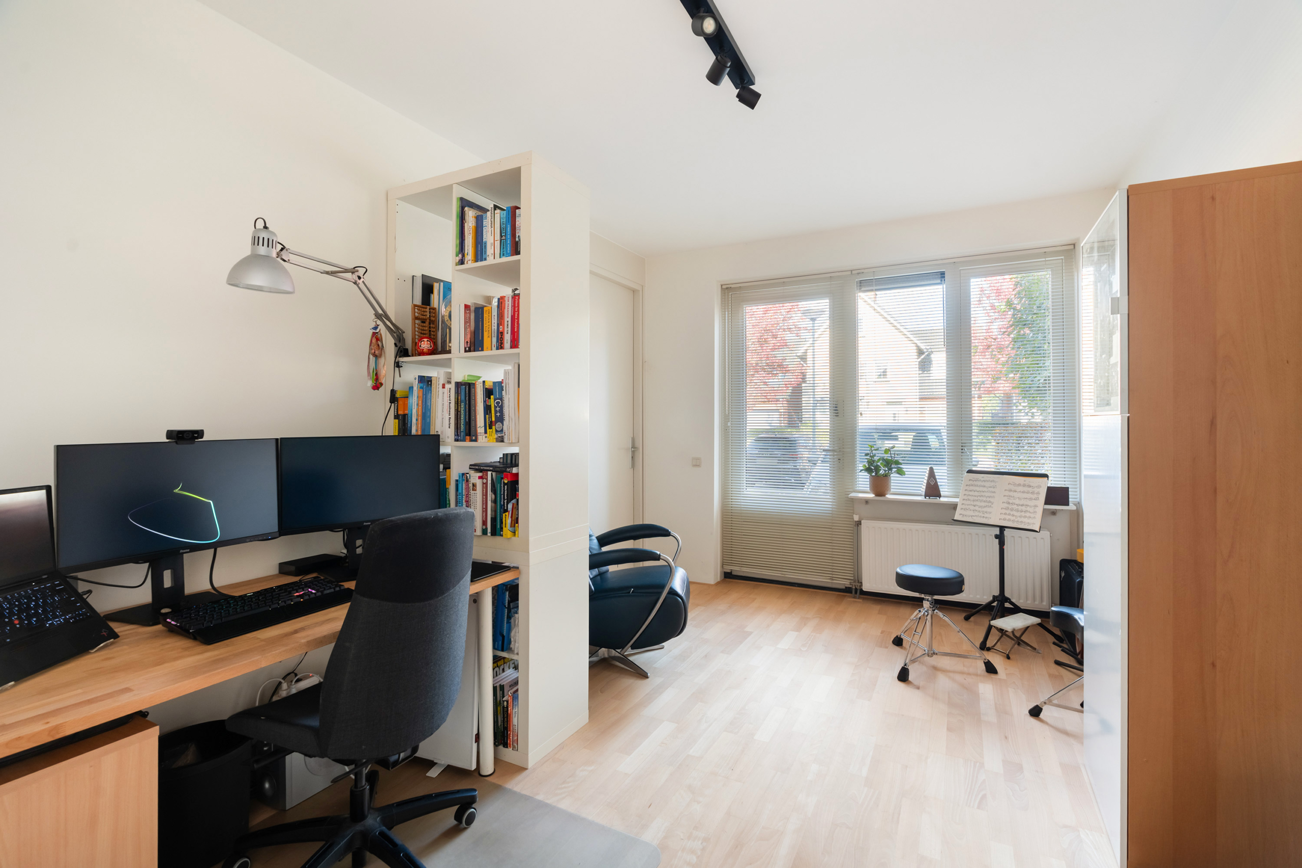 De voormalige garage is bij de woning betrokken en ingericht als multifunctionele extra kamer, geschikt voor diverse doeleinden zoals werken aan huis of gelijkvloers wonen.