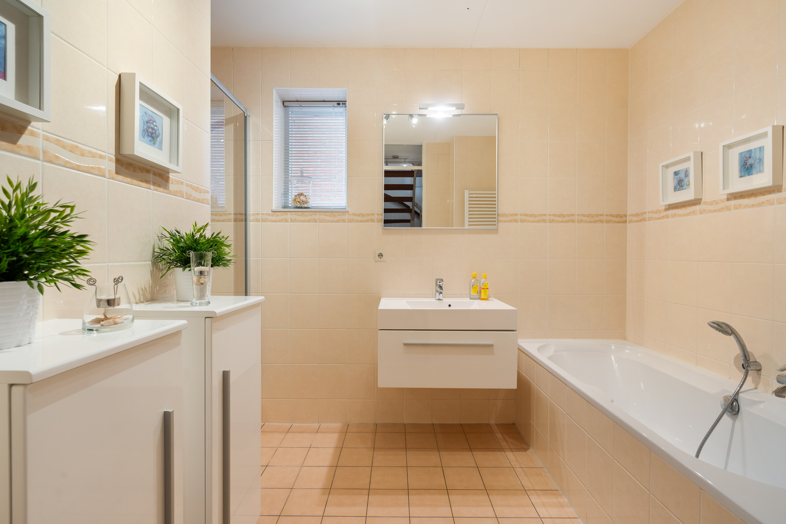 De tweede badkamer is voorzien van vloerverwarming, een ligbad, douchecabine en wastafelmeubel. Tevens is er een separaat tweede toilet aanwezig.