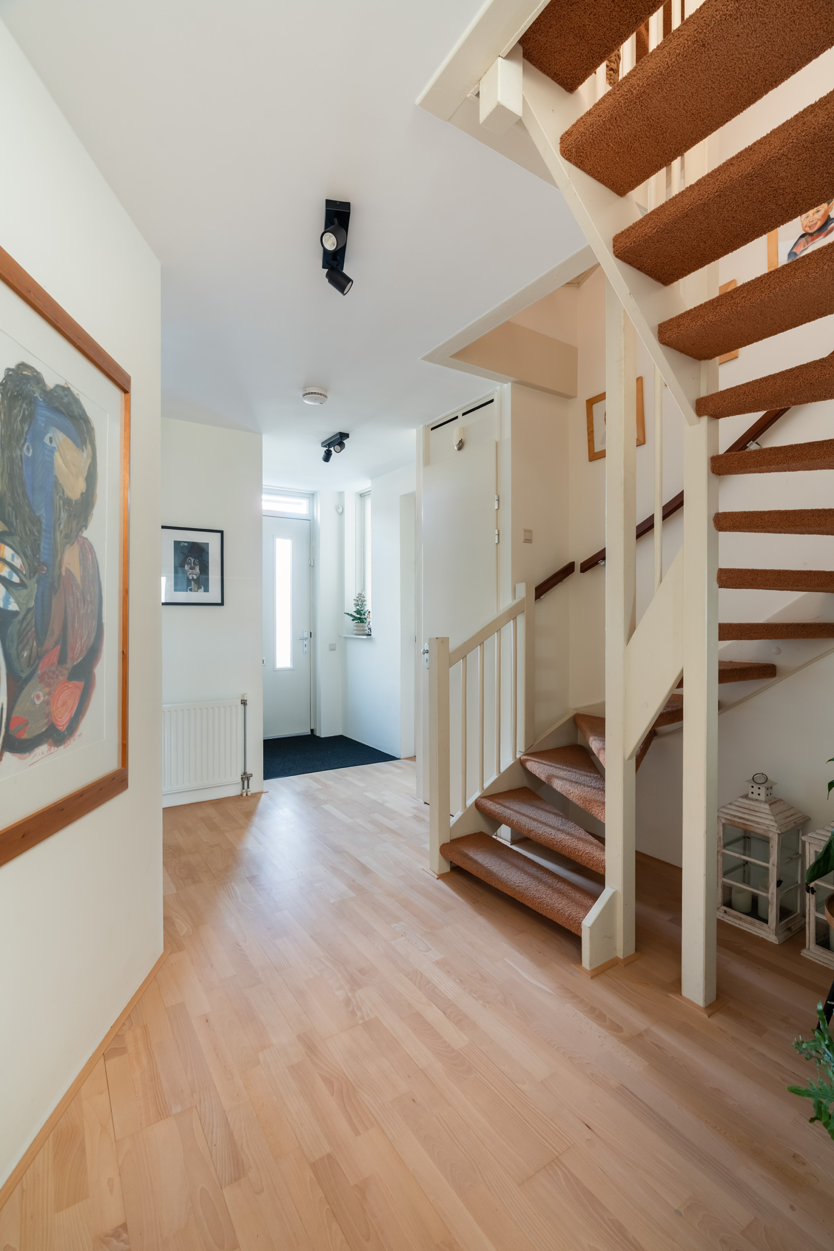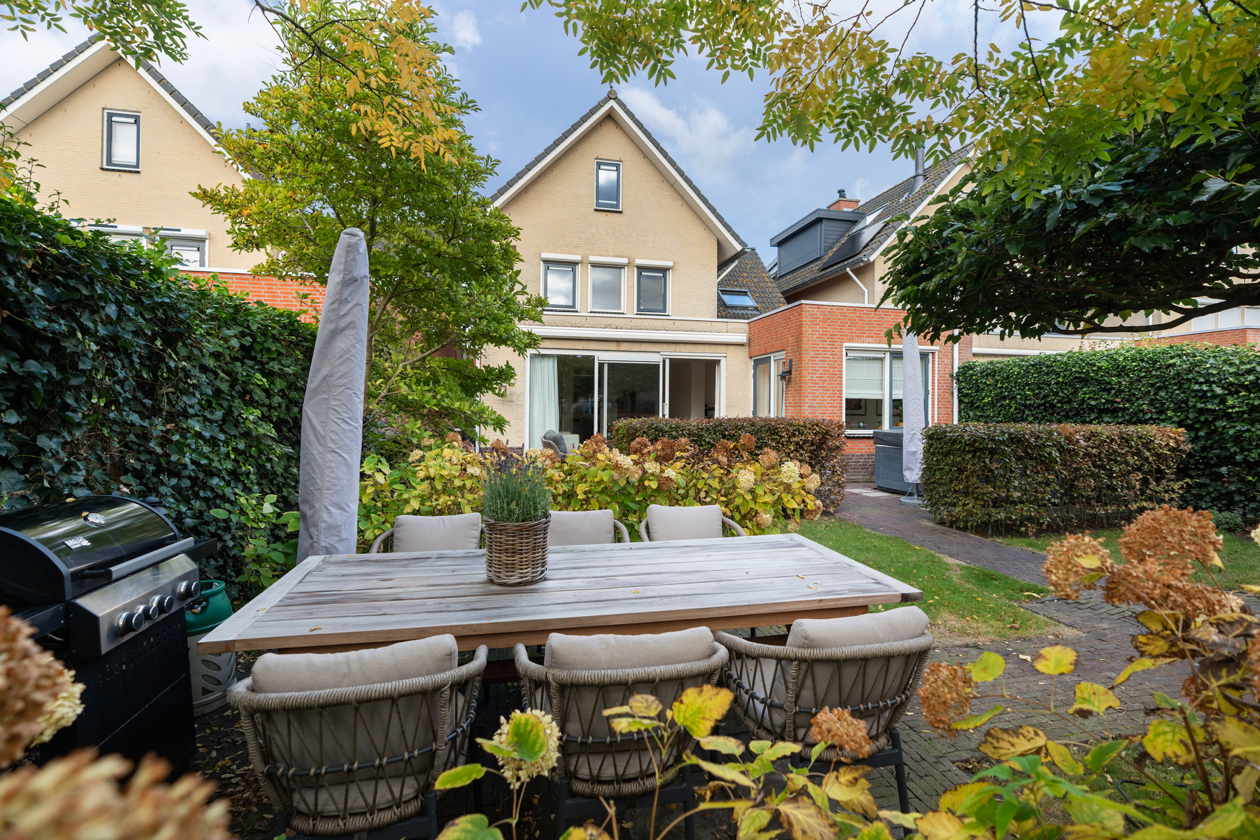 Daarnaast beschikt de woning over een praktische bijkeuken met extra bergruimte en een separate garderobe, netjes aan het zicht onttrokken.