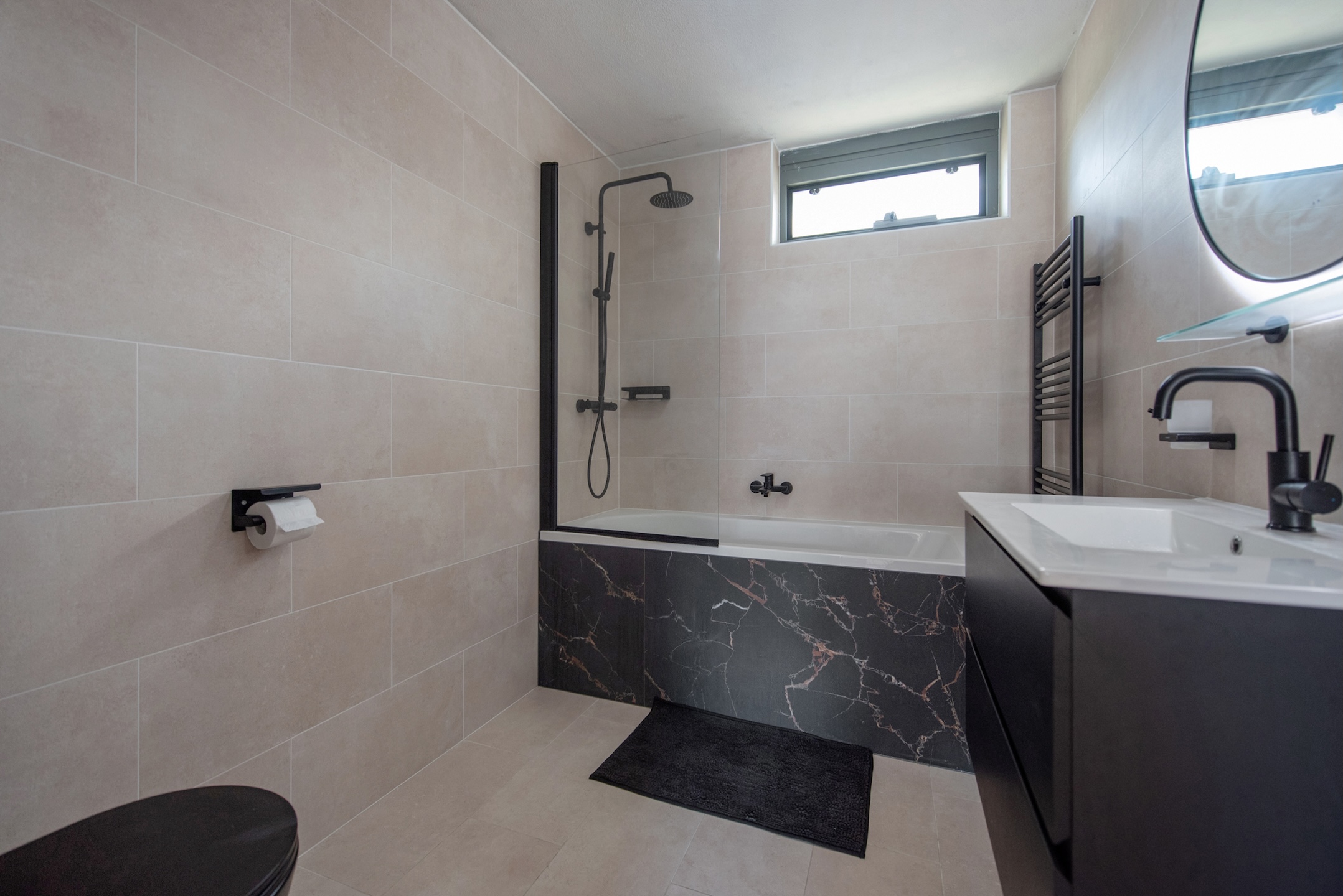 De woning beschikt over twee ruime slaapkamers (één die naar wens eenvoudig kan worden omgevormd tot twee aparte slaapkamers) en een extra kamer op de tweede verdieping. De elegante badkamer met douche, ligbad biedt een oase van rust in neutrale, goed onderhouden stijl.