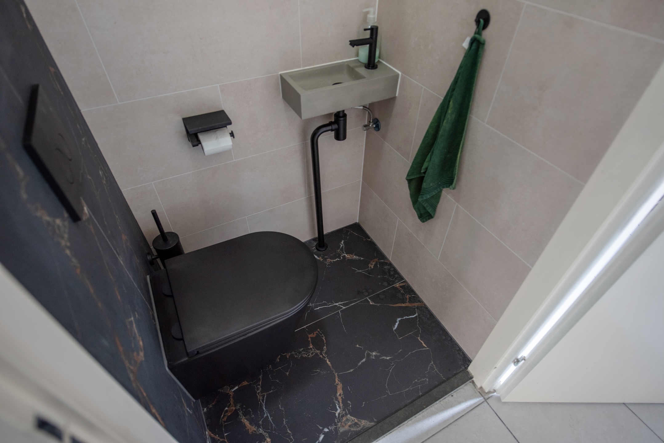 Vanaf de verzorgde voortuin betreedt u een royale hal die leidt naar een sfeervolle, lichte woon-/eetkamer met moderne plavuizenvloer en een handige opbergkast. De moderne open keuken, in een strakke licht-donkere kleurcombinatie met hoogglans afwerking en hardstenen aanrechtblad, is uitgerust met alle inbouwapparatuur die uw culinaire hart sneller doet kloppen.