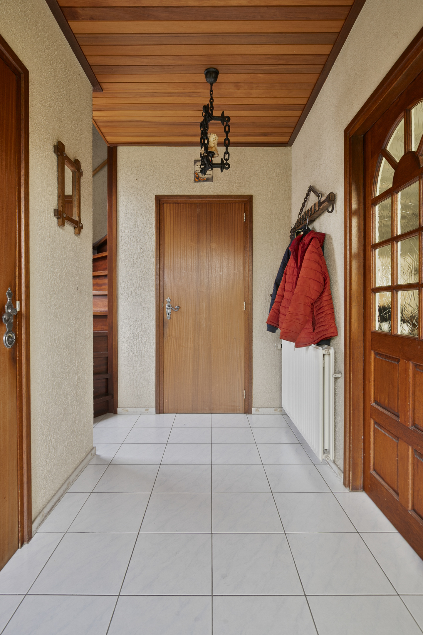 De hal is voorzien van een toilet met fonteintje, trapopgang naar de 1e verdieping en een deur naar woonkamer. Tevens bevindt zich hier een kelder en de meterkast. De hal is net zoals de gehele begane grond voorzien van vloerverwarming.