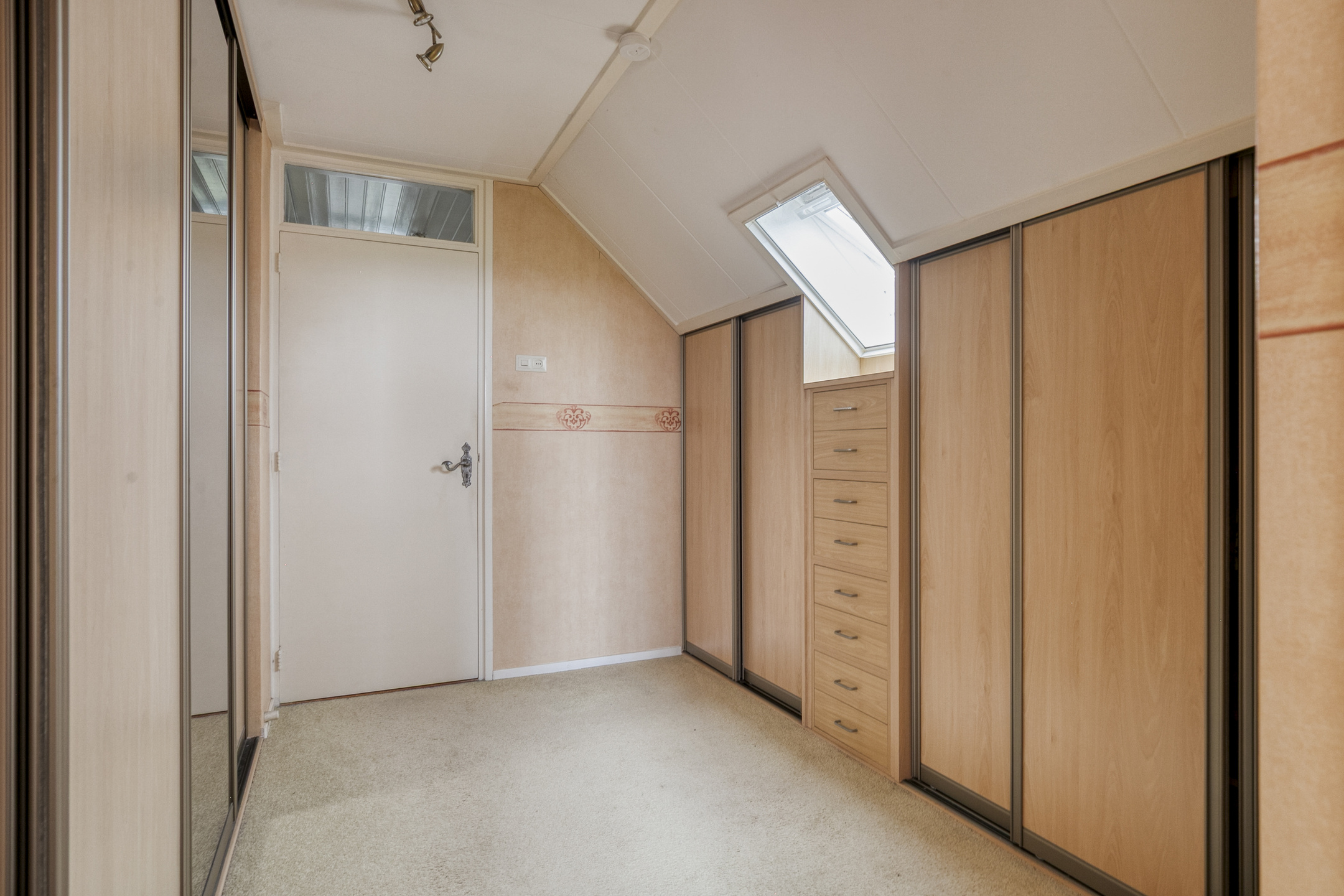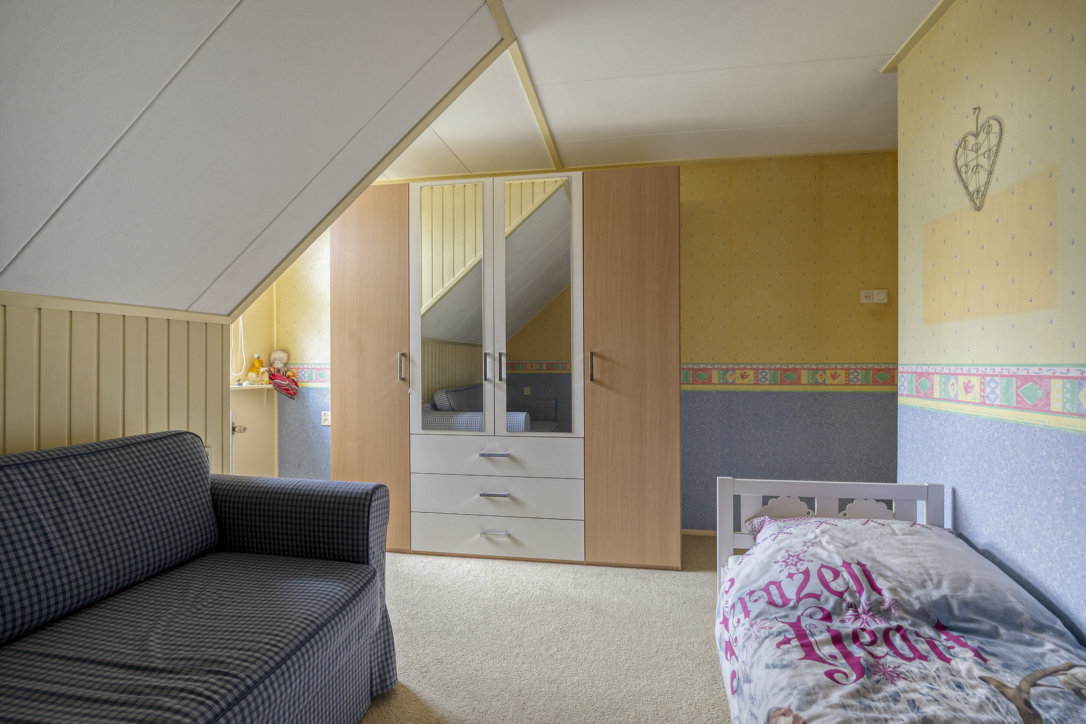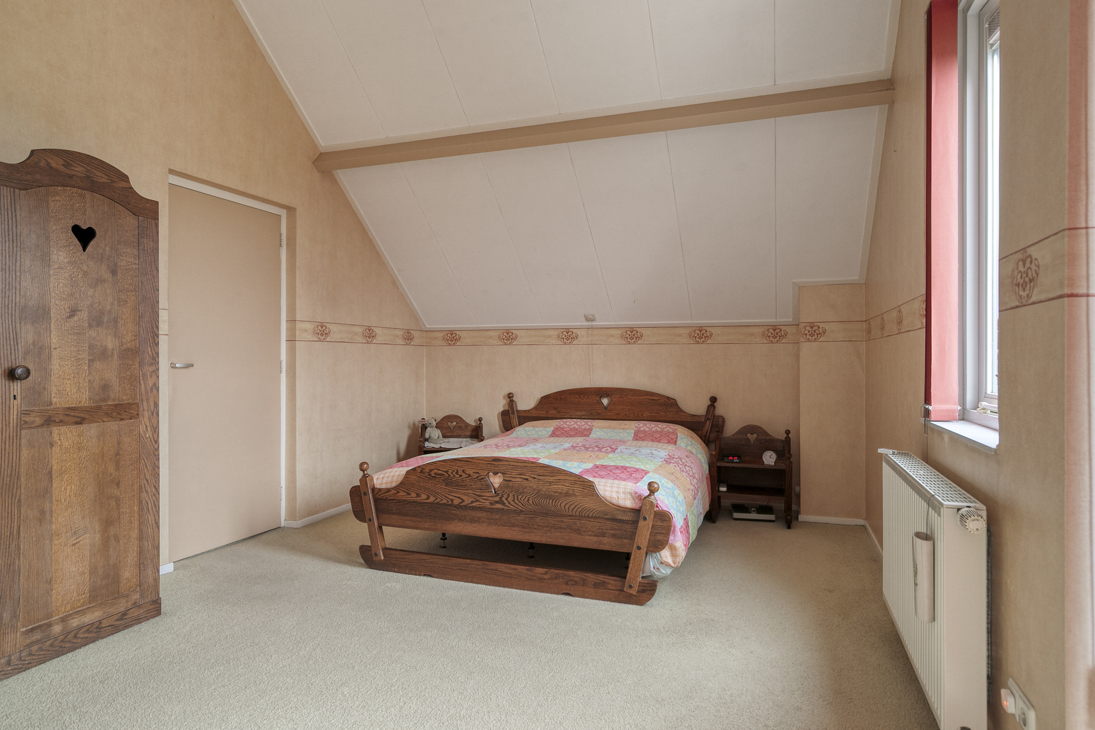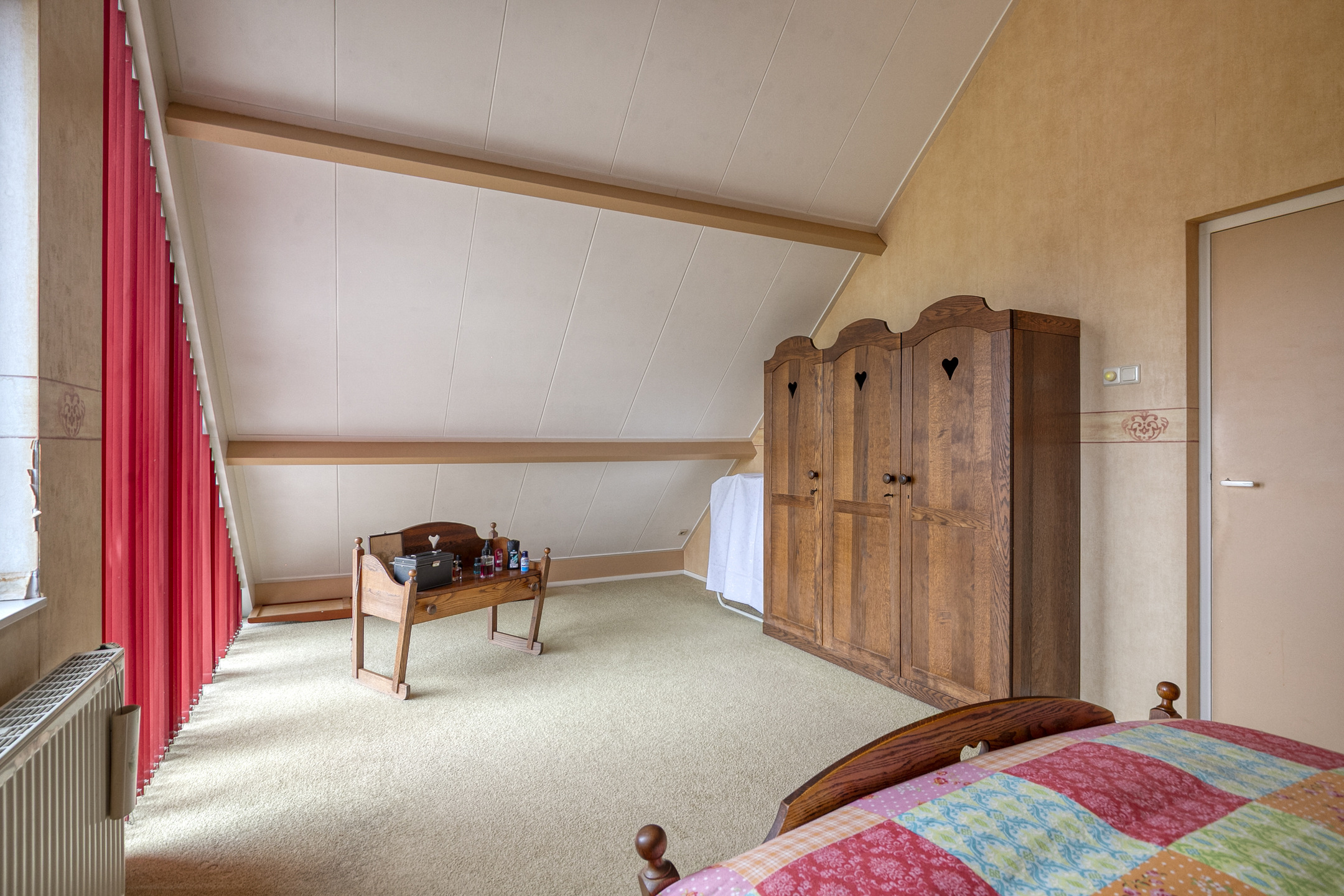 Slaapkamer 1: Via een kleedruimte met meerdere inbouwkasten bereikt u de ruime (master) slaapkamer. Door de verschillende raampartijen heeft u een fantastisch uitzicht over de weilanden.