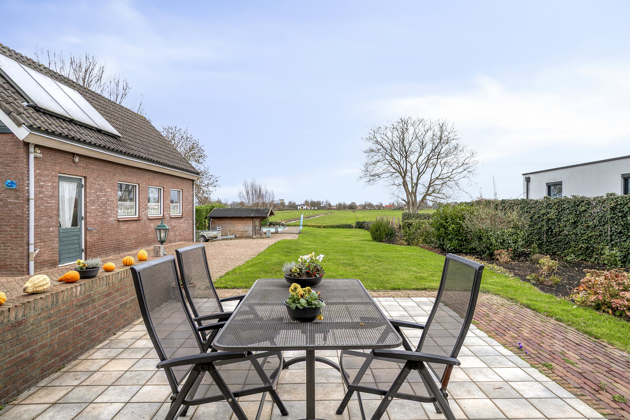 Rondom de woning ligt de royale tuin van maar liefst 1.855 m², waar je volop kunt genieten van rust, ruimte en privacy, altijd zon maar ook schaduw. Aan de achterzijde van de woning bevindt zich een onderheid terras en uitgebreid zicht over de weilanden. Aan de voorzijde vrij uitzicht over de rivier de Lange Linschoten. De tuin strekt zich verder uit rondom de woning.