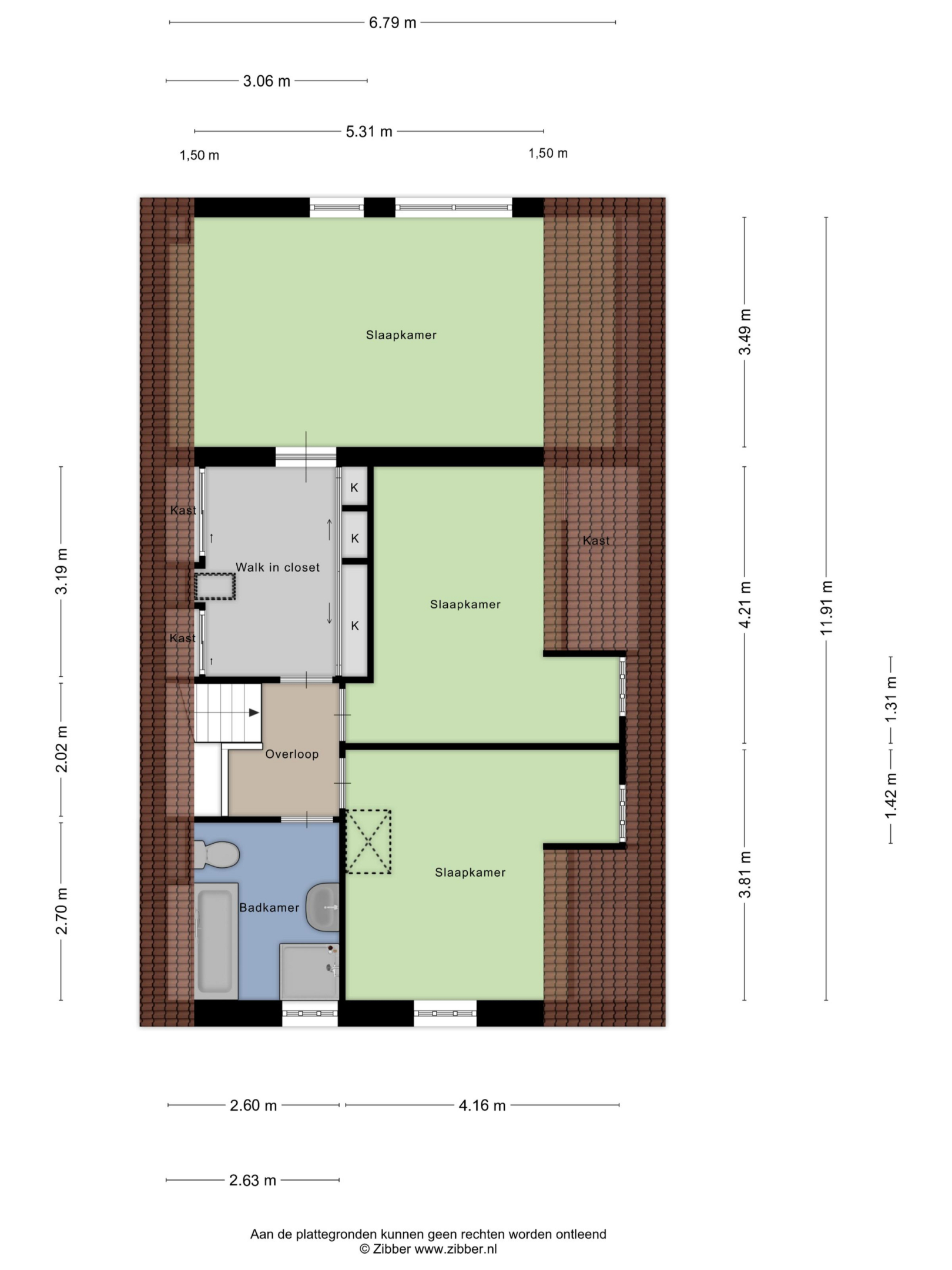 Slaapkamer 2: Deze slaapkamer bevindt zich aan de zijkant van de woning en is voorzien van een raam en radiator.