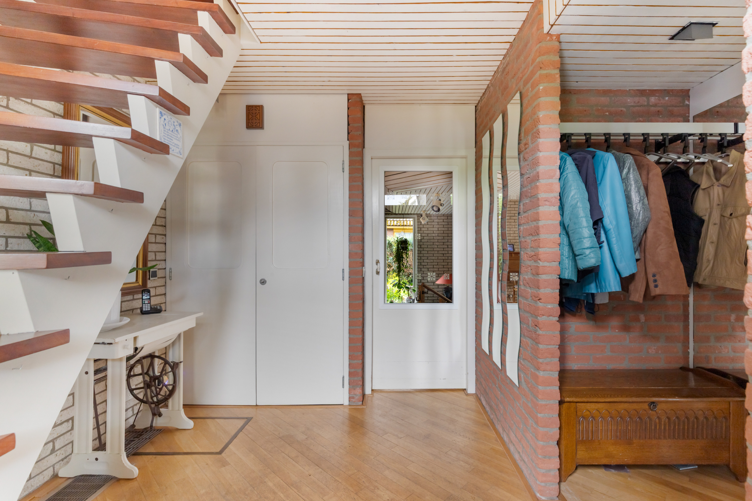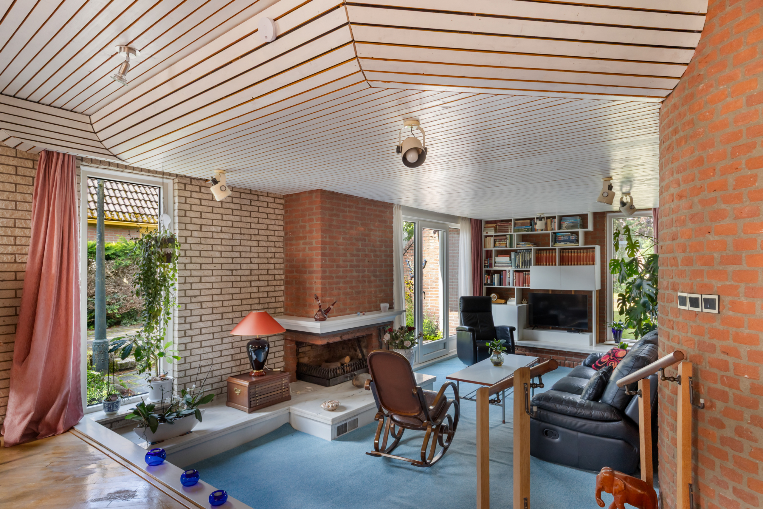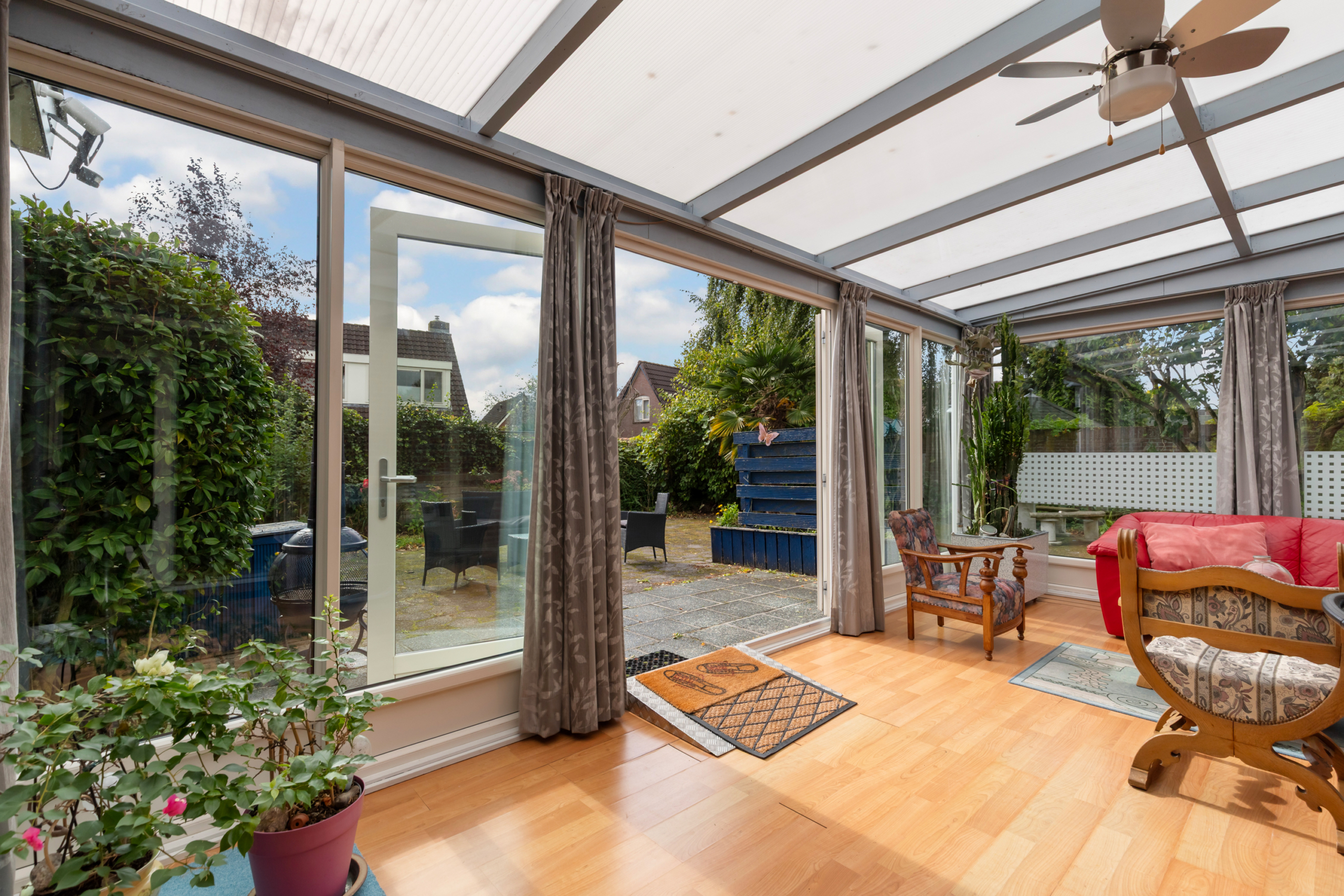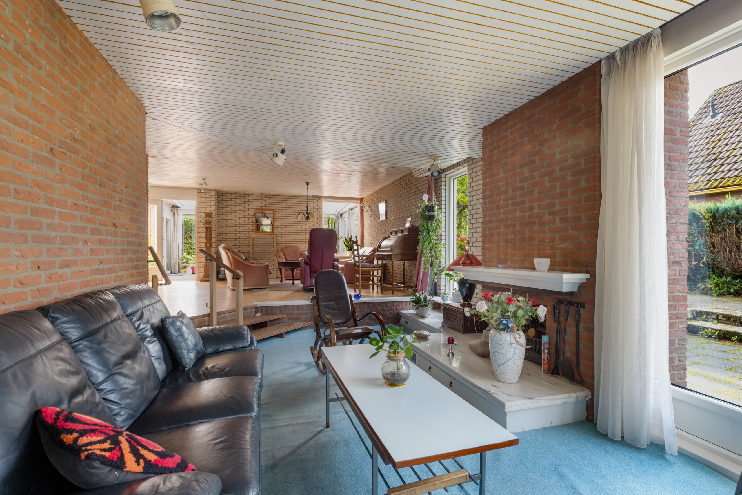 Begane grond – ruime entree/hal met trapopgang en toilet en doorgang naar de slaapkamer met badkamer beneden. Door de andere deur kom je in de royale woonkamer met een eiken parketvloer en een gezellige zitkuil met daarin de fraaie openhaard met marmeren schouw en een openslaande deur naar de tuin. Aan de achterzijde van de woning is de dichte keuken gesitueerd. Hierin een moderne inbouwkeuken (2018) in hoekopstelling met diverse inbouwapparatuur. Tevens hiervandaan de doorgang naar de garage/berging en de ruime serre. De serre is gemaakt van hout met kunststof kozijnen en voorzien van een vaste vloer en verwarming; een heerlijke plek om te zitten!