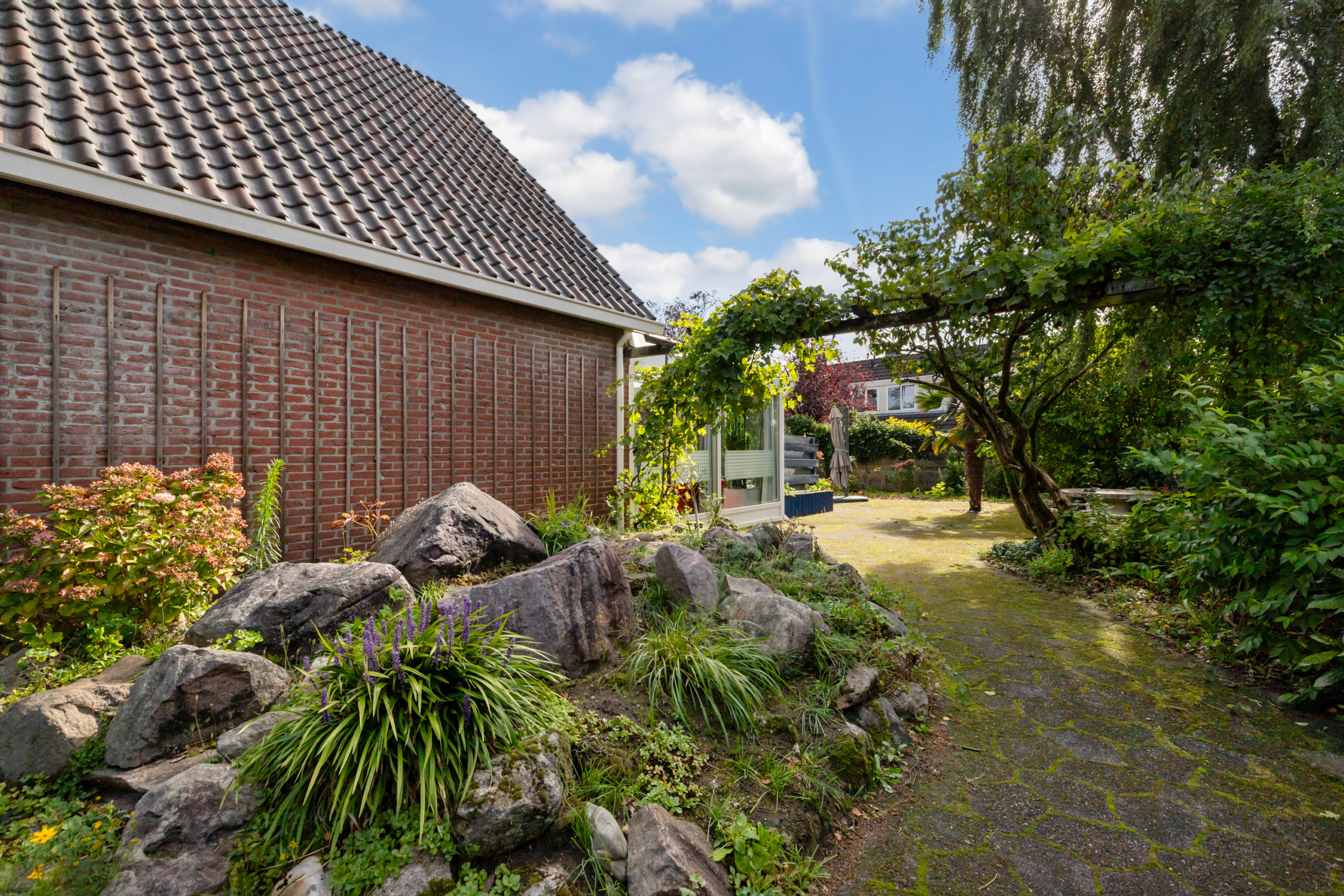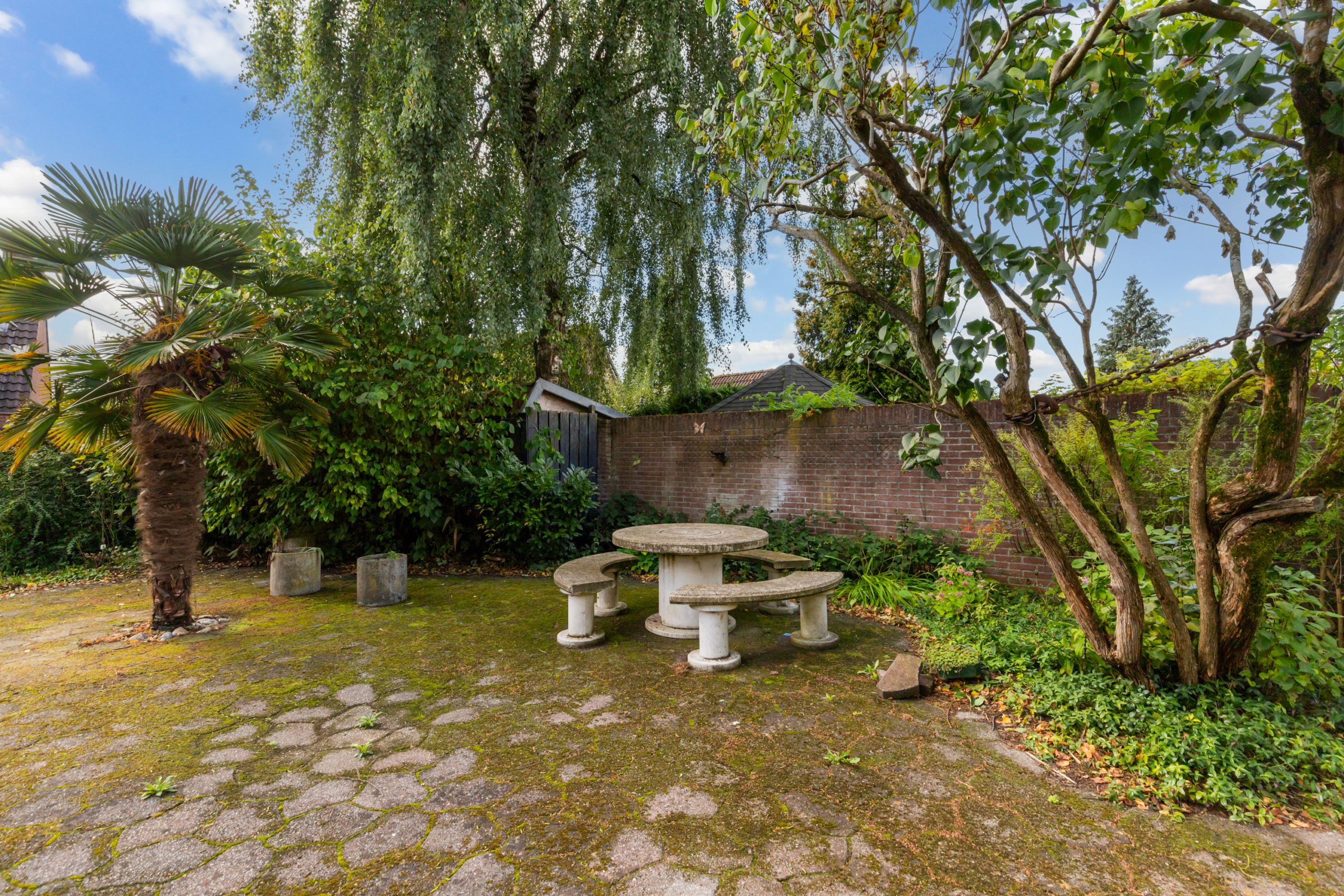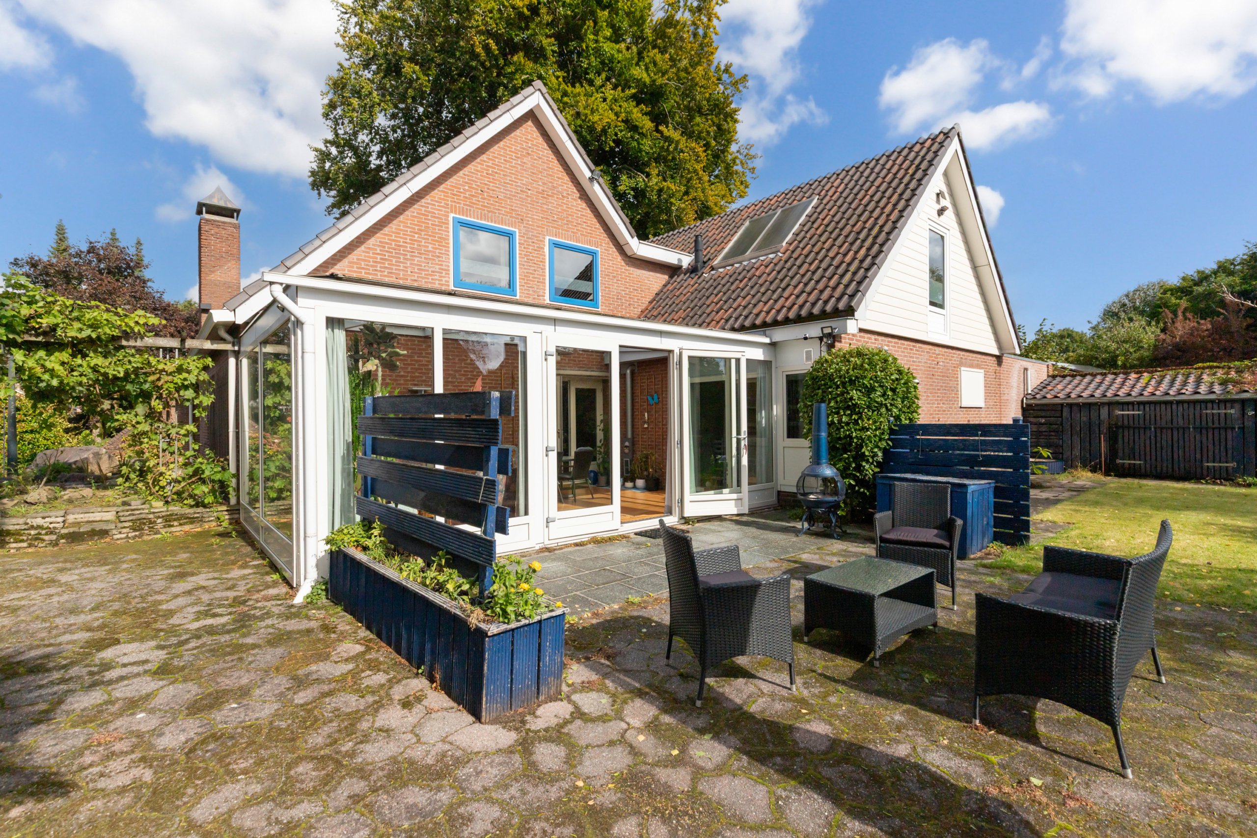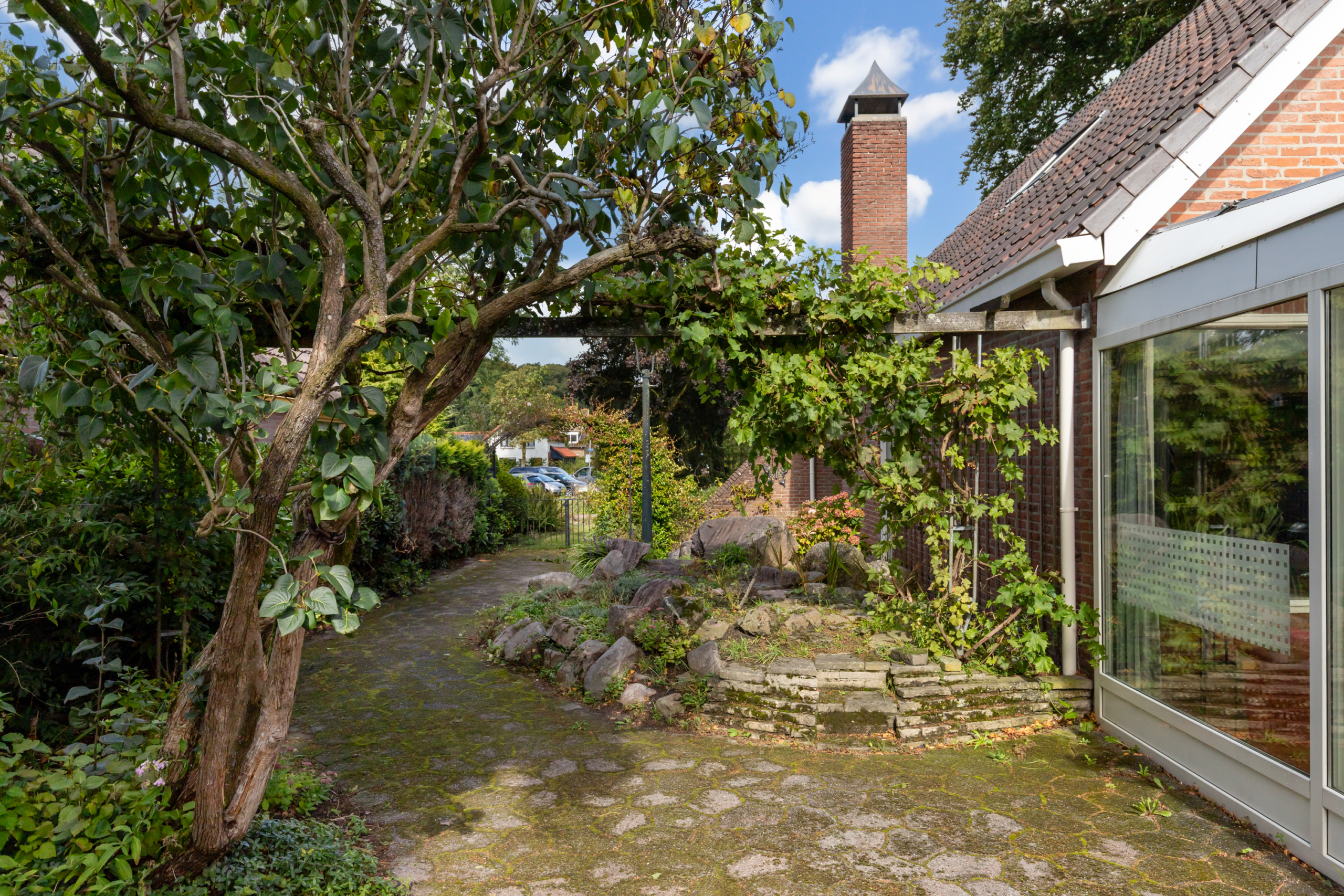 Met de garage en de enorme oprit is er voldoende plek om met meerdere auto’s op het eigen terrein te parkeren. De tuin rondom kent vele zitplekjes en groen, waardoor je op elk moment van de dag van de zon of de schaduw kan genieten.