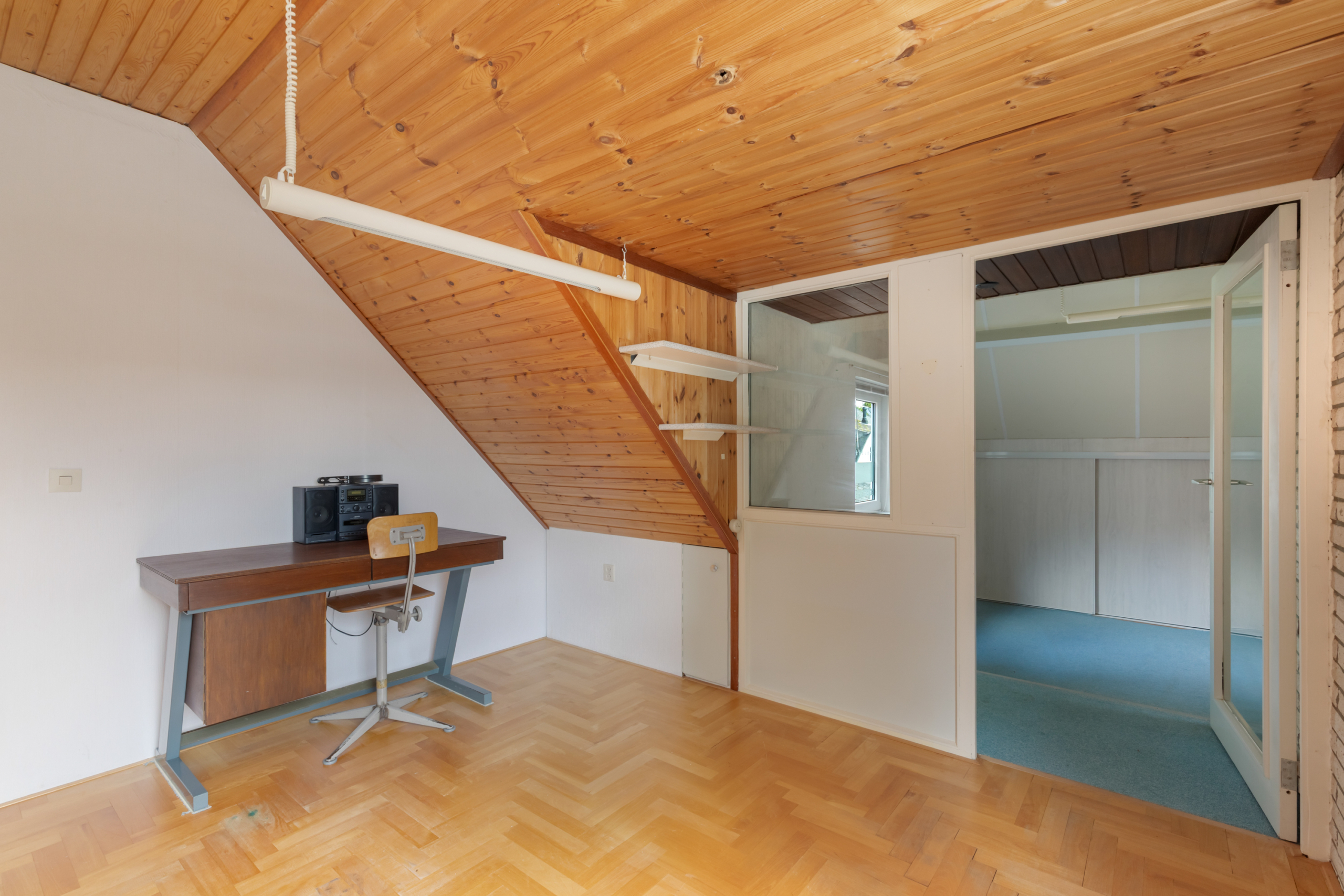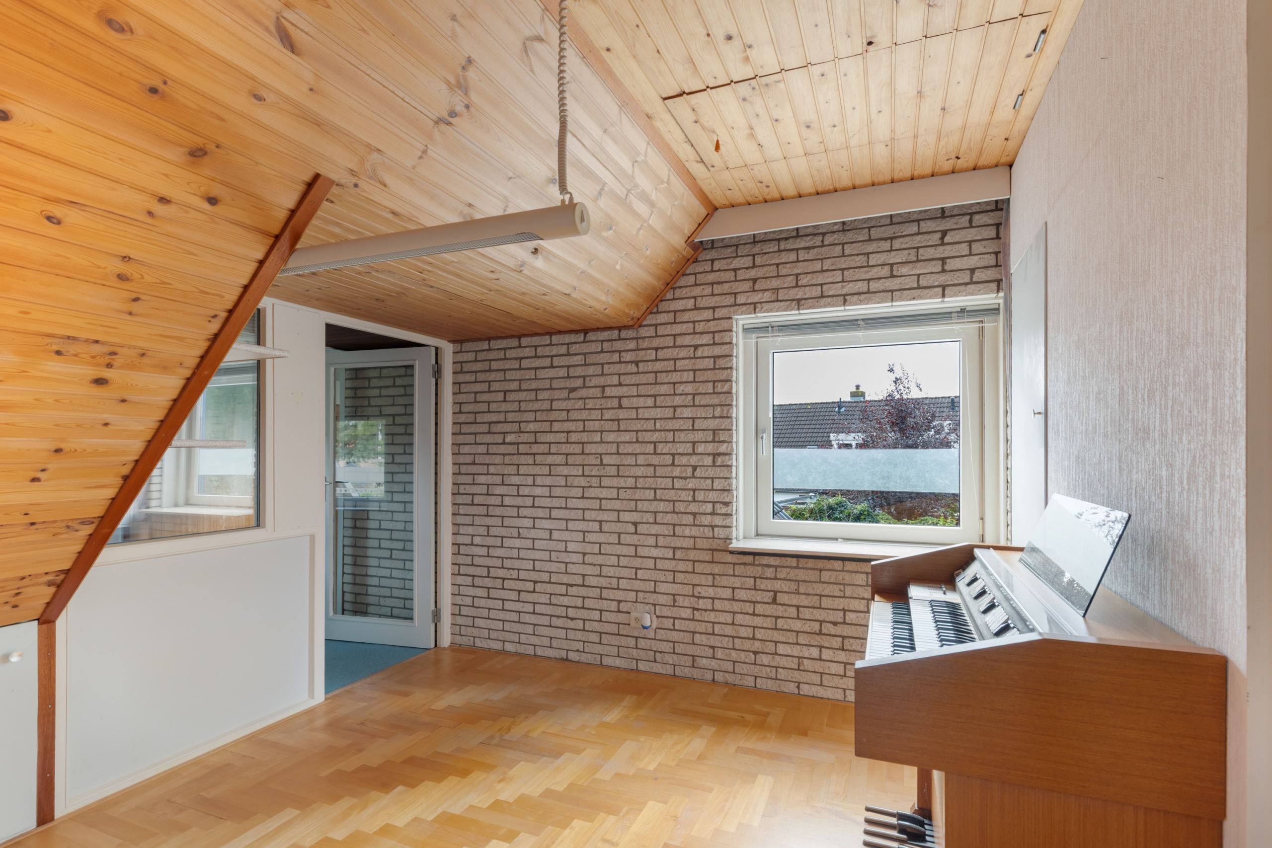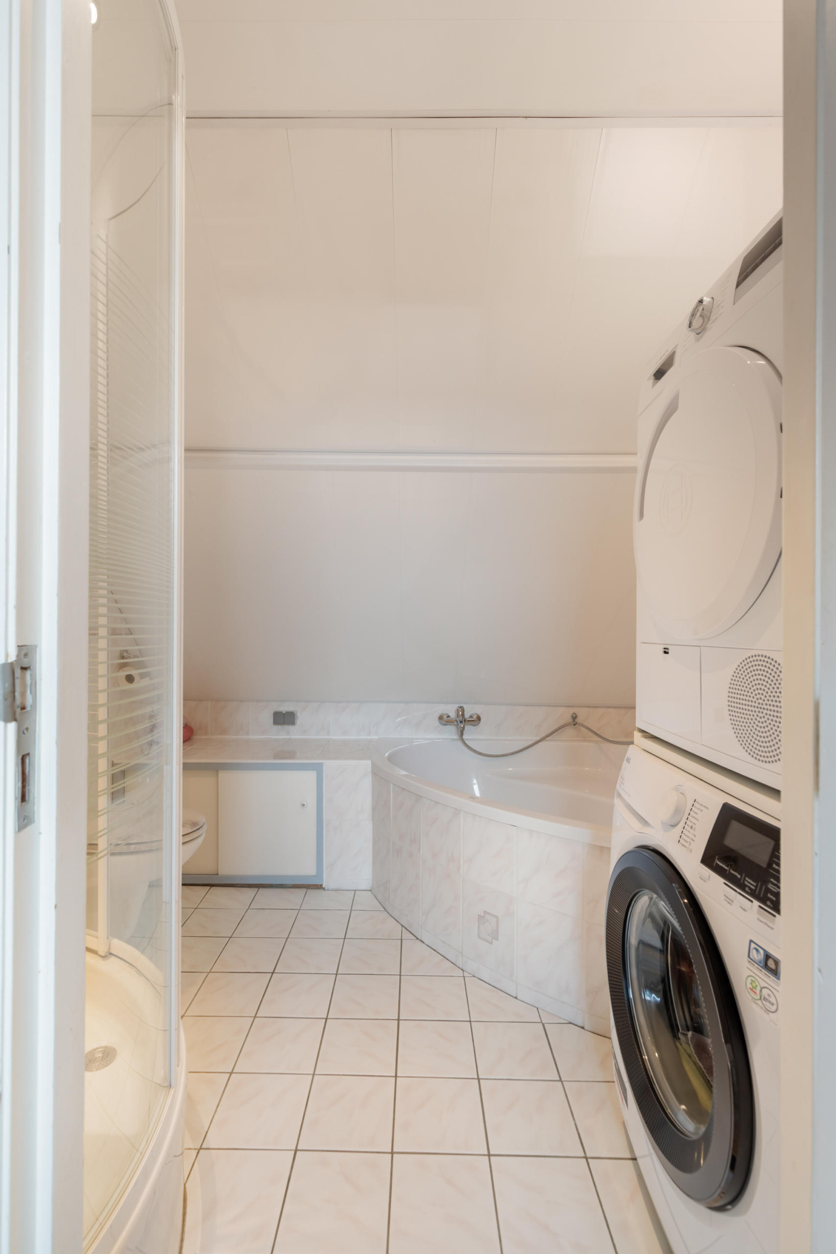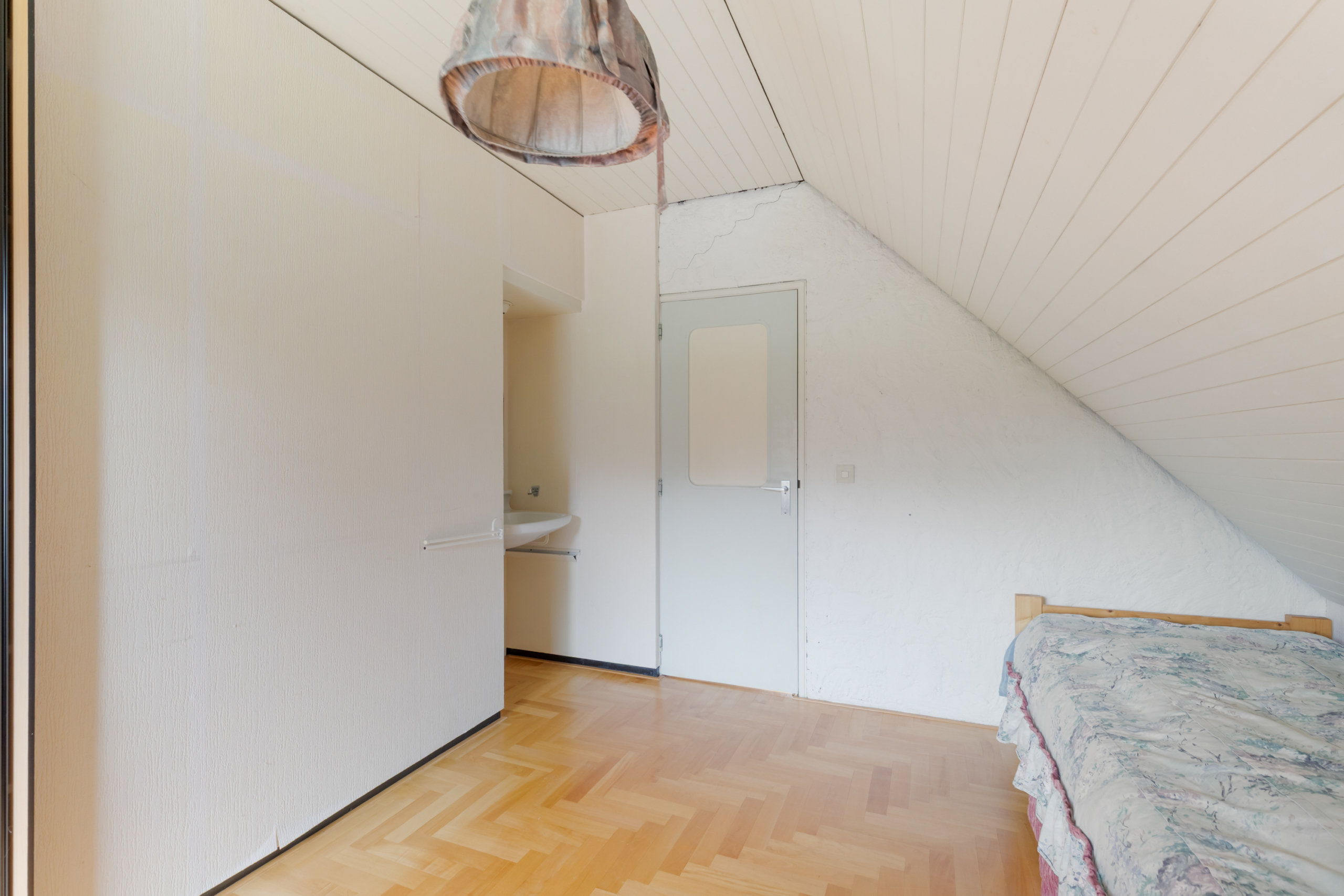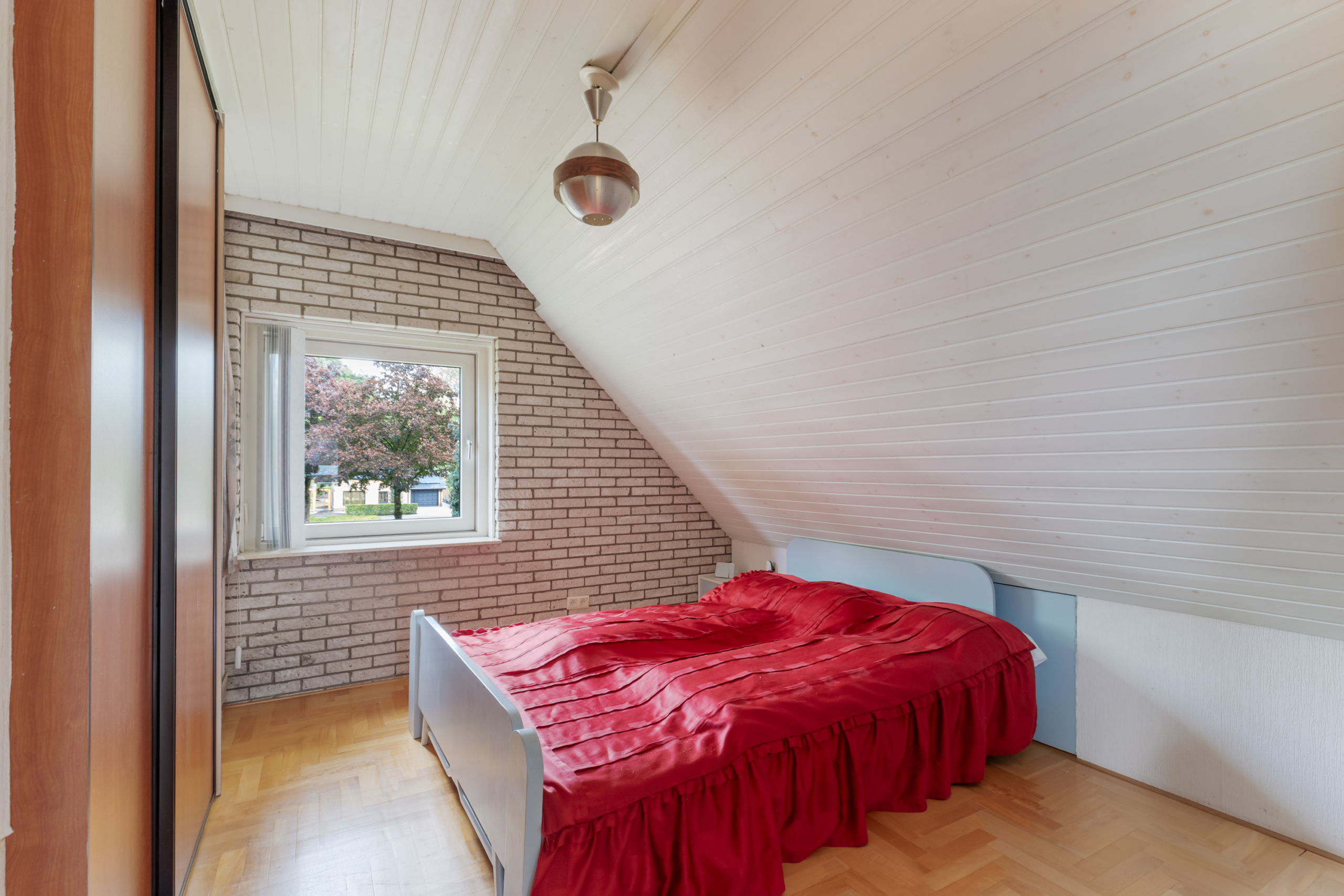 Overloop met toegang tot vier ruime slaapkamers, waarvan 3 voorzien zijn van een wastafel, en een badkamer voorzien van ligbad, douche en toilet. Tevens bevindt zich hier de wasmachine- en drogeraansluiting. Via de vierde slaapkamer heb je ook toegang tot een extra ruimte boven de garage waar zich de opgietsauna bevindt.