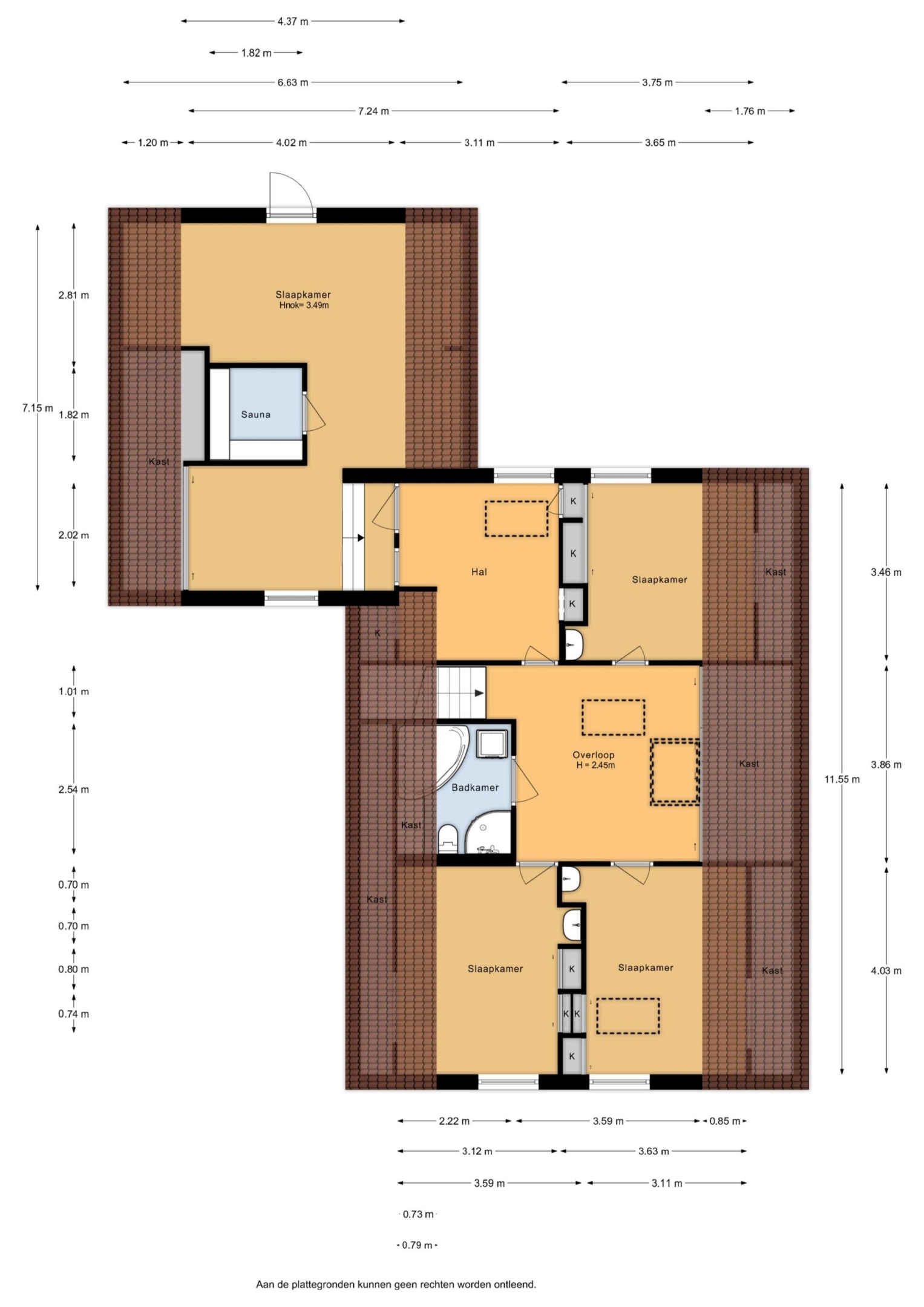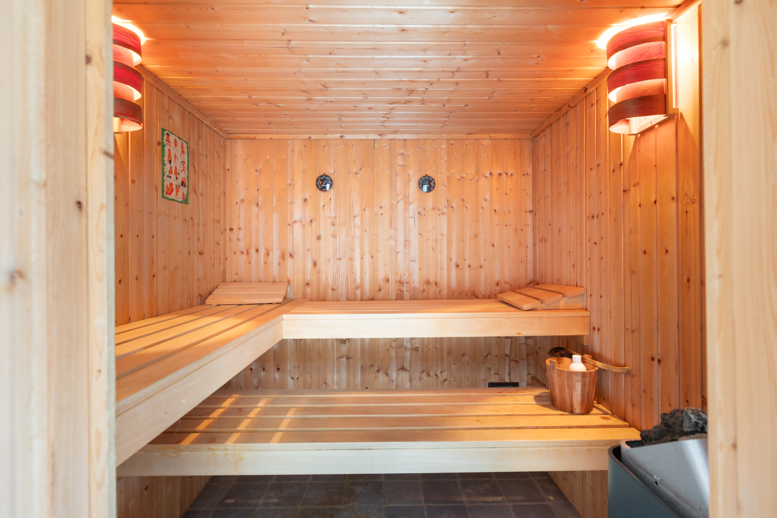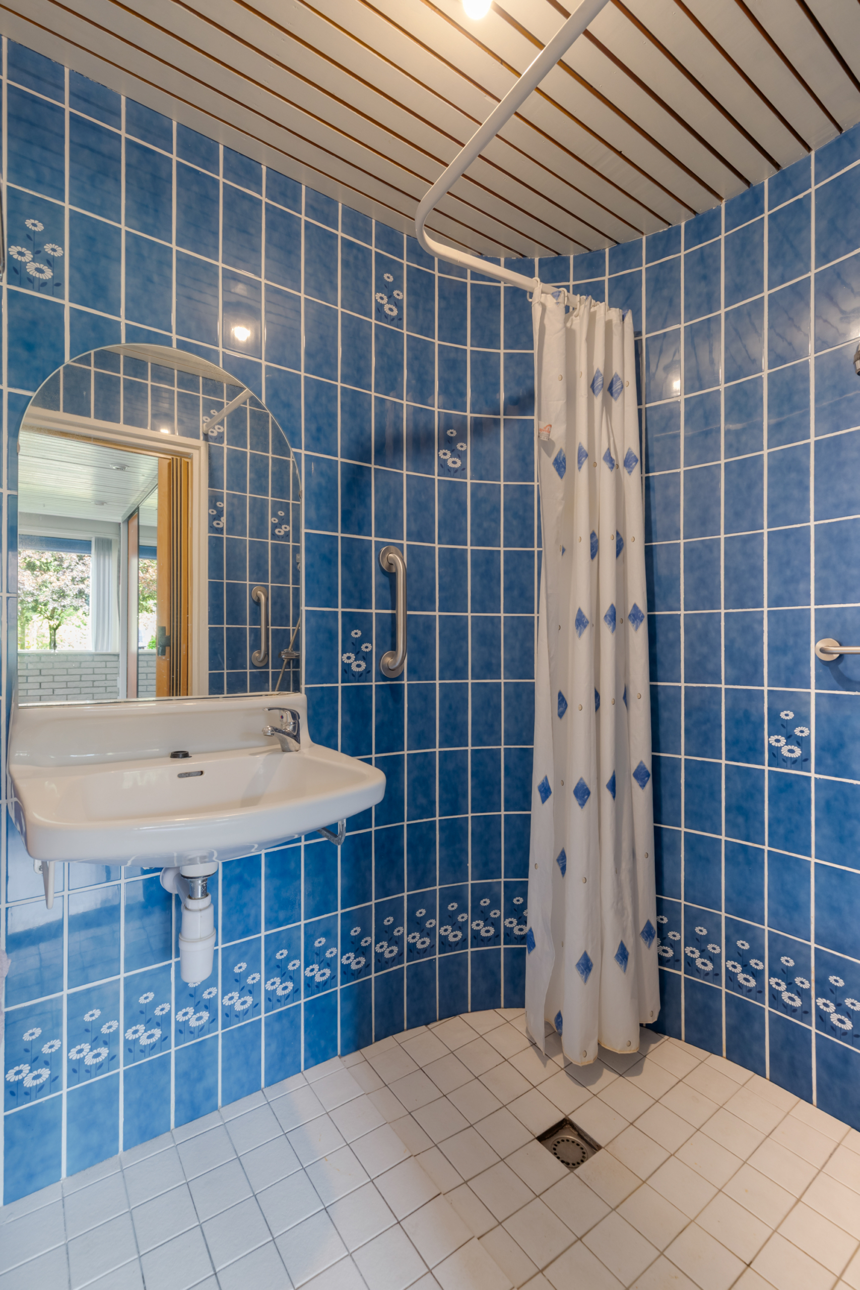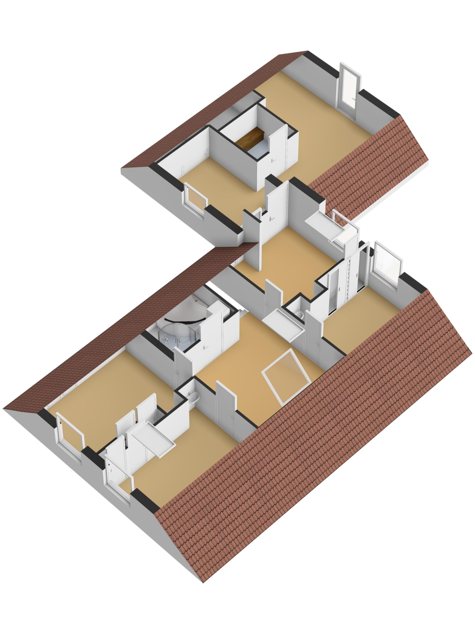 Overloop met toegang tot vier ruime slaapkamers, waarvan 3 voorzien zijn van een wastafel, en een badkamer voorzien van ligbad, douche en toilet. Tevens bevindt zich hier de wasmachine- en drogeraansluiting. Via de vierde slaapkamer heb je ook toegang tot een extra ruimte boven de garage waar zich de opgietsauna bevindt.