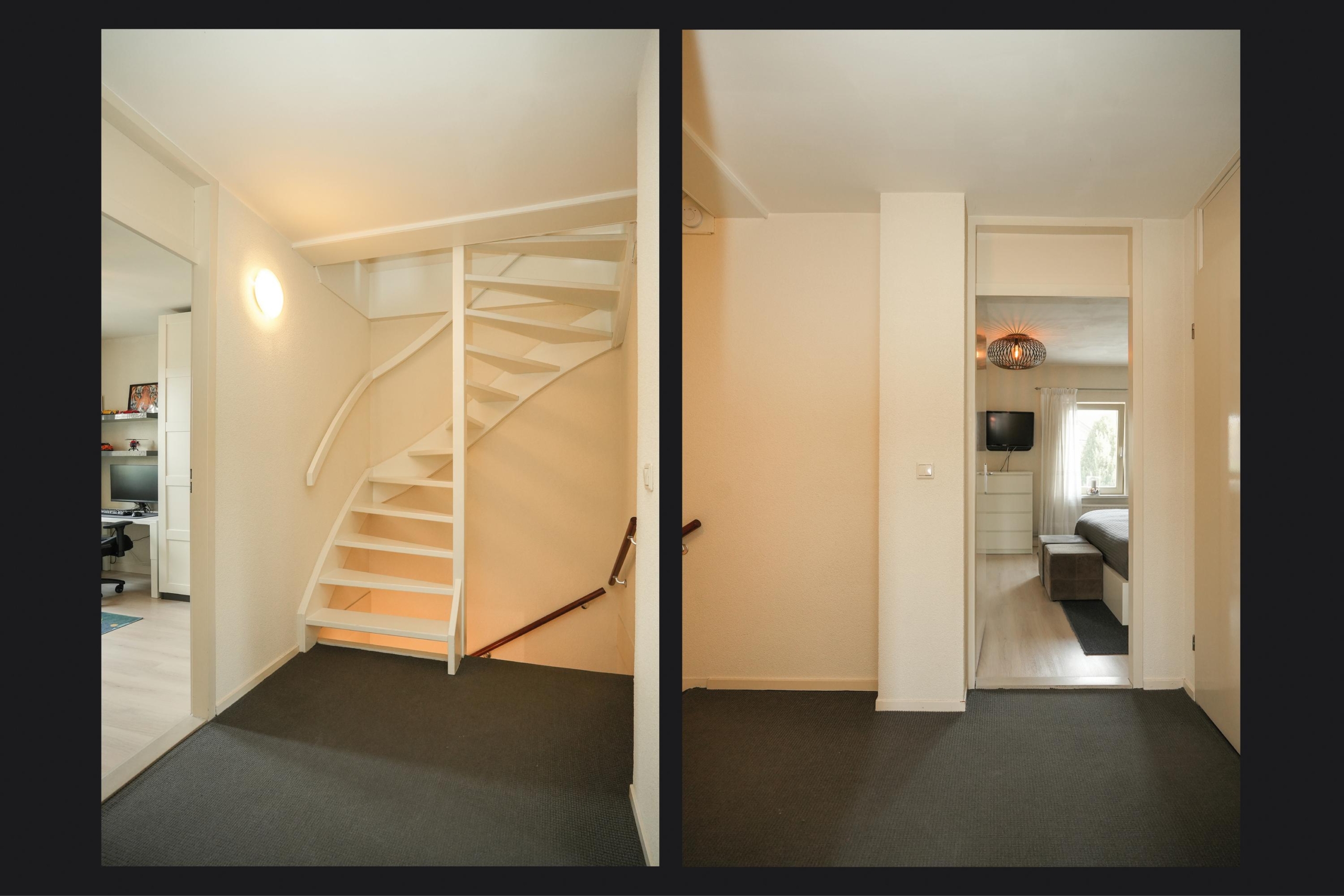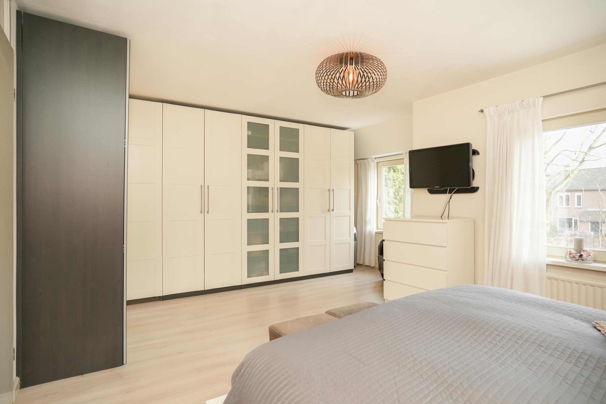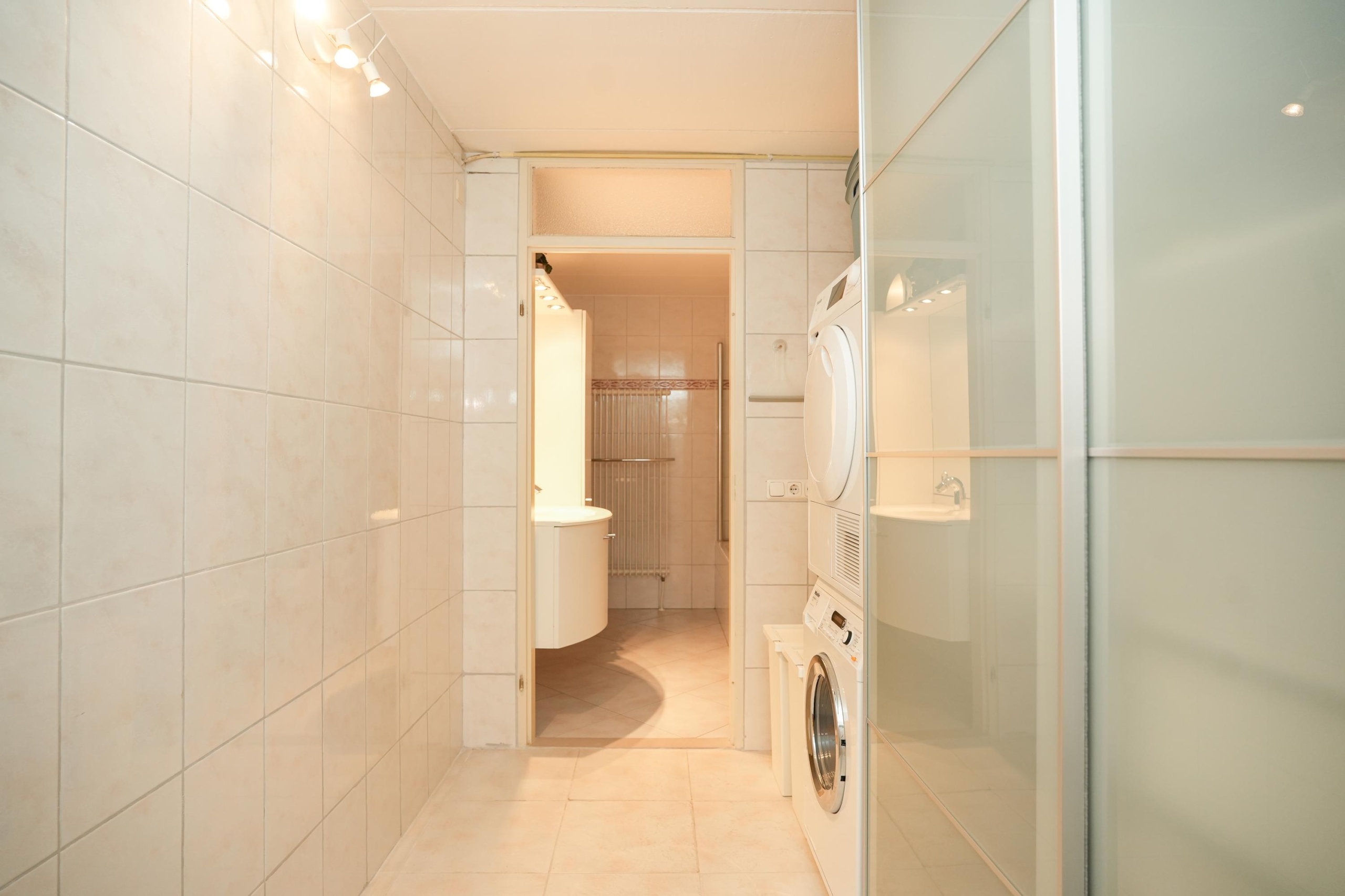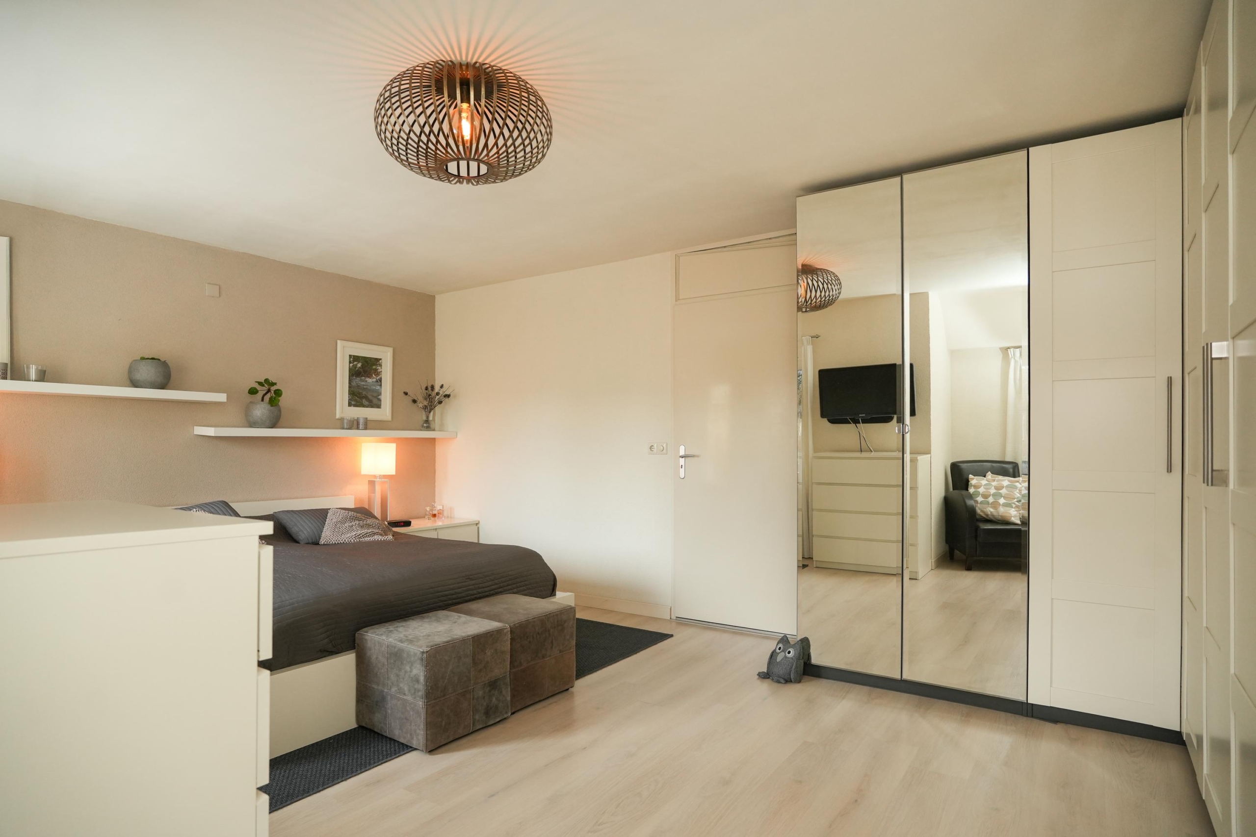 Ook op de verdiepingen komen de royale maten terug. De hoofdslaapkamer is met recht royaal te noemen en biedt meer dan genoeg ruimte voor een grote kastenwand en een gezellig zitje. Indien gewenst is deze kamer zelfs eenvoudig onder te verdelen in twee slaapkamers, of een slaapkamer met een aangrenzende walk-in closet. De tweede slaapkamer op deze verdieping is met haar afmetingen eveneens flink te noemen. Verder tref je op deze etage de badkamer aan, met aansluitend een praktische was- en bergruimte. De badkamer is voorzien van een bad-douchecombinatie, wastafelmeubel en toilet. In de wasruimte vind je de aansluitingen voor je wasmachine en droger, de opstelplaats voor de cv-ketel en ontzettend veel extra opbergruimte.
