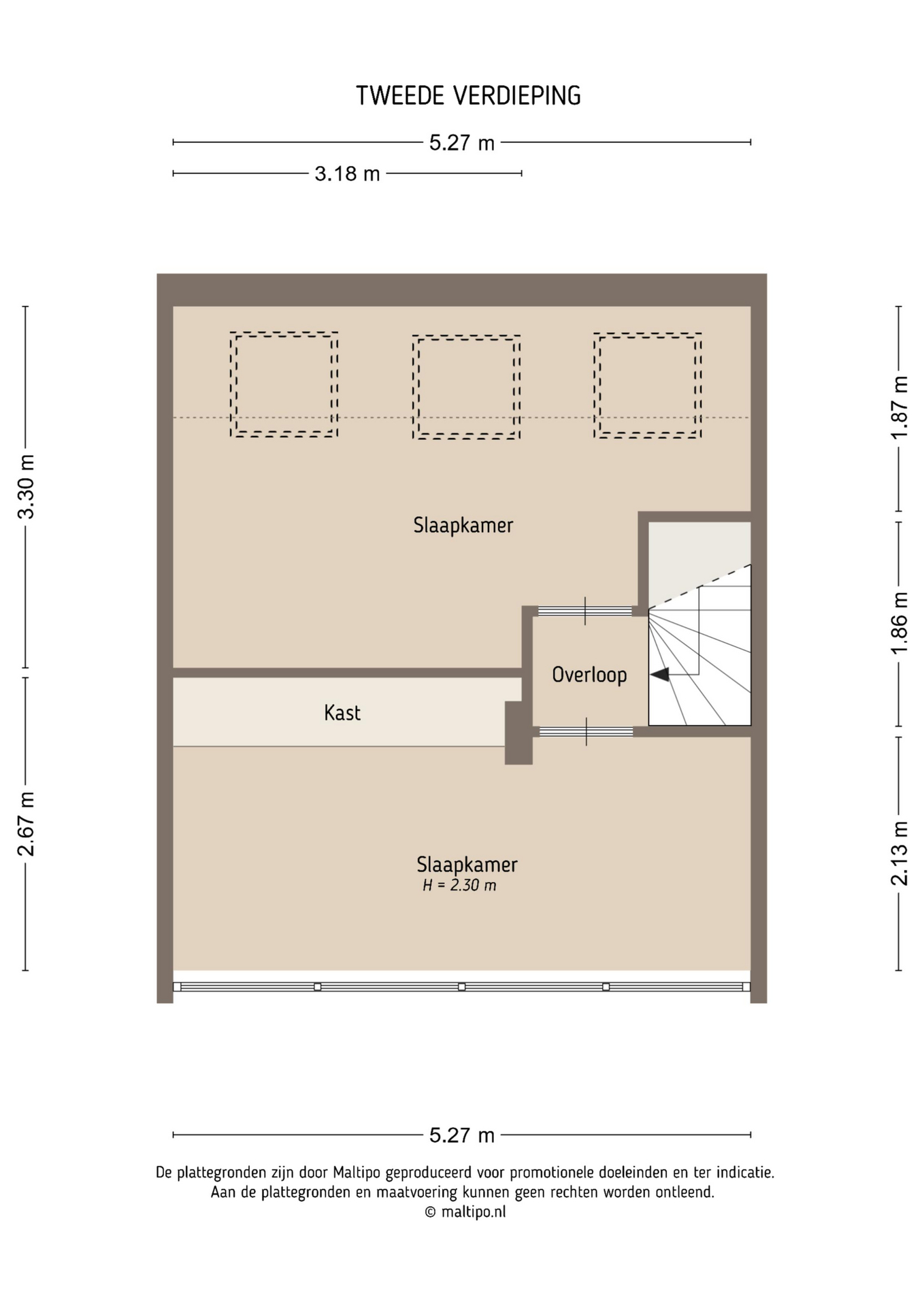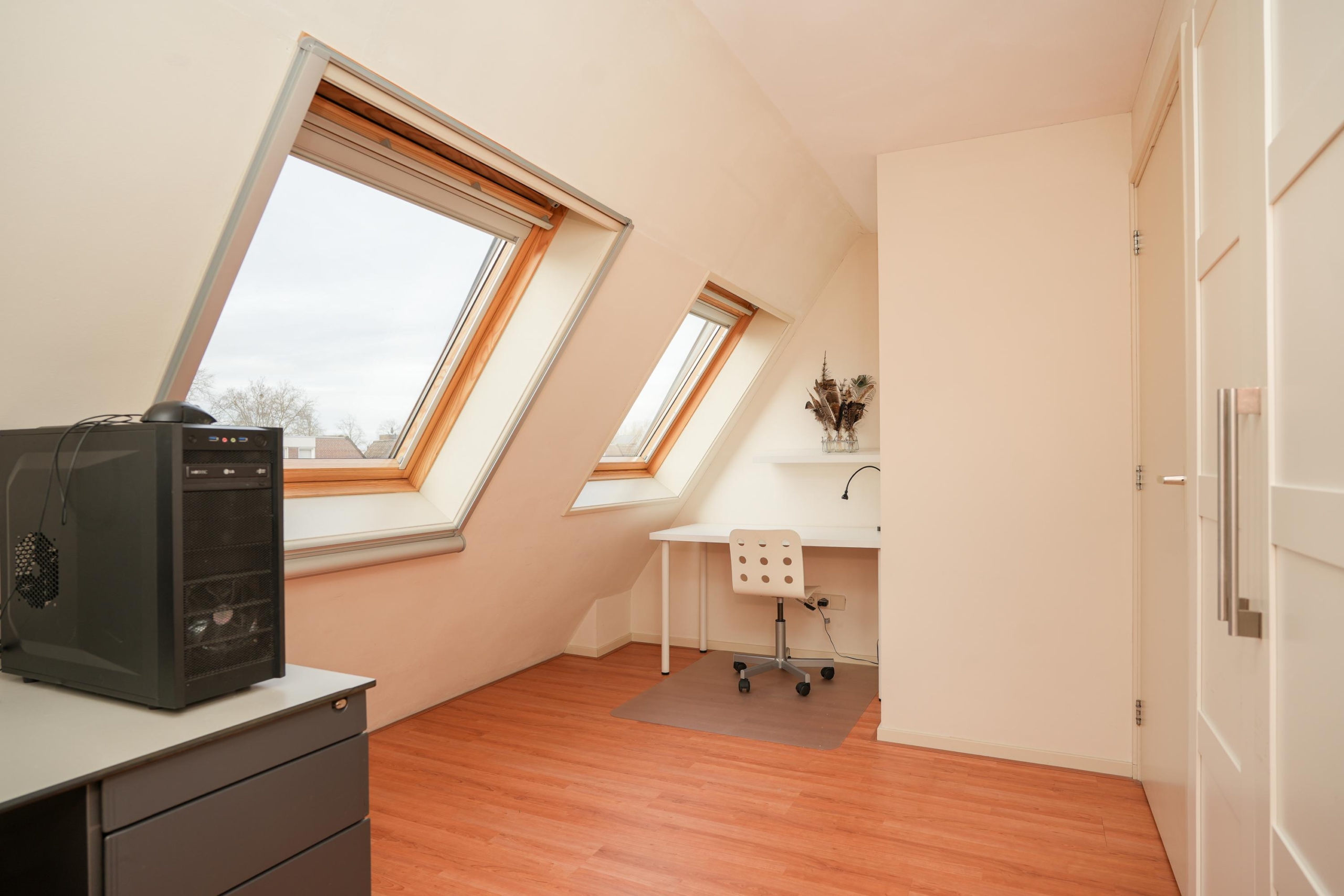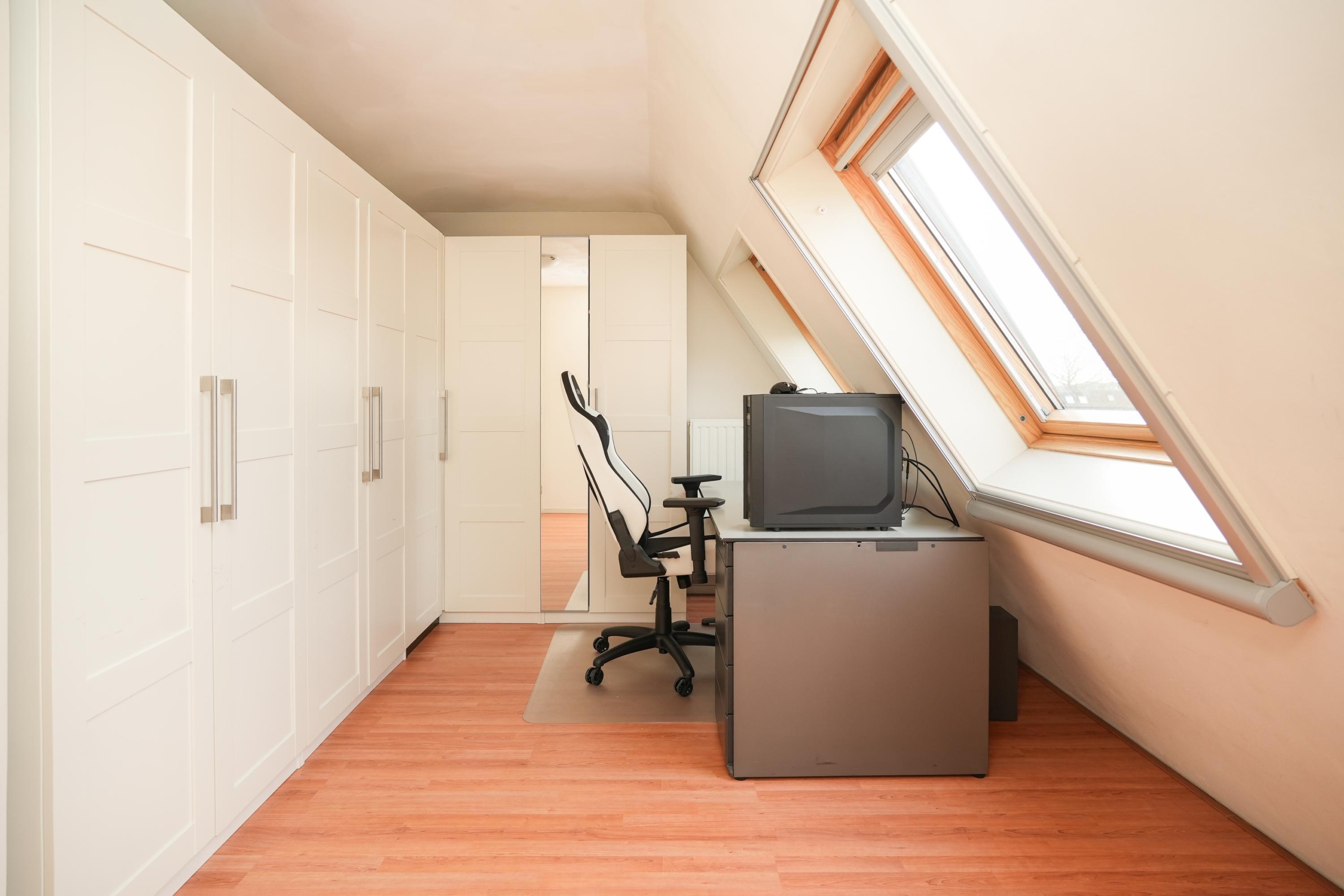 De tweede verdieping is een ware verrassing: door de opbouw is hier een volwaardige extra woonlaag gecreëerd. Hier bevinden zich momenteel 2 slaapkamers. De kamer aan de achterzijde is voorzien van een raampartij over de gehele breedte. De slaapkamer aan de voorzijde is voorzien van dakramen.
