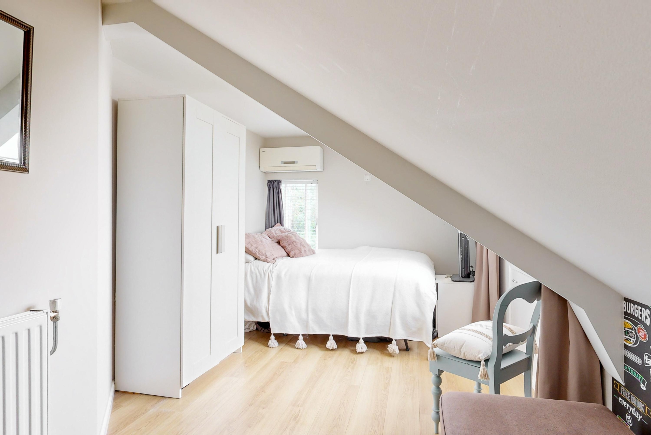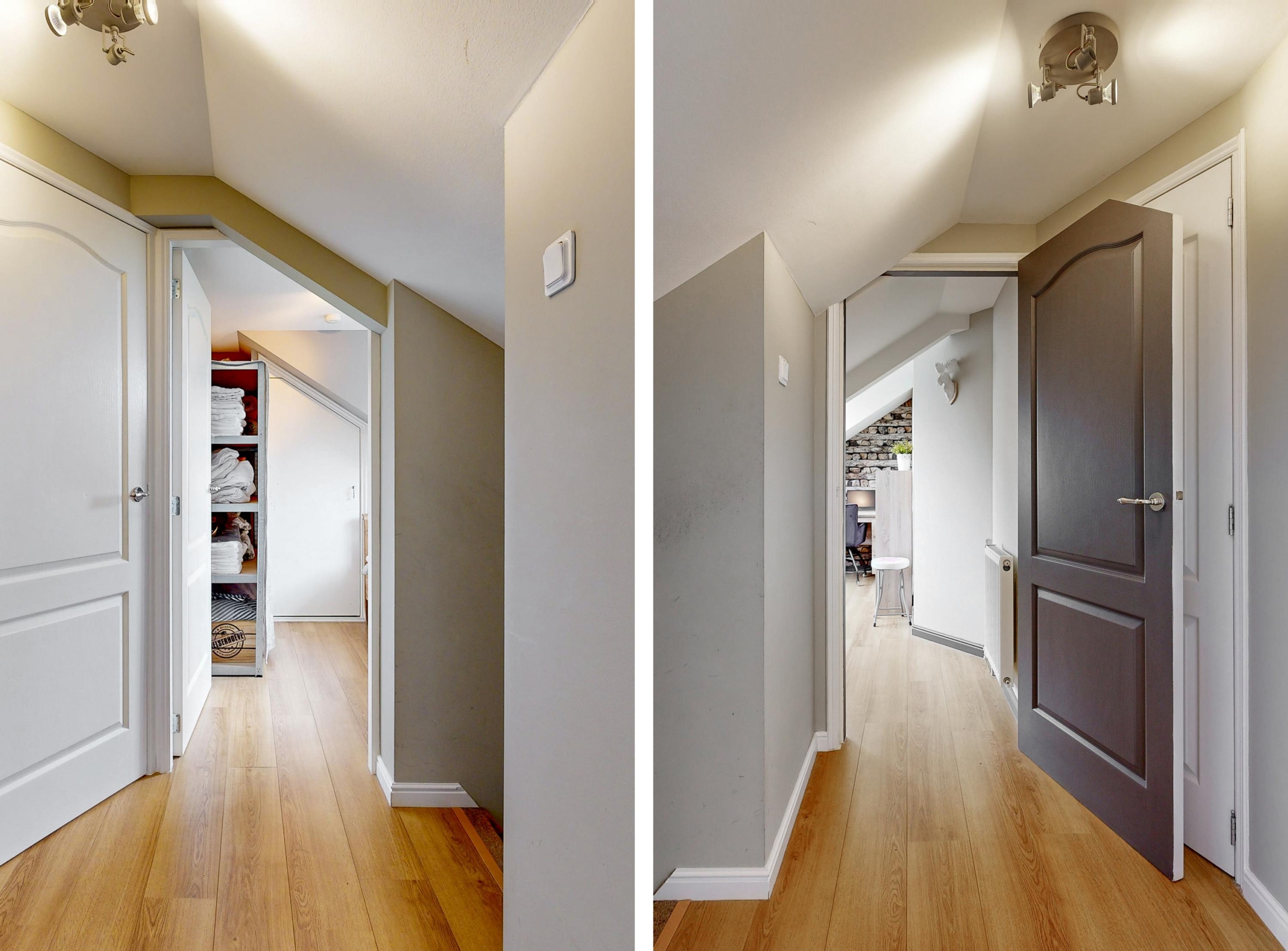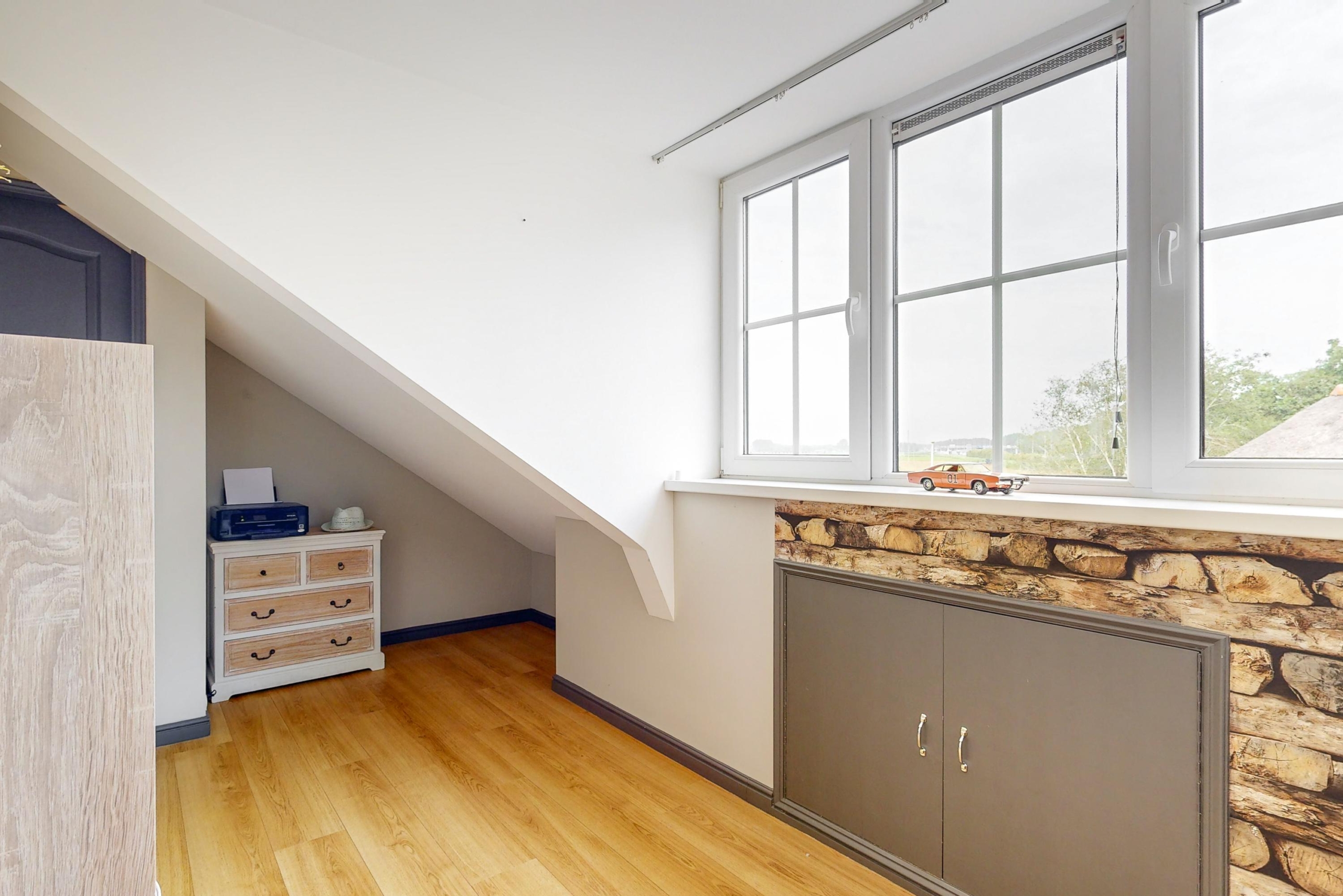 Overloop, kast met c.v.-ketelopstelling, 4 slaapkamers waarvan 1 met airco. Op deze verdieping vind je ook de cv installatie (Atag en de lucht warmte pomp (2018).
