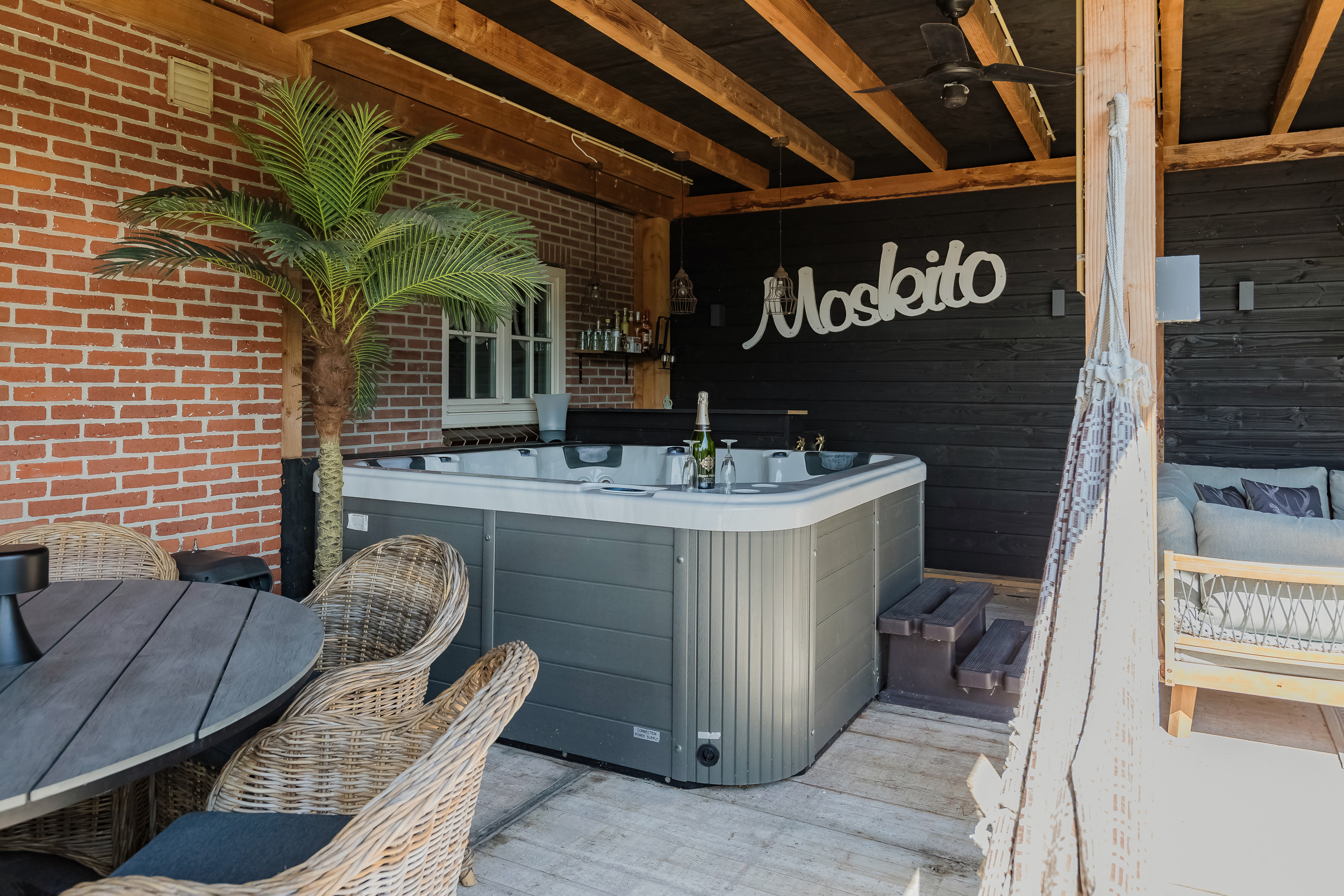 Toegang middels hekwerk kom je in de zonnige tuin met div zitjes en een bbq kapschuur waar je tot laat in de avond kan zitten. Door het privacydoek op het hek zit je beschut. De tuin is geheel vernieuwd in 2023.