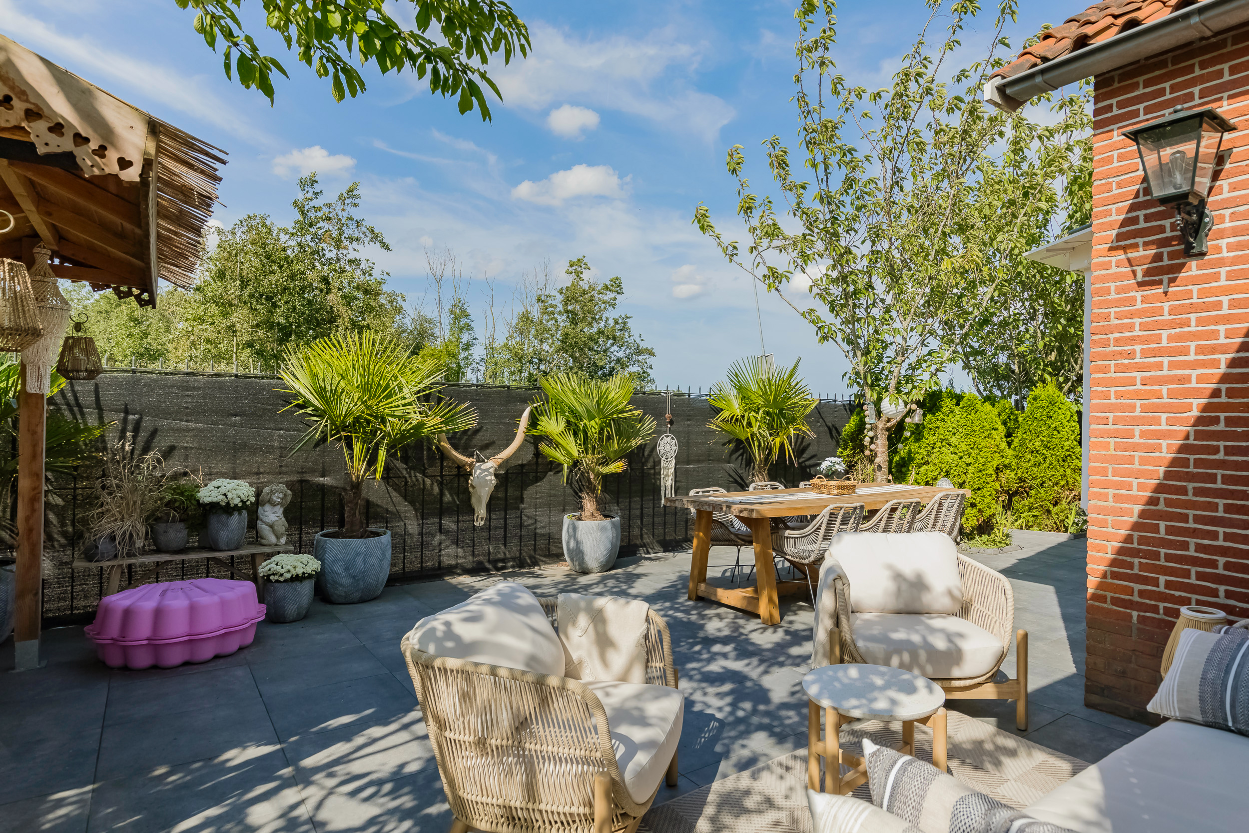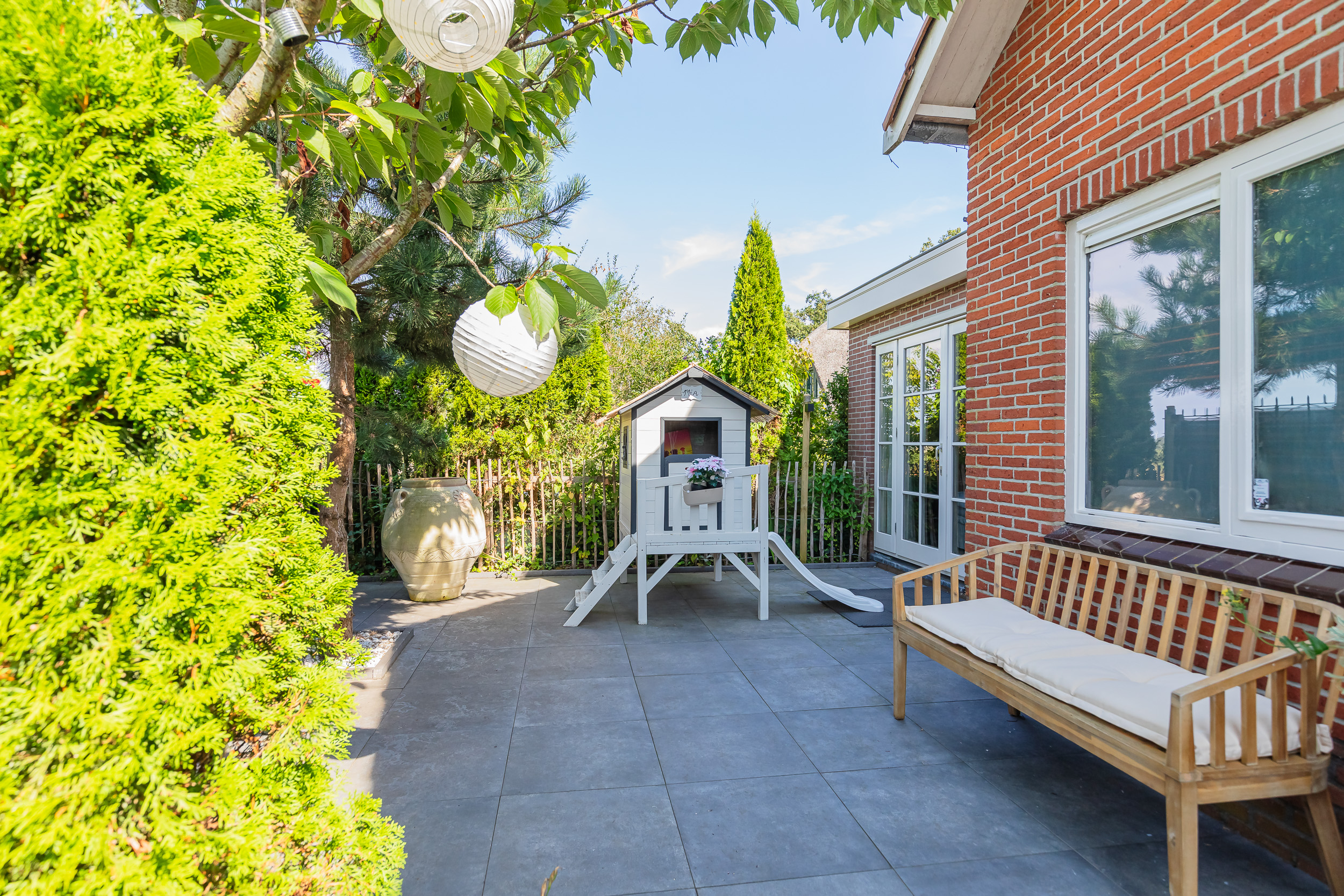– gehele dag zon in de privacyvolle rondom lopende tuin