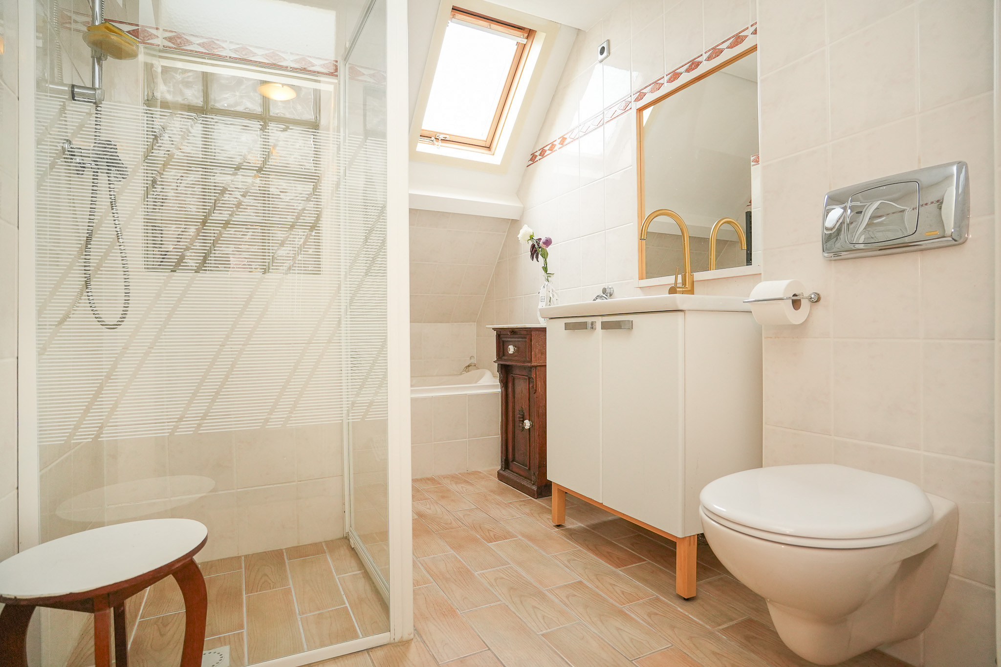 De badkamer is compleet uitgerust met: